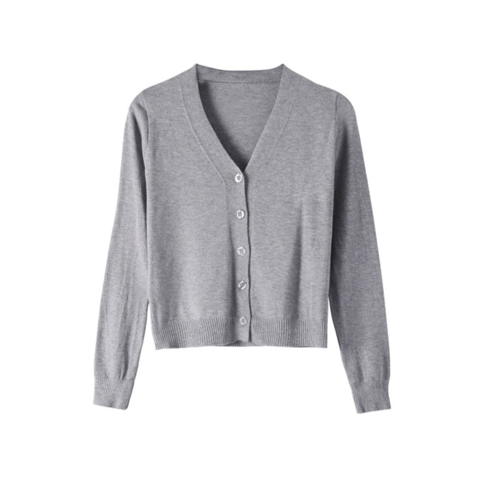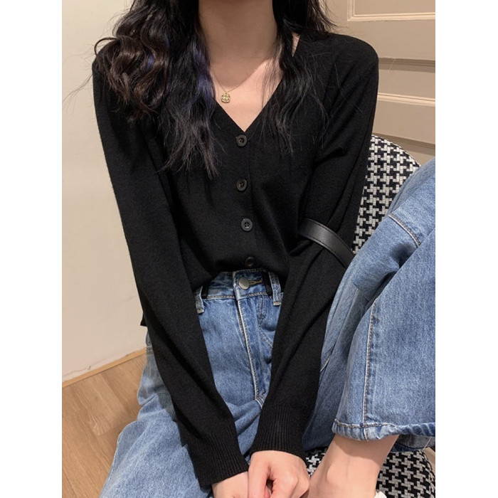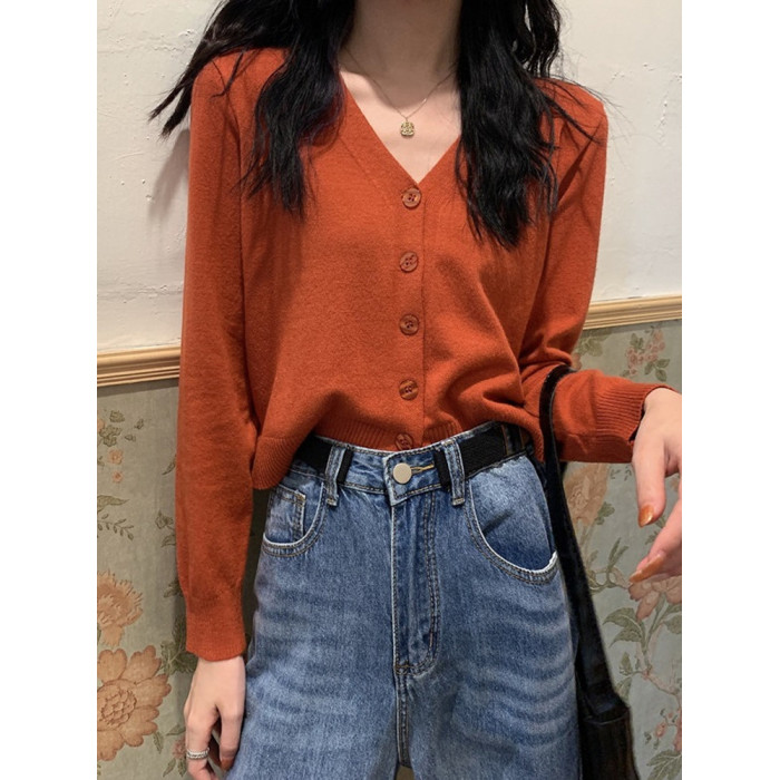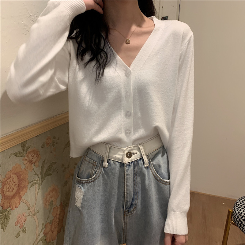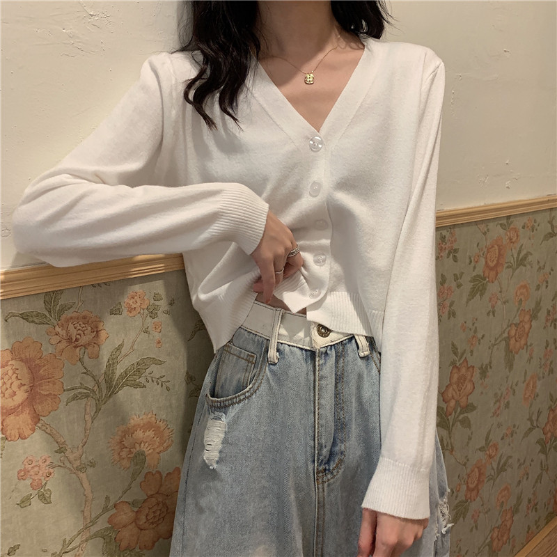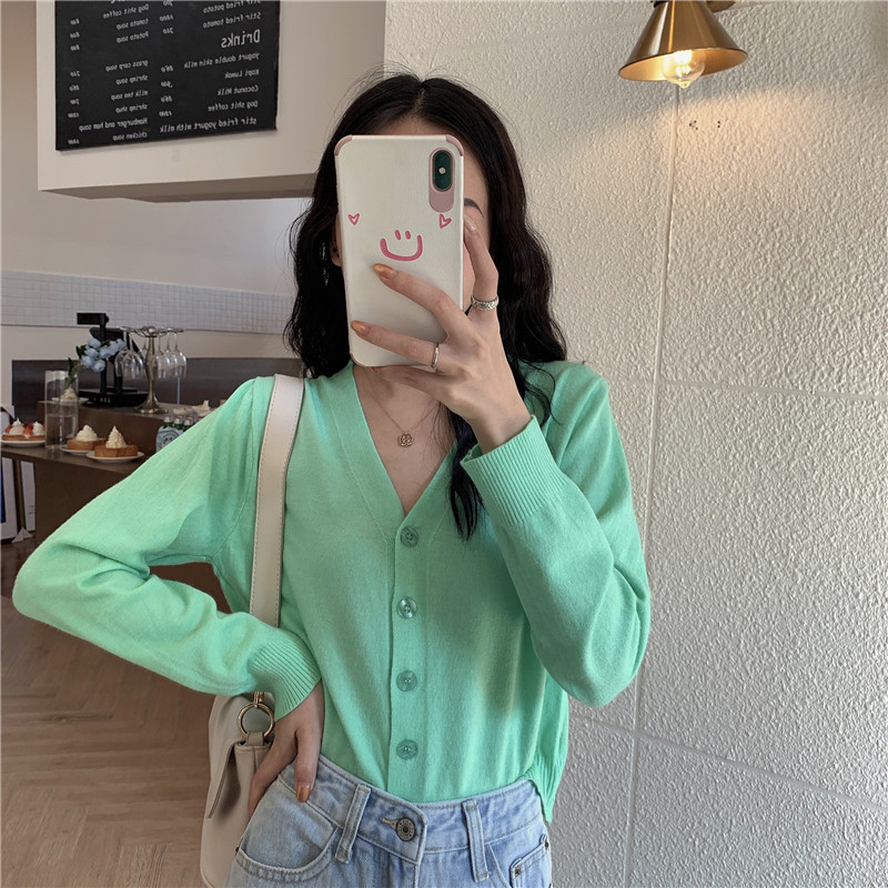 薄款針織開衫外套女秋冬韓版寬松毛衣外穿短款百搭V領打底衫上衣