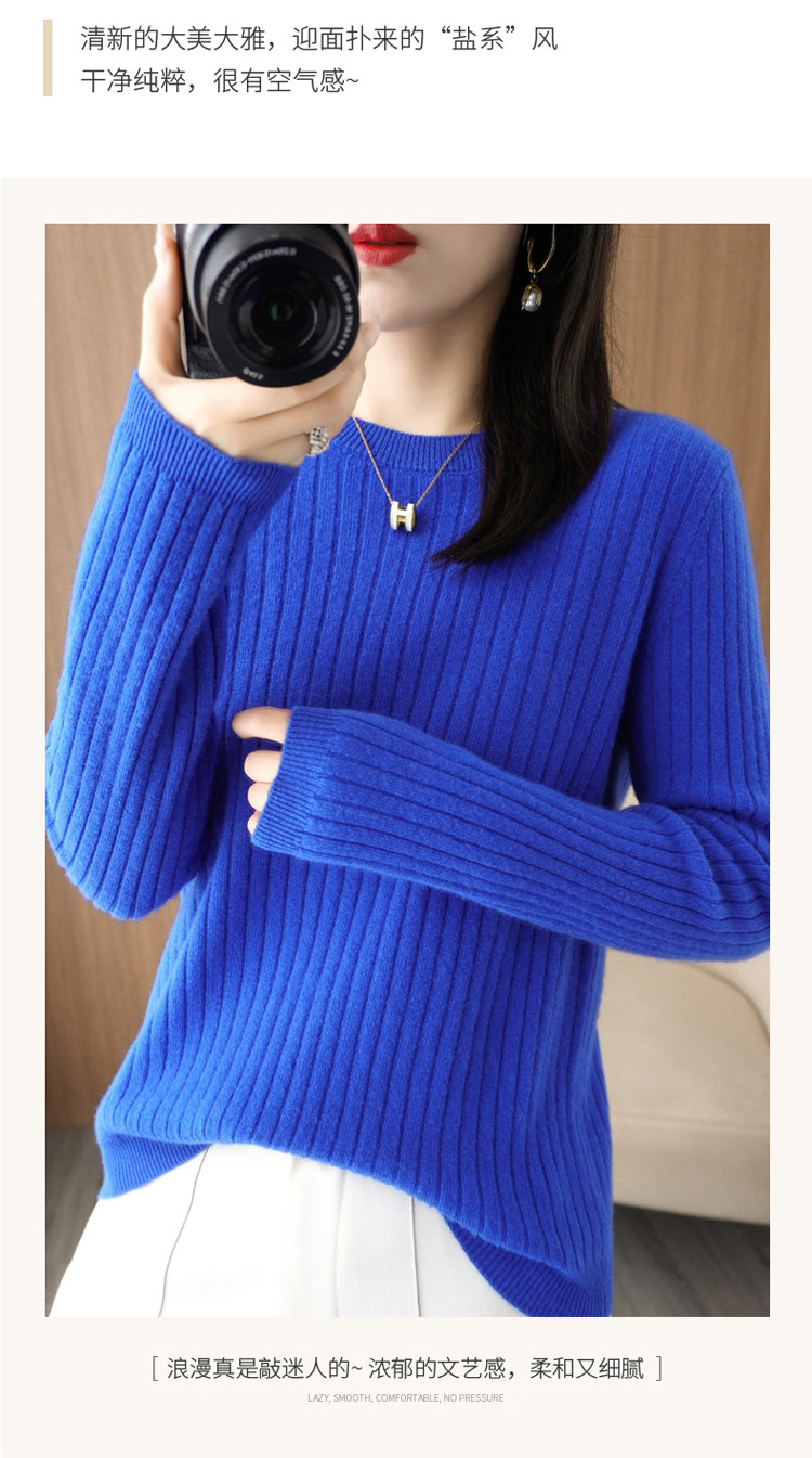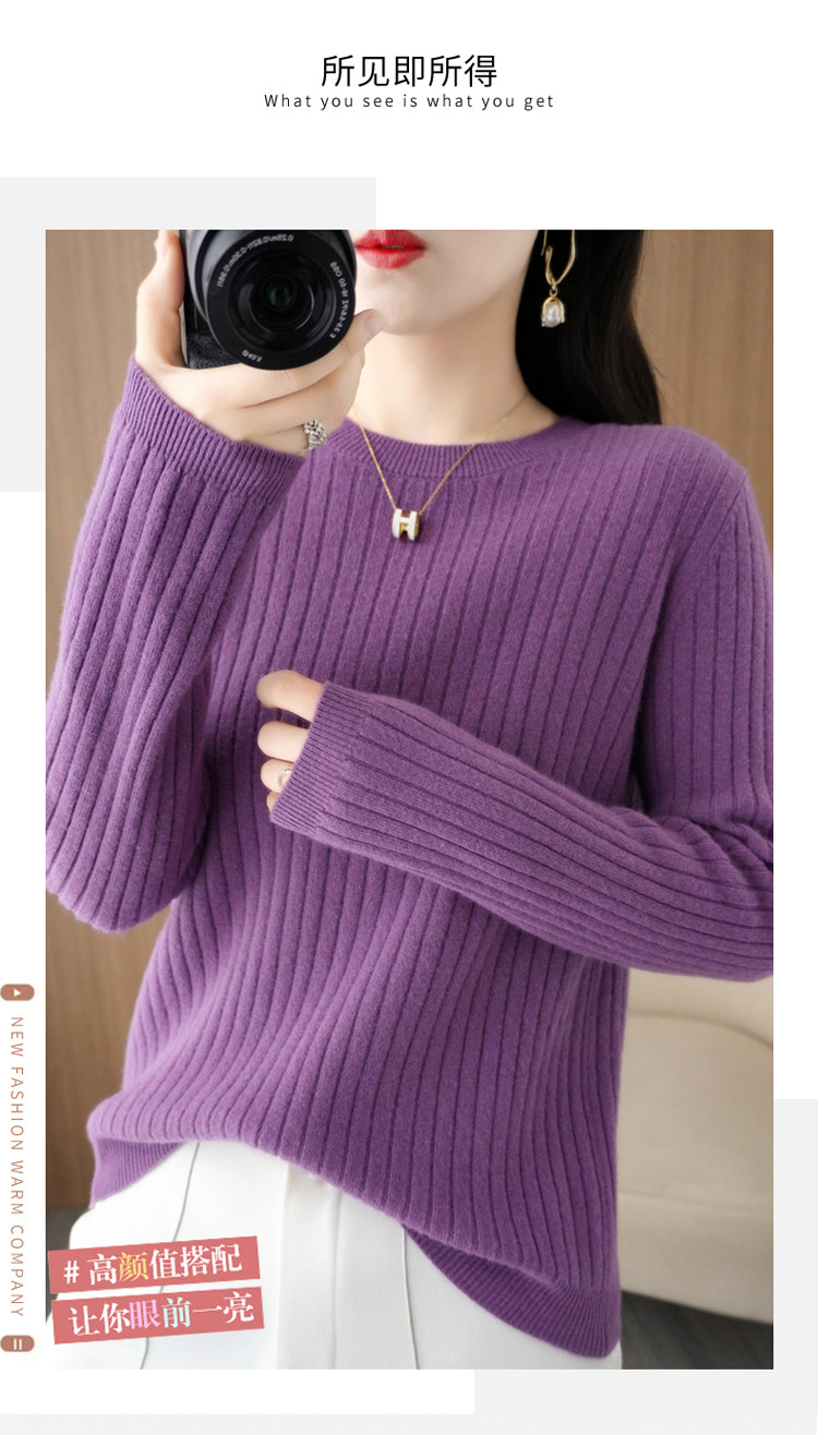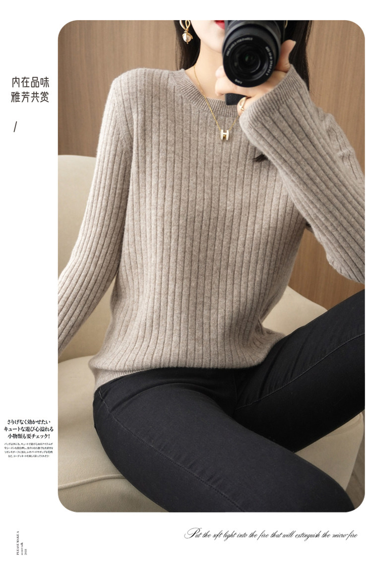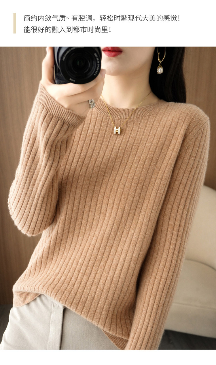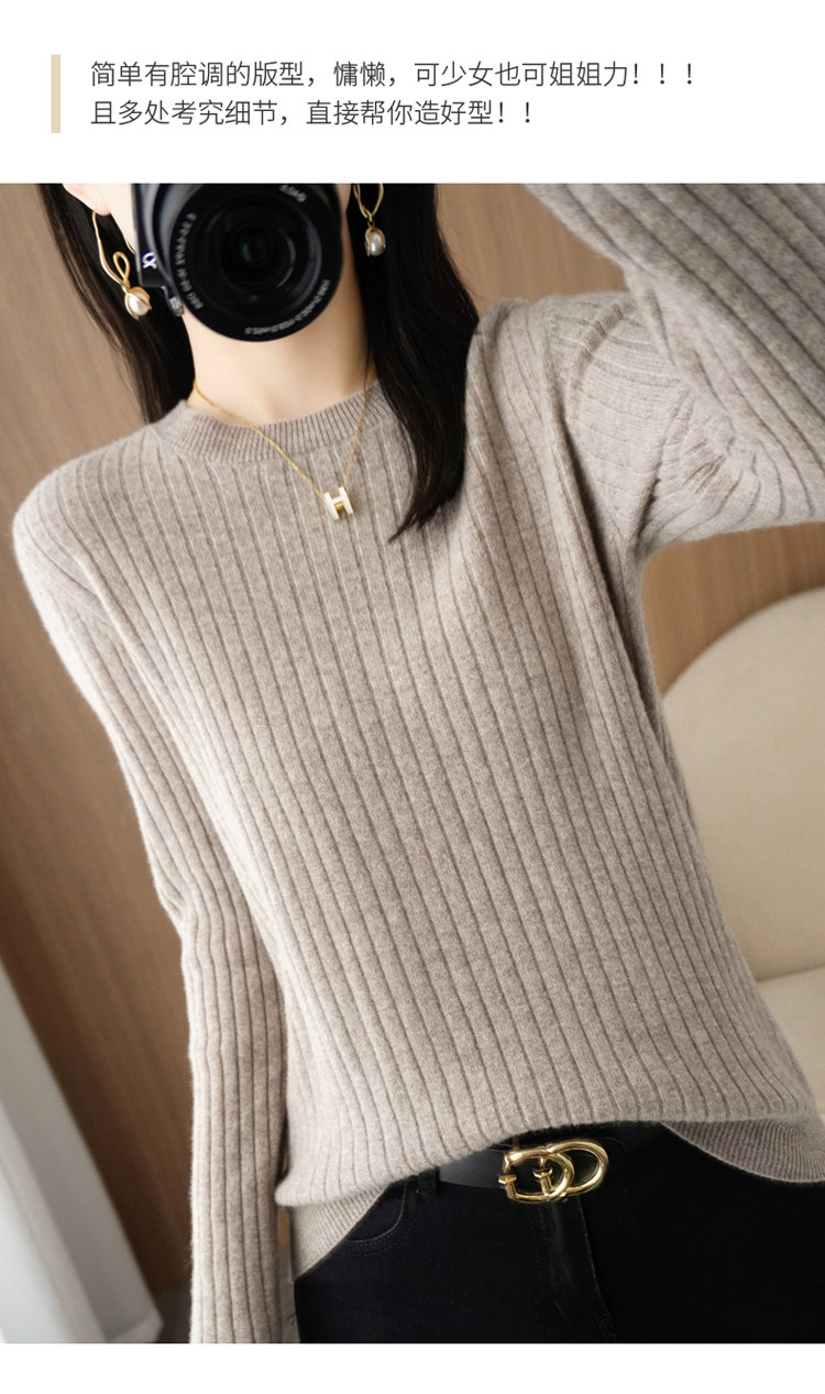 圓領毛衣女秋冬新款抽條內搭打底衫洋氣百搭寬鬆羊毛針織上衣春裝