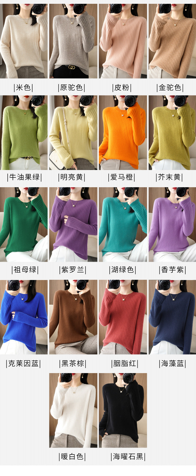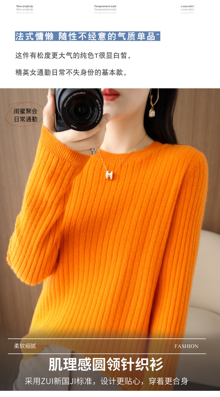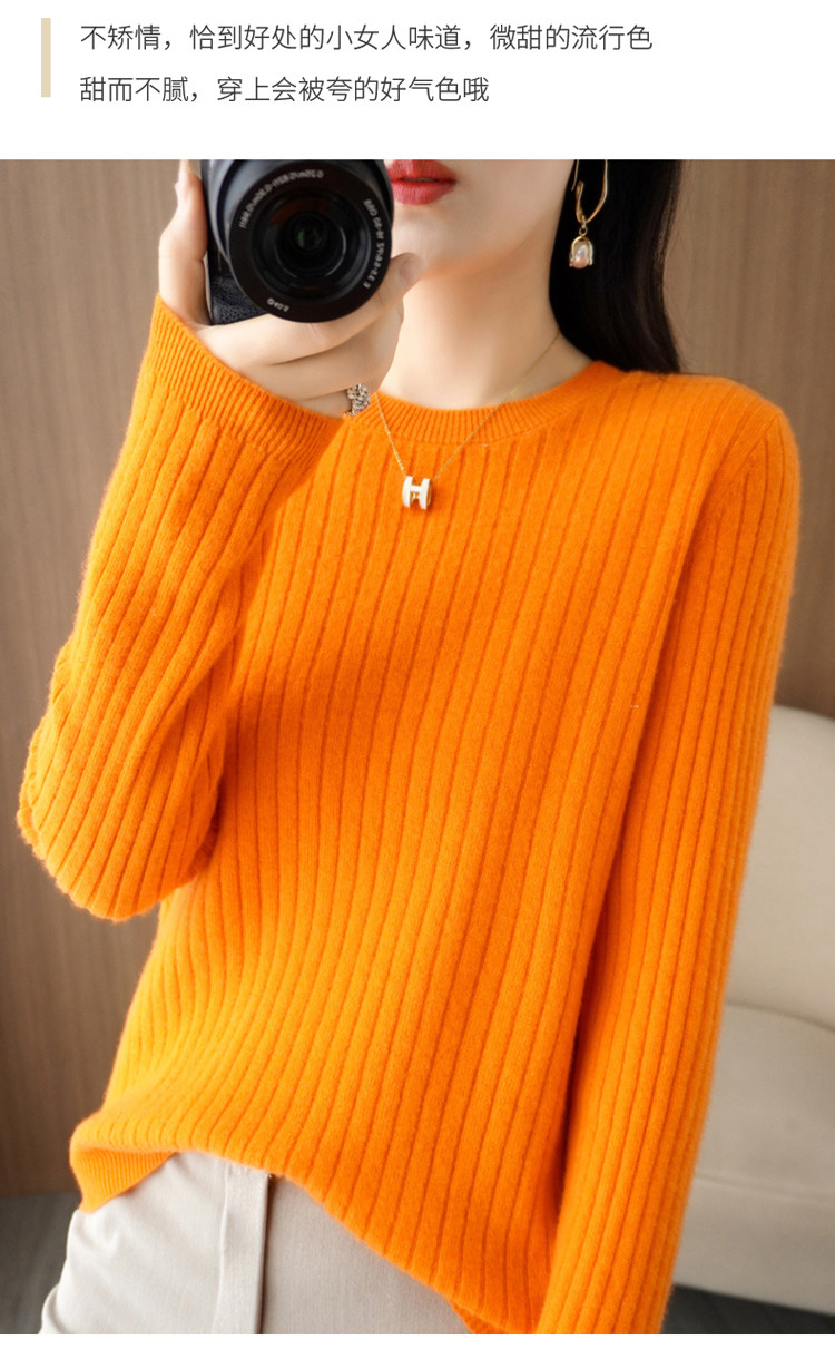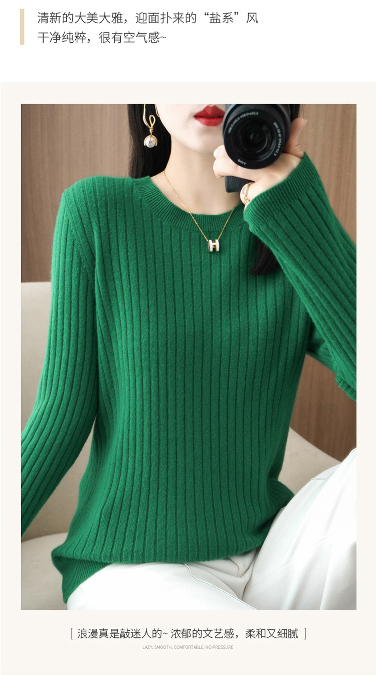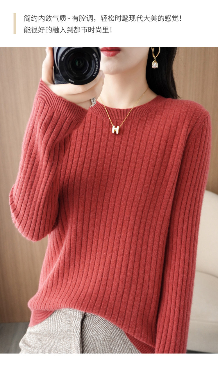 圓領毛衣女秋冬新款抽條內搭打底衫洋氣百搭寬鬆羊毛針織上衣春裝