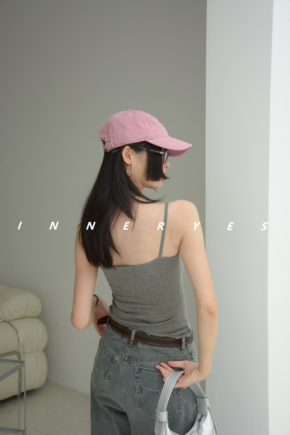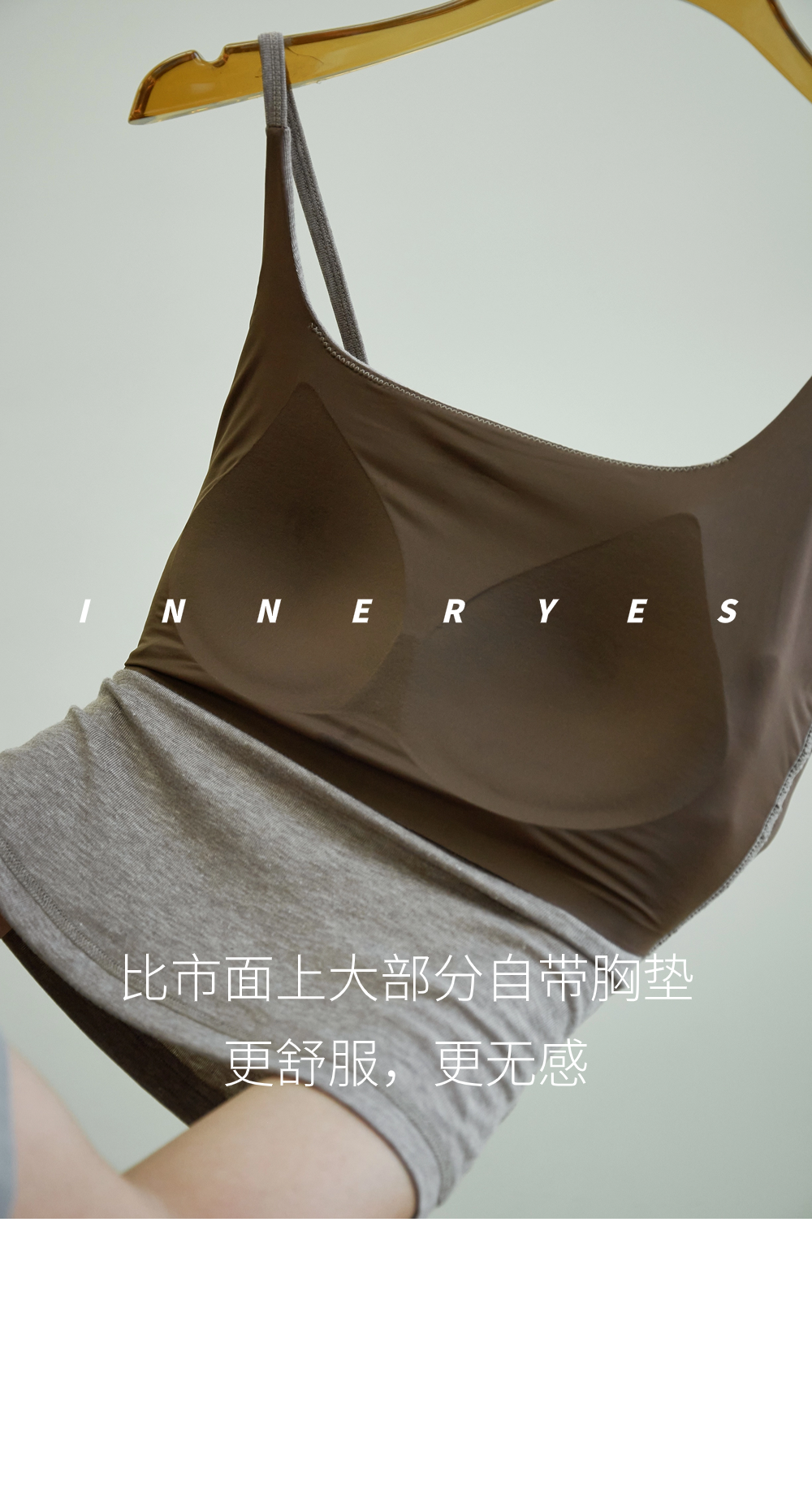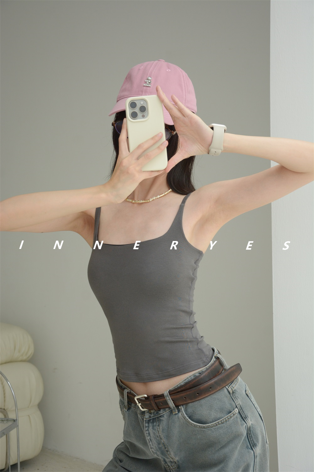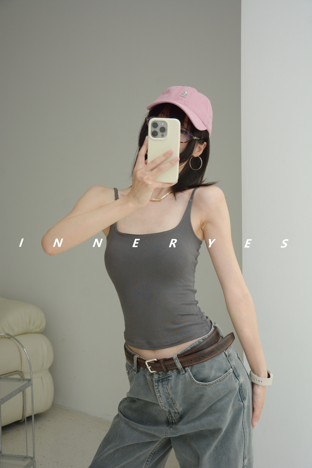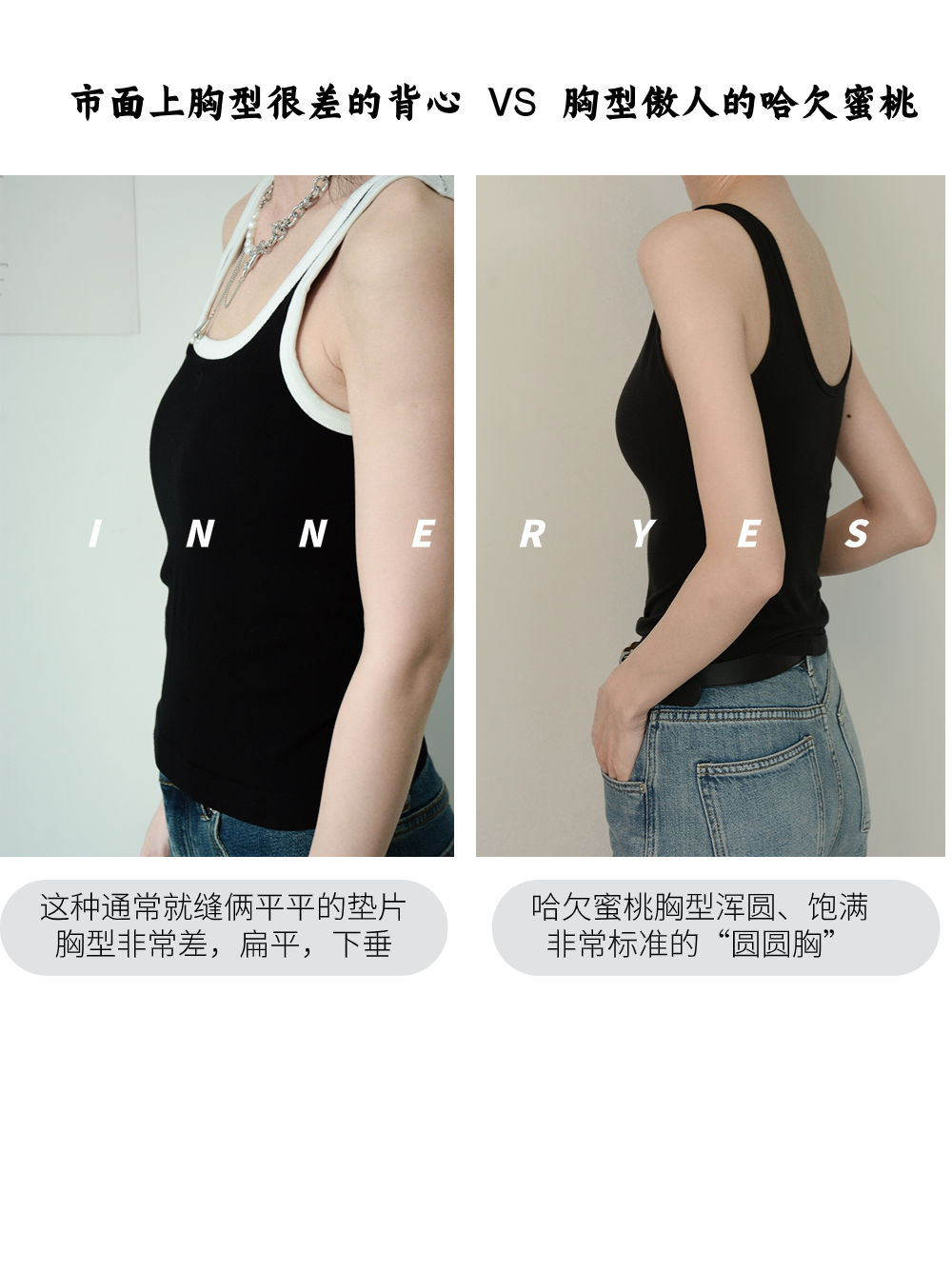 INNER YES梅子小方亞麻帶胸墊吊帶背心女內搭外穿灰色黑色上衣