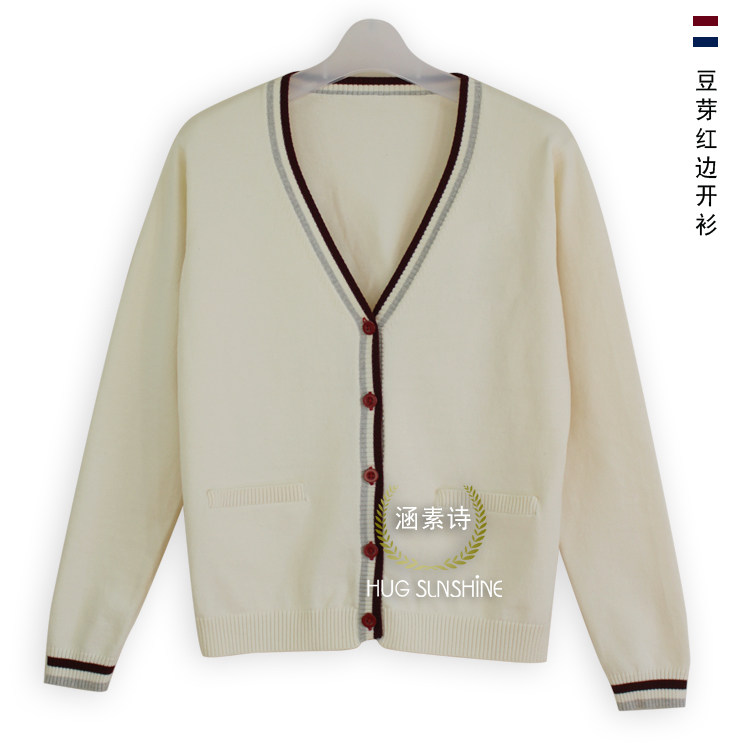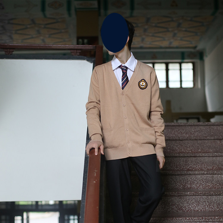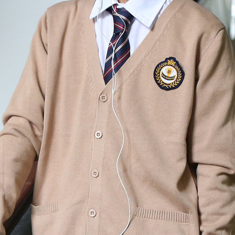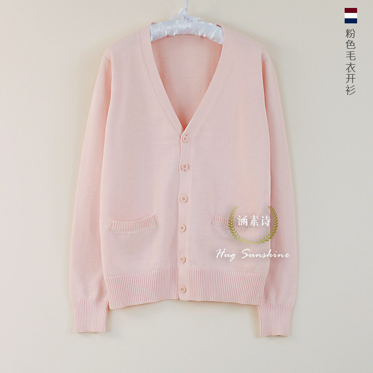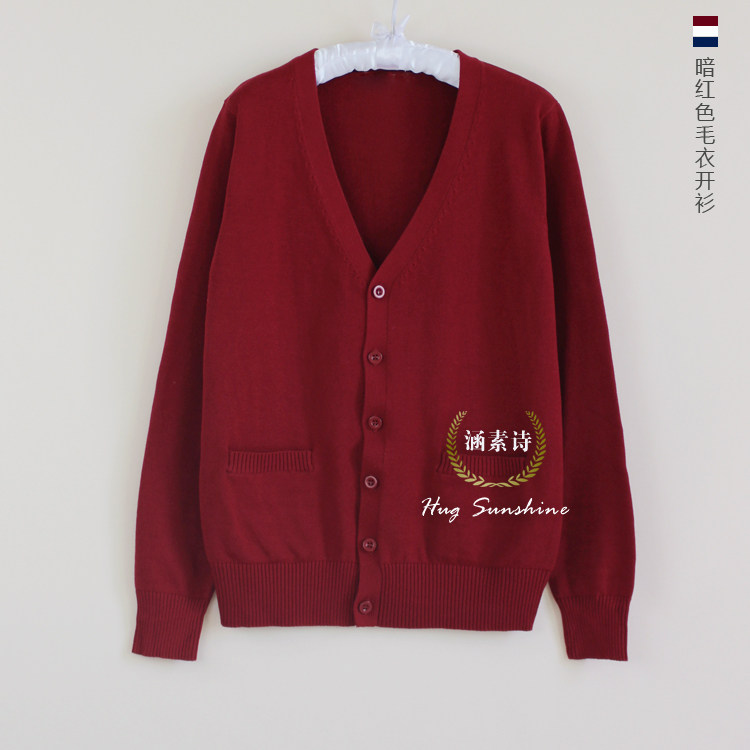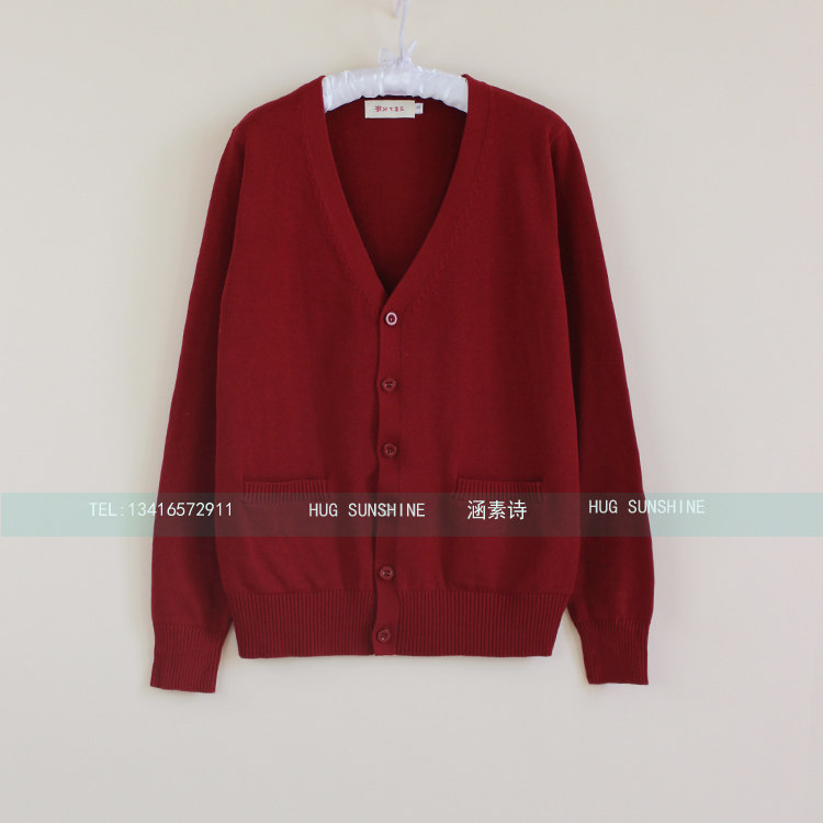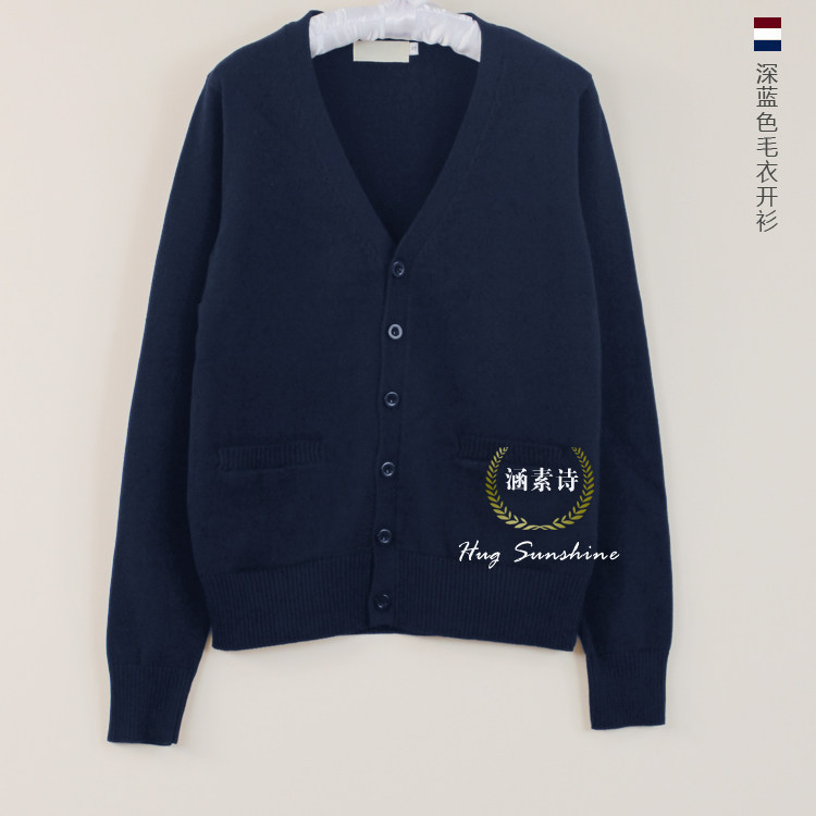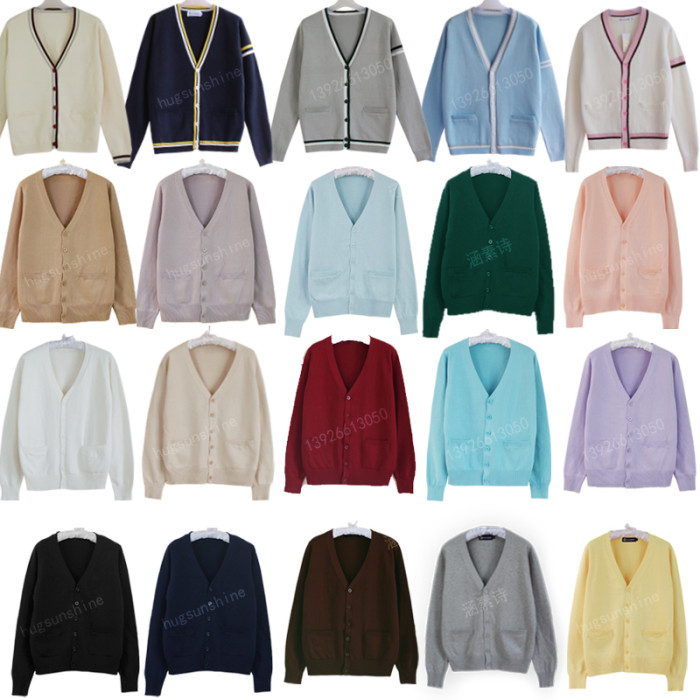 日本學生校服v領長袖毛衣開衫外套班服純棉製服針織衫男女小青木
