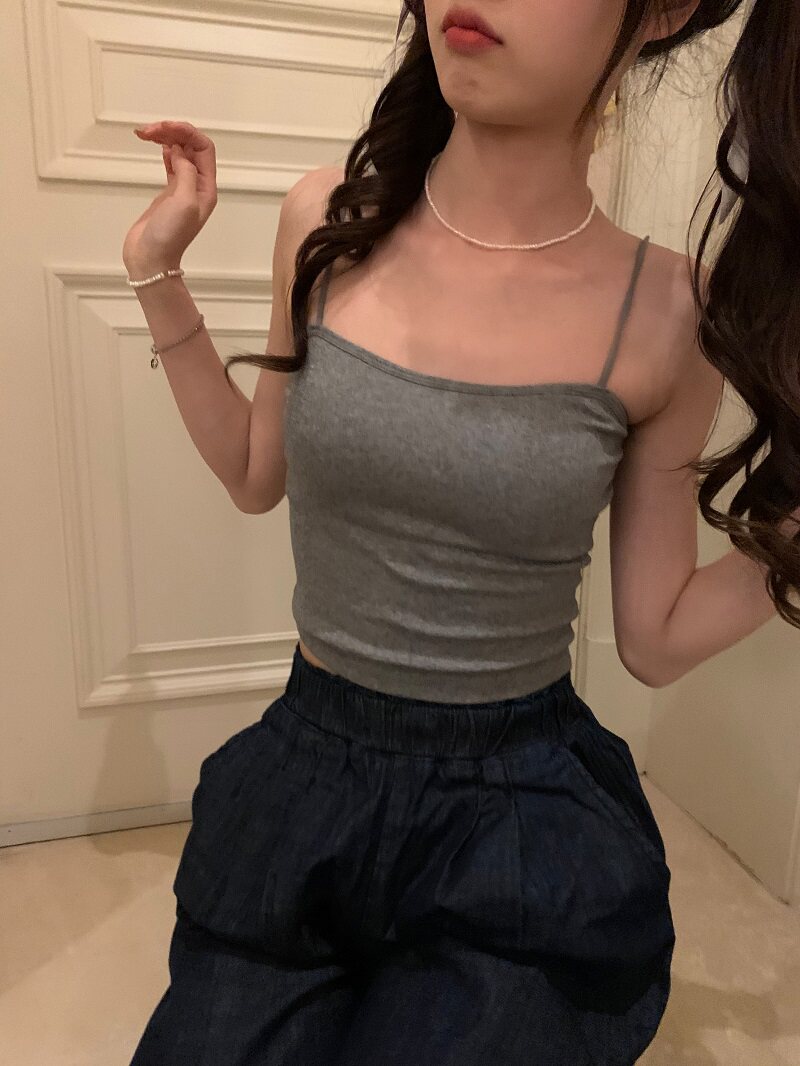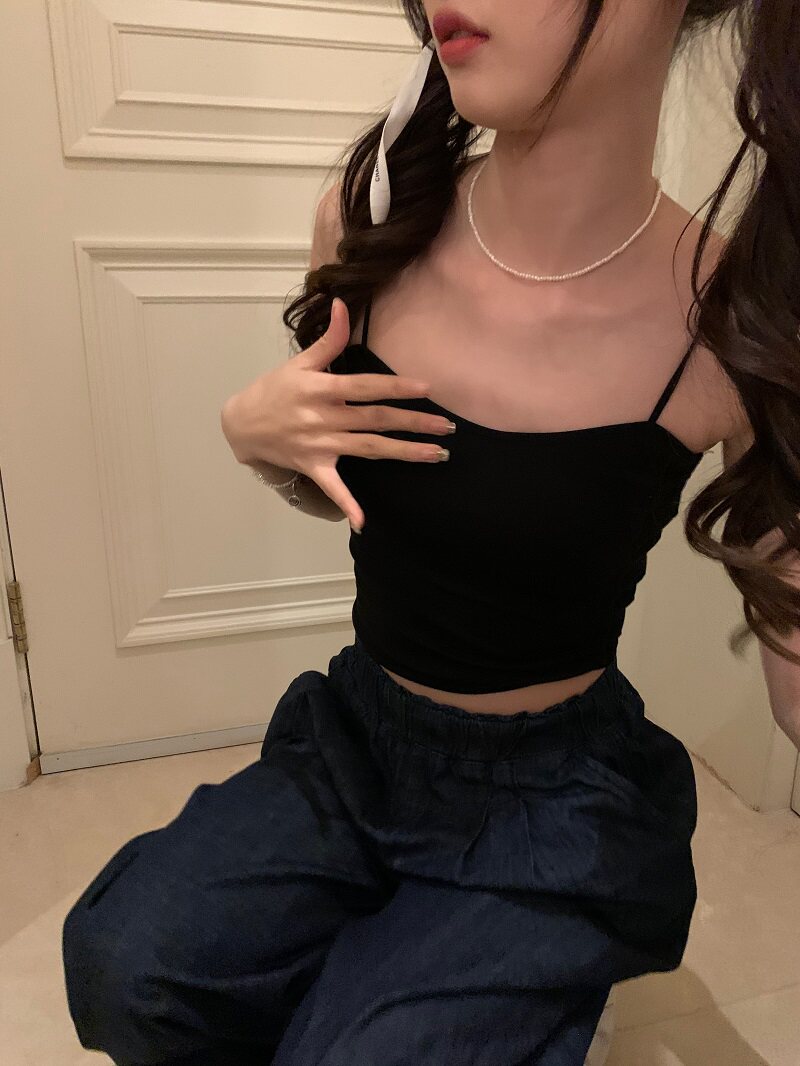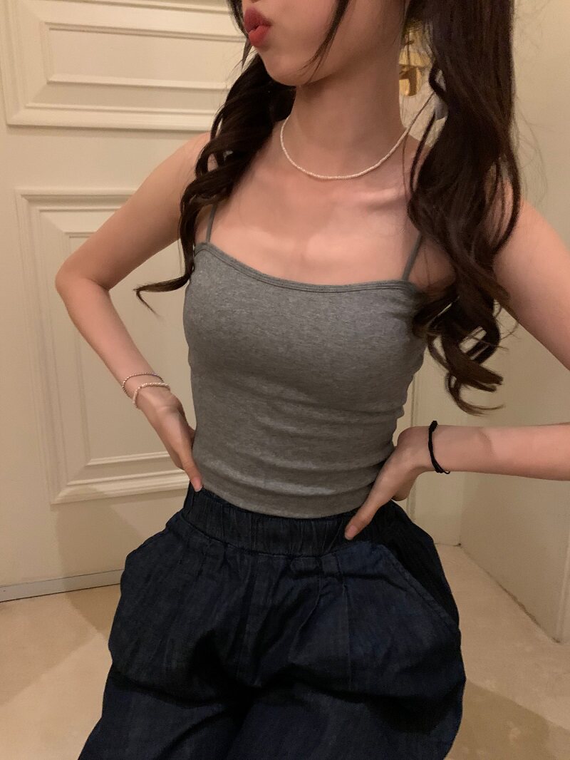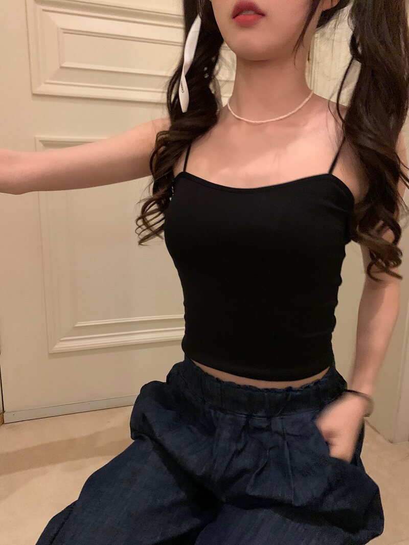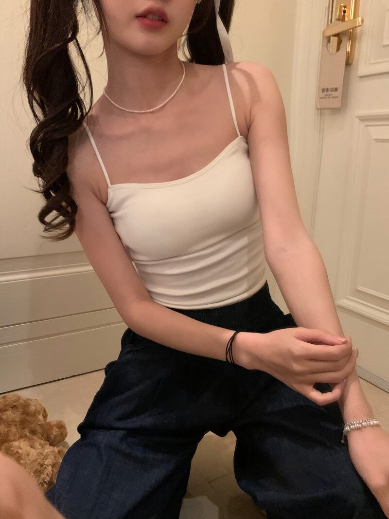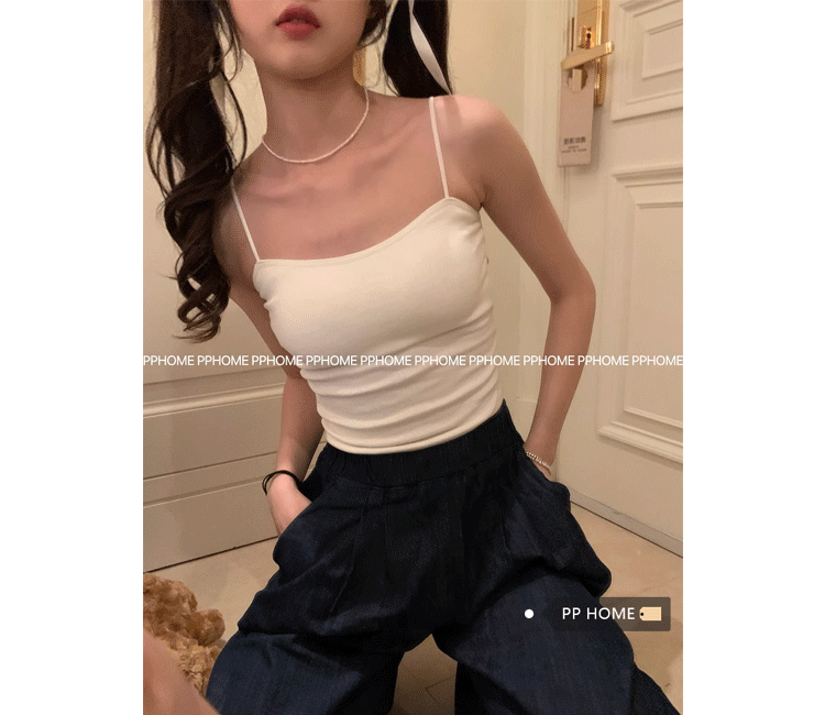 PPHOME自製~簡單百搭 純色百搭經典外穿吊帶背心帶胸墊美背上衣女