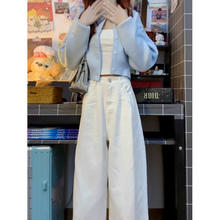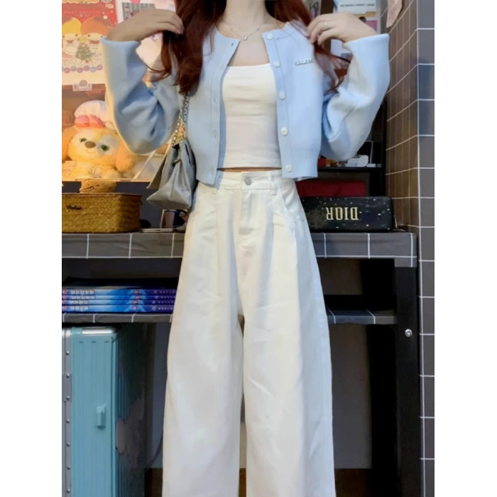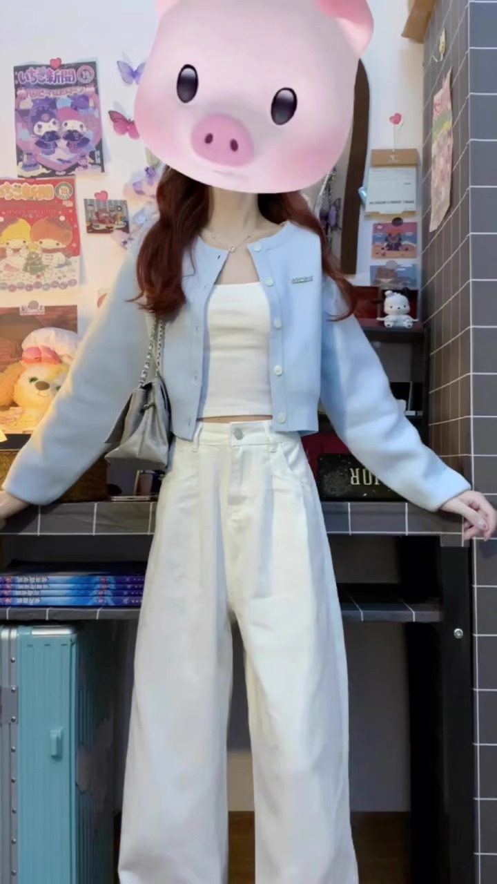 小個子藍色短款針織外套女款春秋冬外搭上衣開衫毛衣2025新款爆款