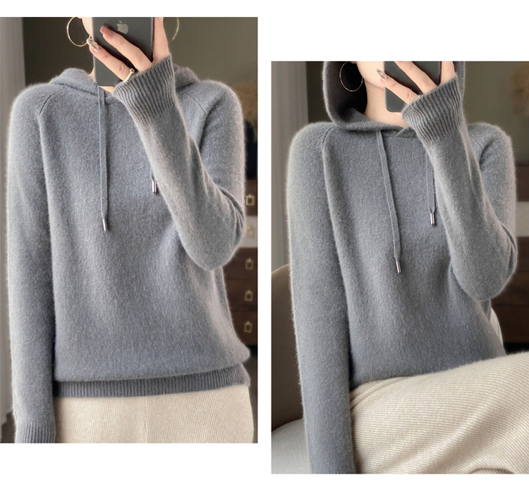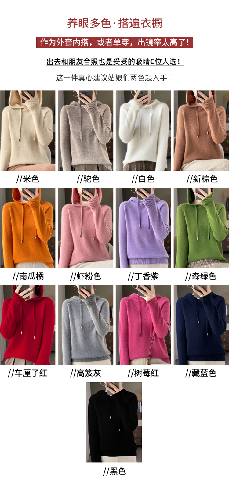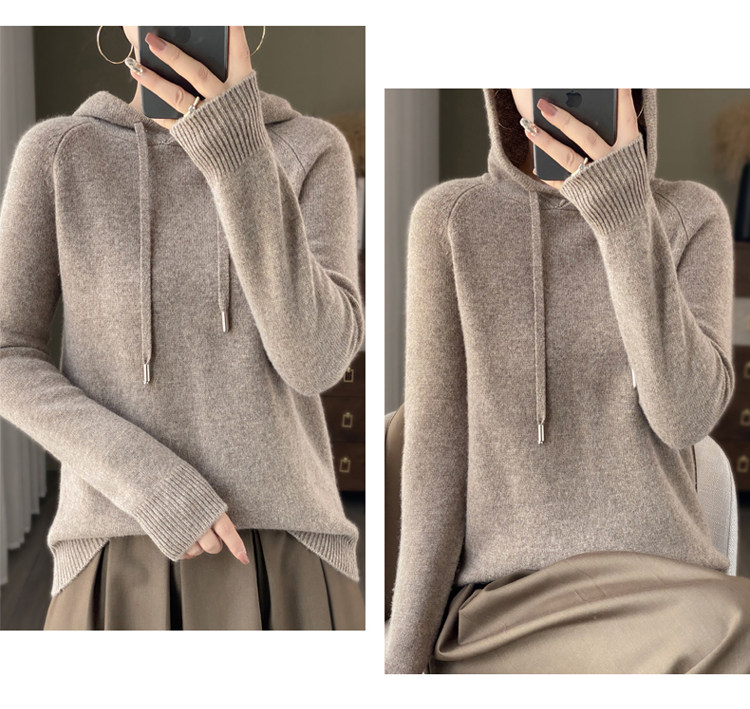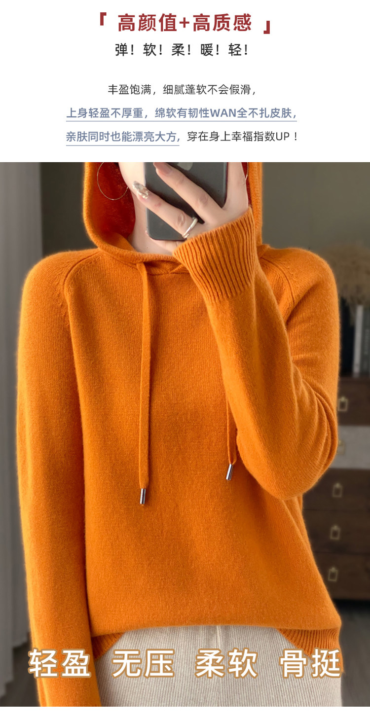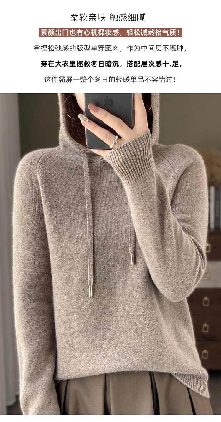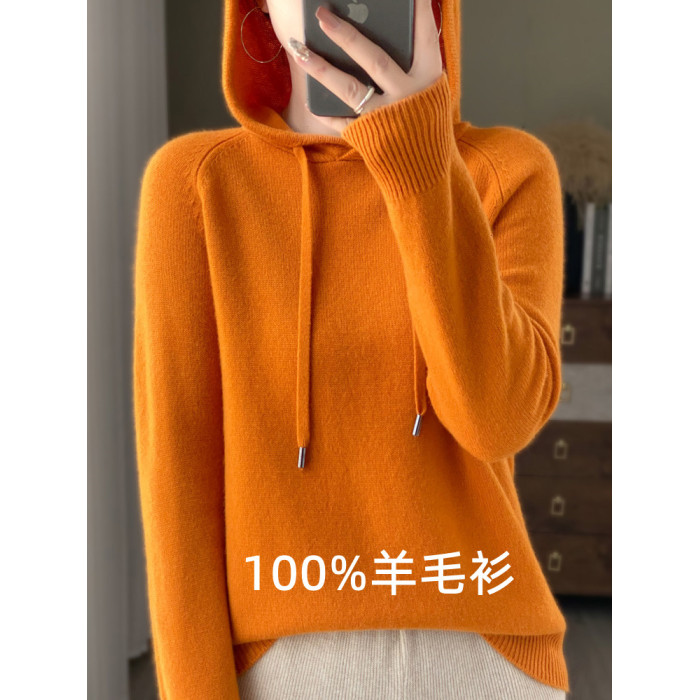 100%羊毛減齡連帽衛衣女羊絨針織衫帽衫寬松打底衫羊毛衫大碼毛衣