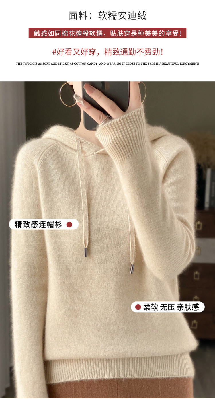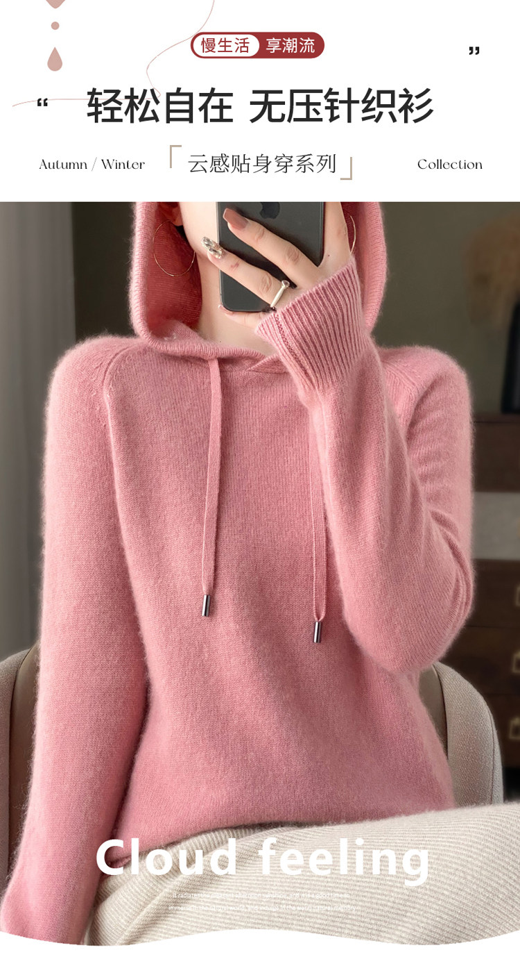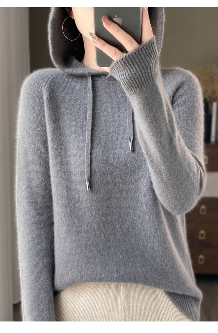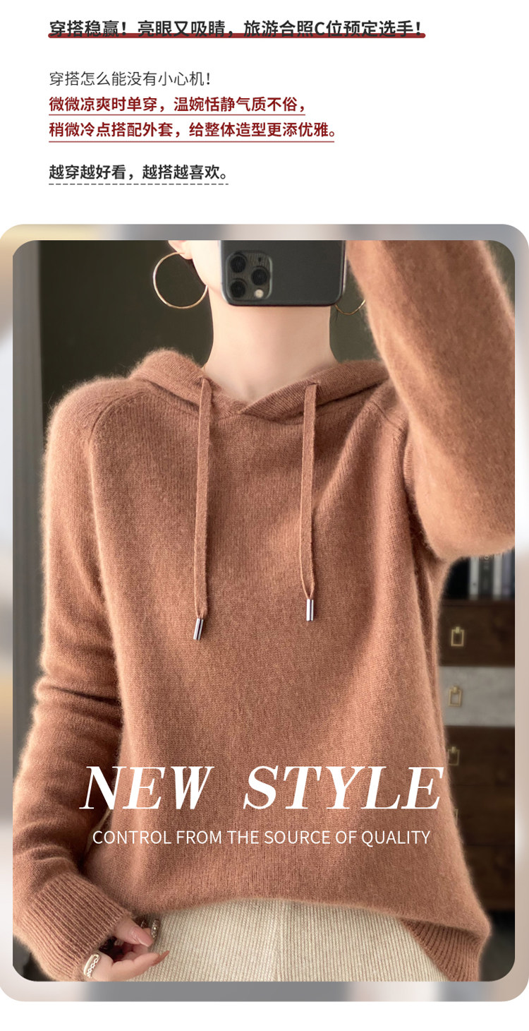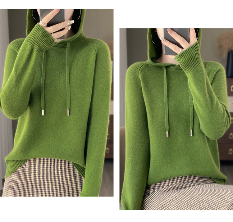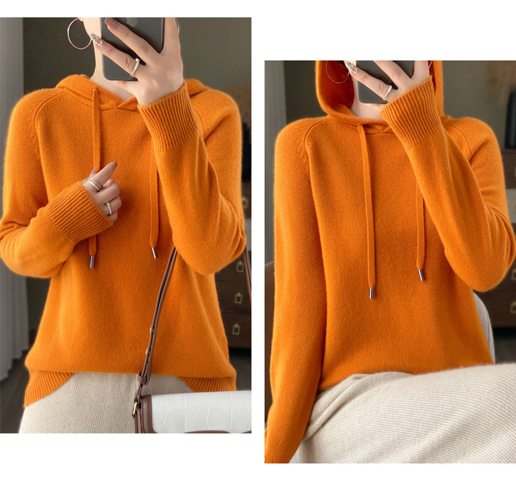 100%羊毛減齡連帽衛衣女羊絨針織衫帽衫寬松打底衫羊毛衫大碼毛衣