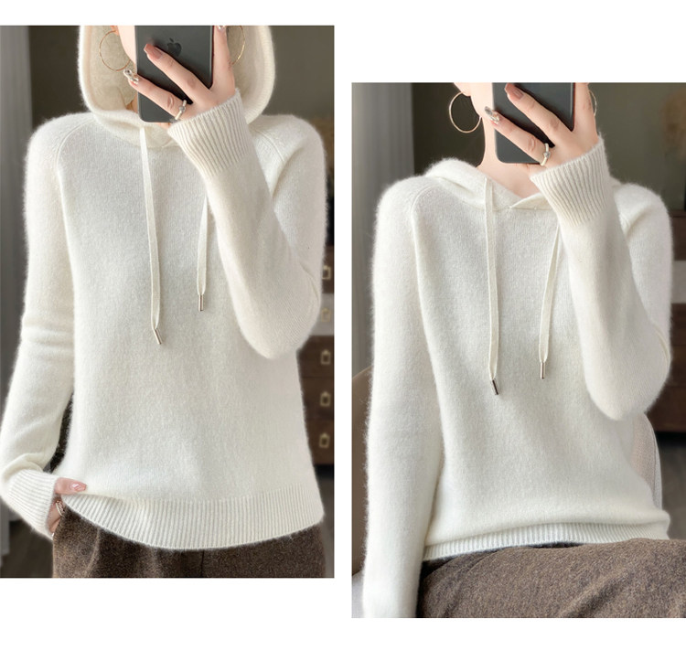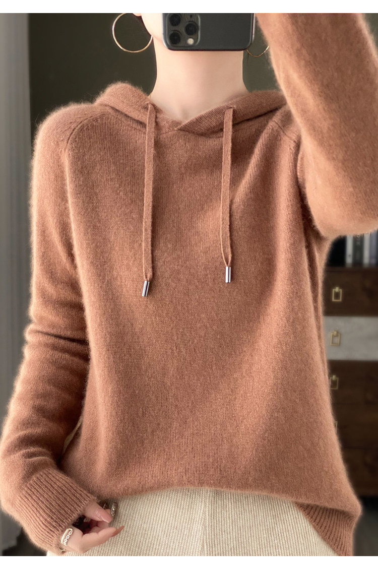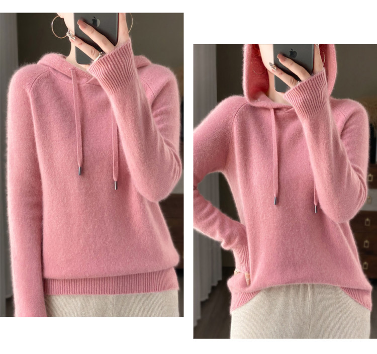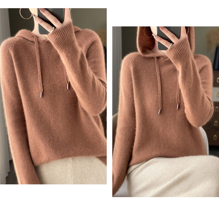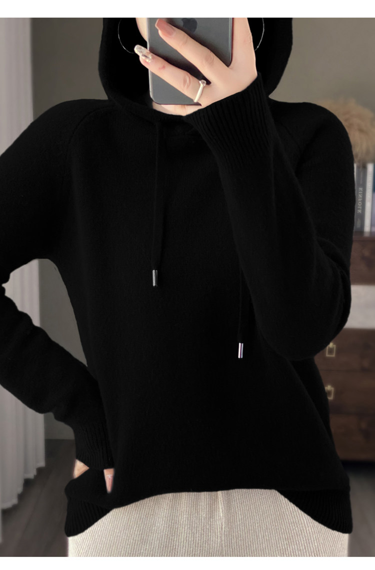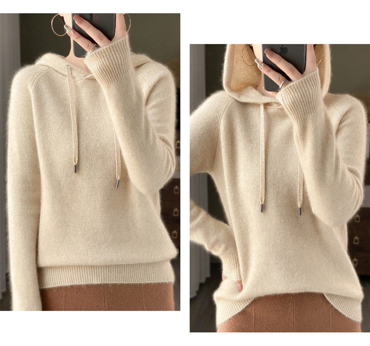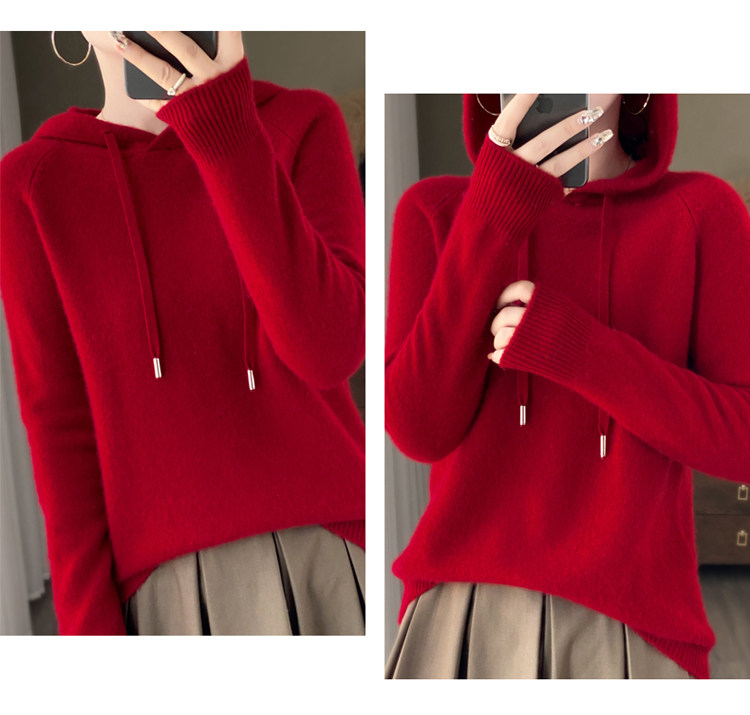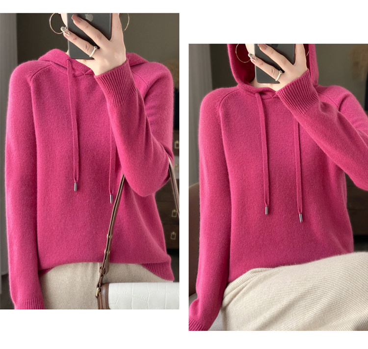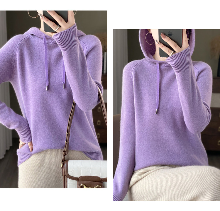 100%羊毛減齡連帽衛衣女羊絨針織衫帽衫寬松打底衫羊毛衫大碼毛衣