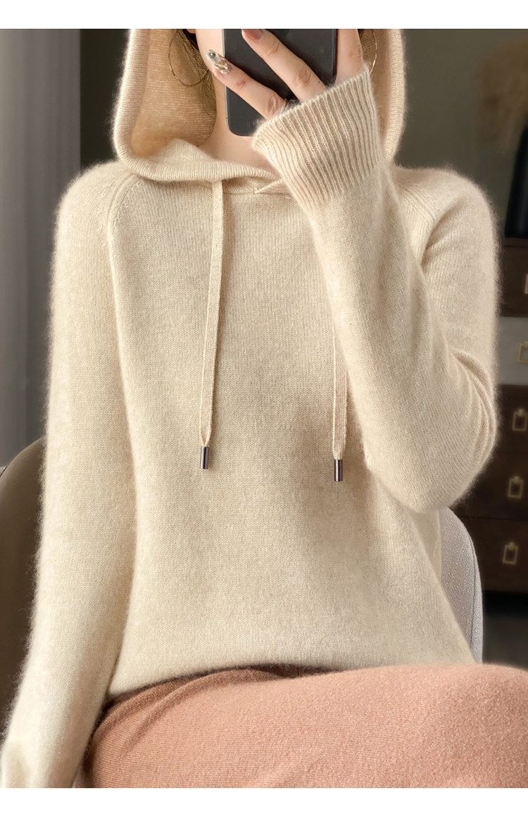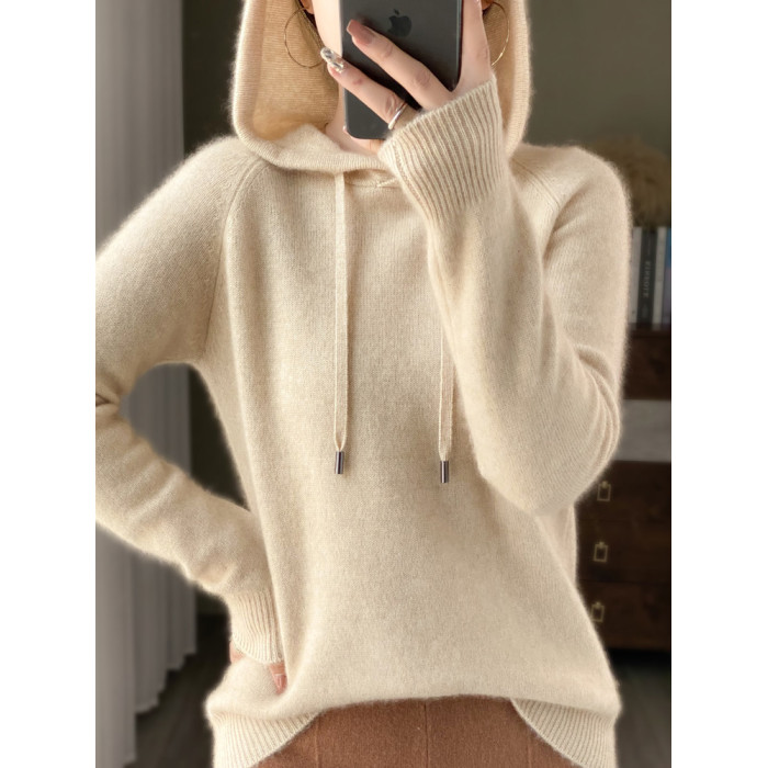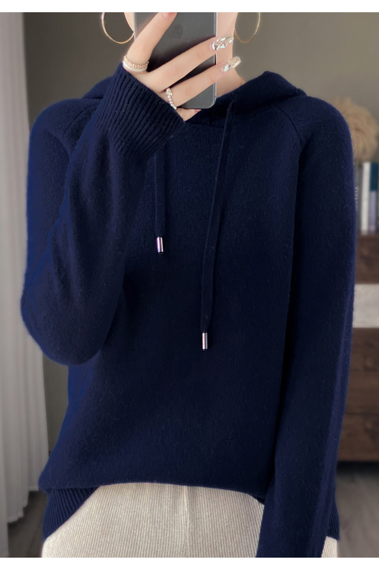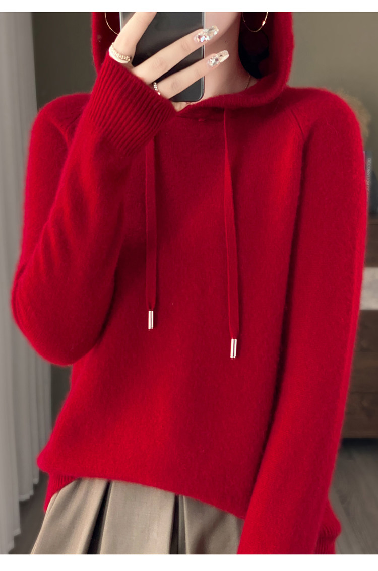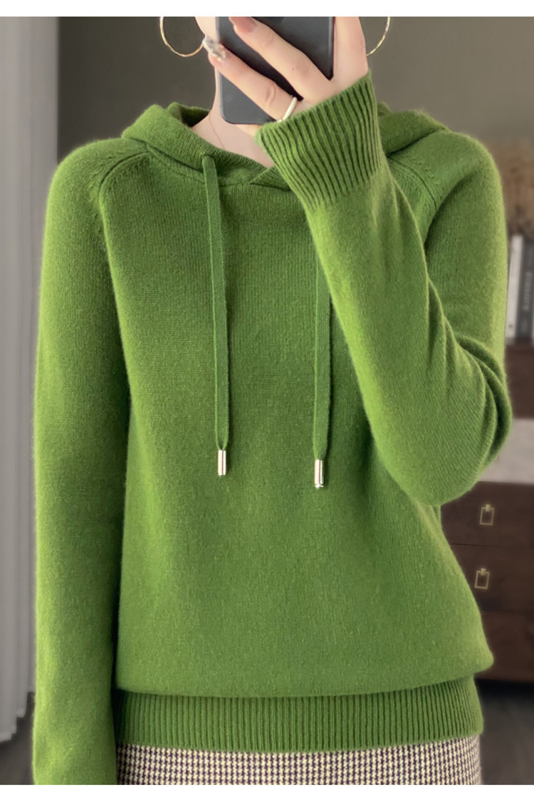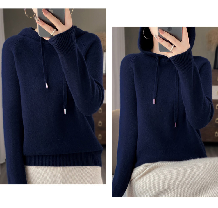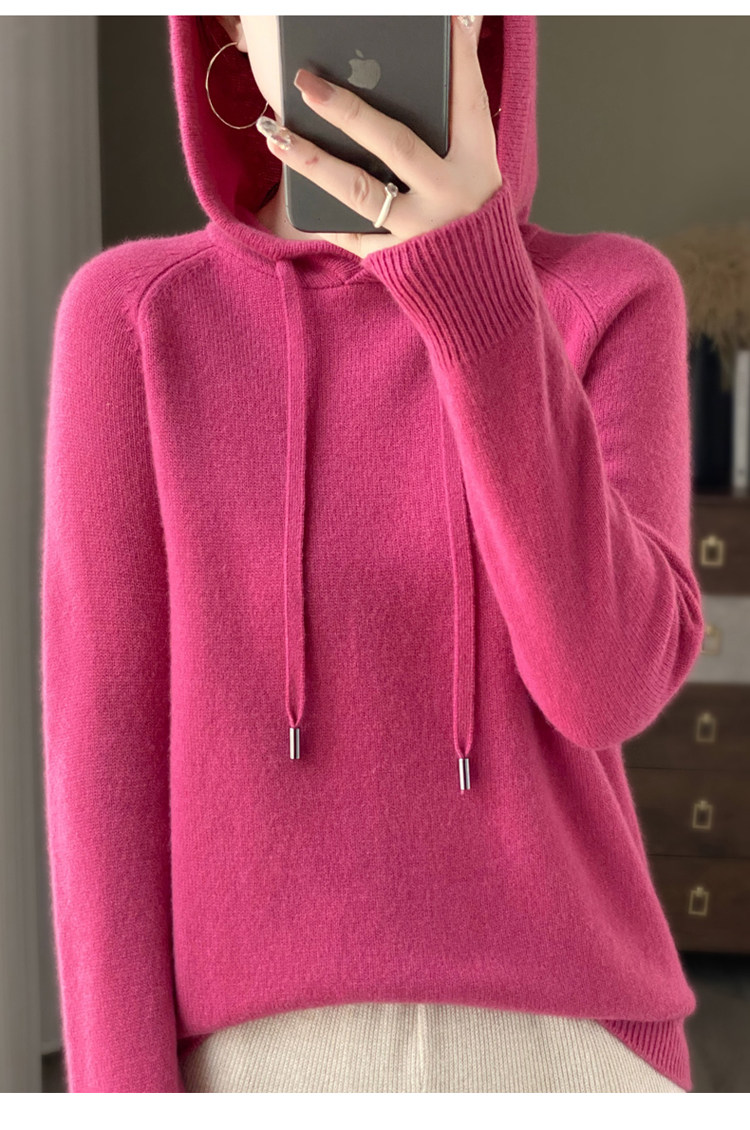 100%羊毛減齡連帽衛衣女羊絨針織衫帽衫寬松打底衫羊毛衫大碼毛衣