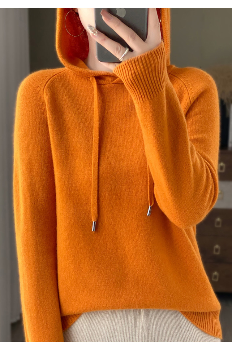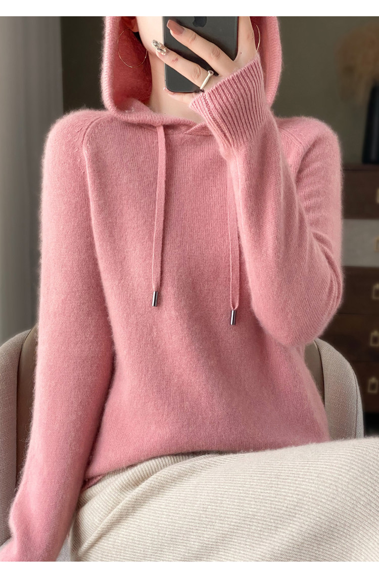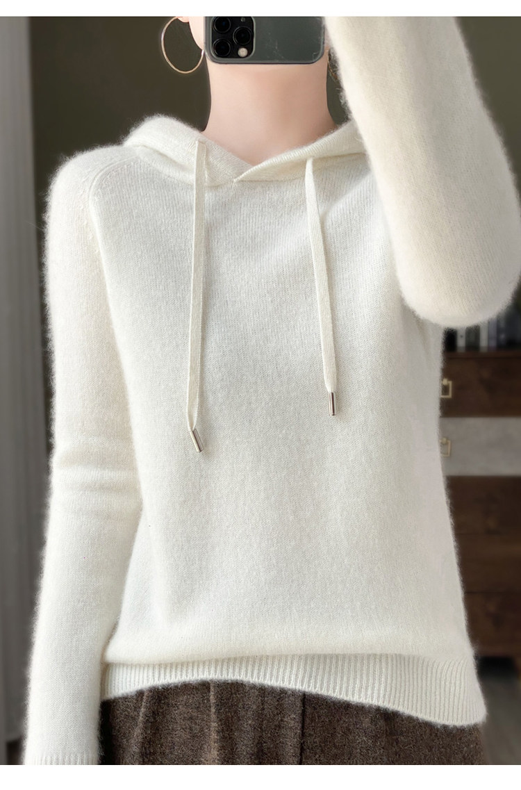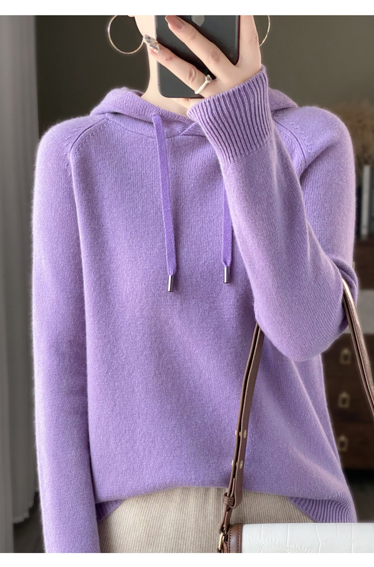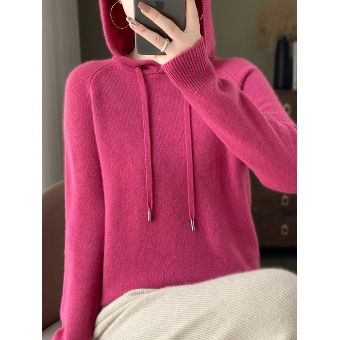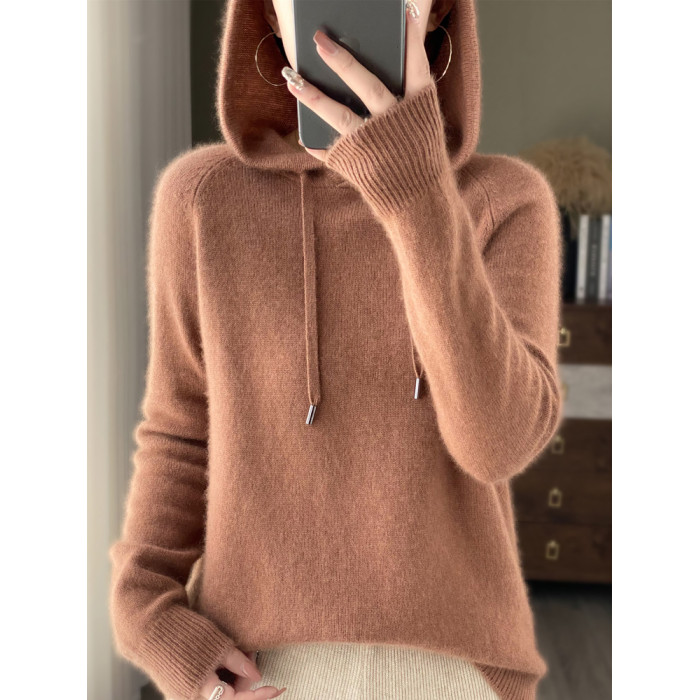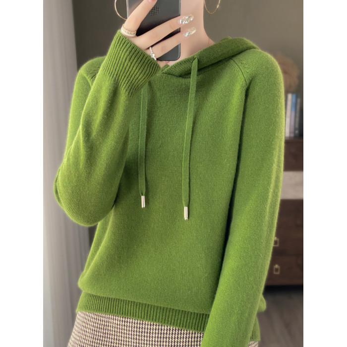 100%羊毛減齡連帽衛衣女羊絨針織衫帽衫寬松打底衫羊毛衫大碼毛衣