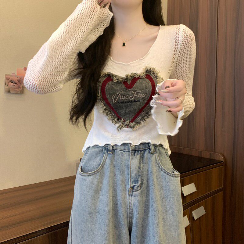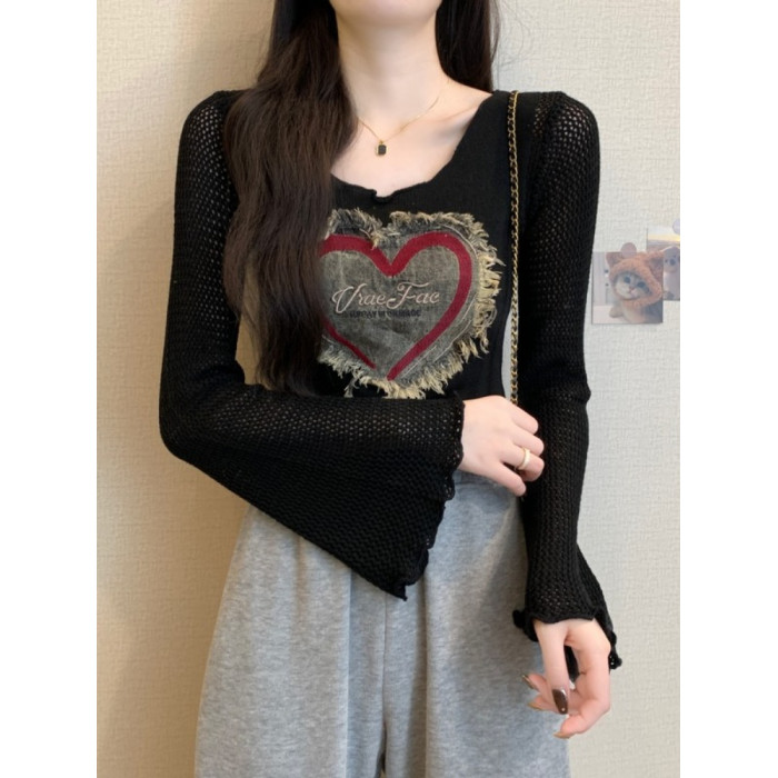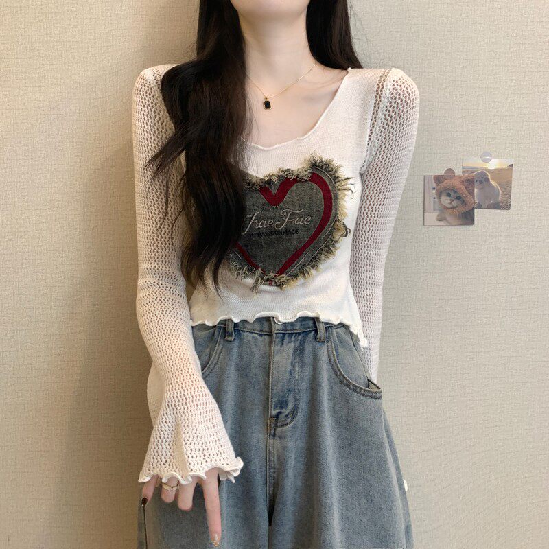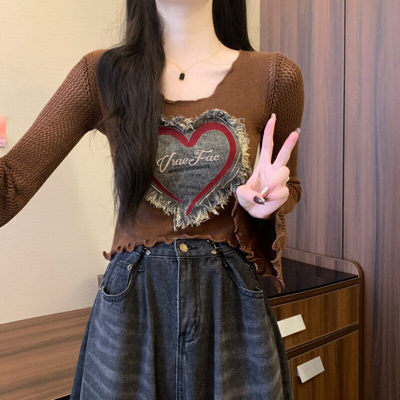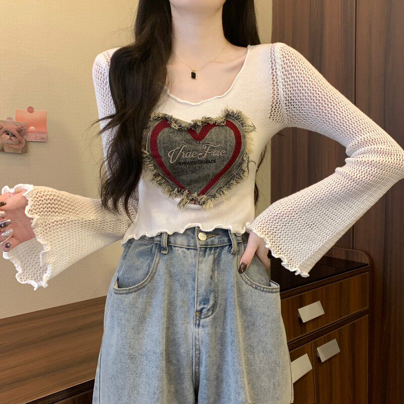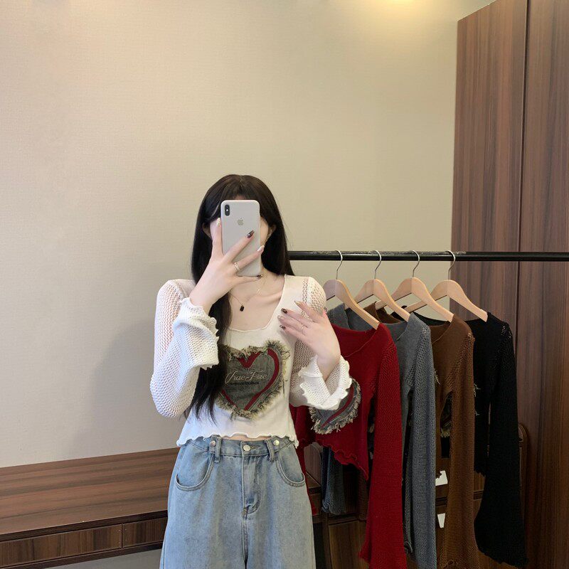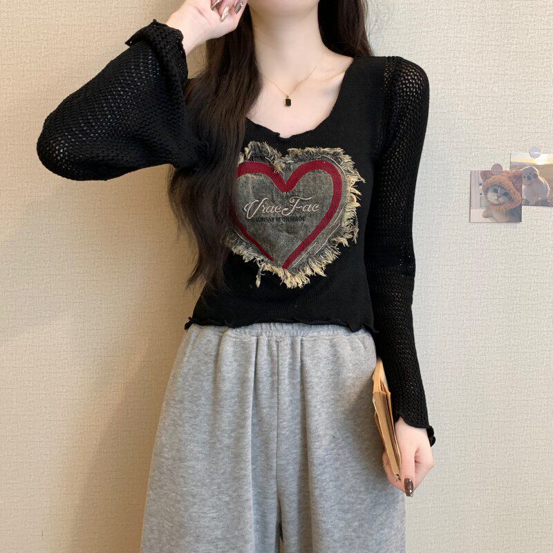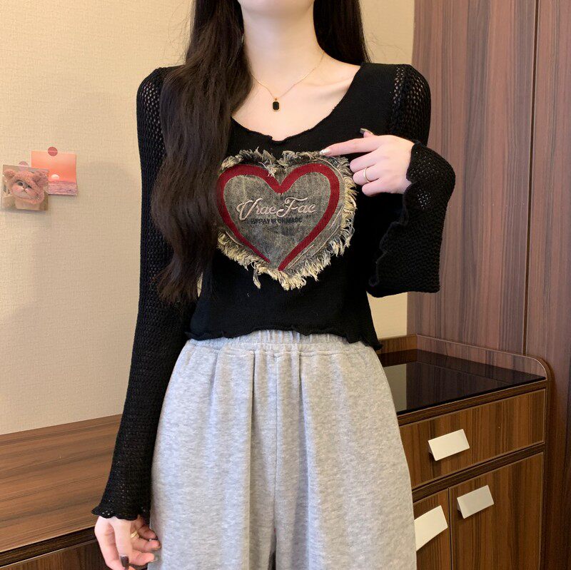 安哥拉紅V領針織打底衫女秋冬露膚穿搭短款喇叭長袖大郎毛衣上衣