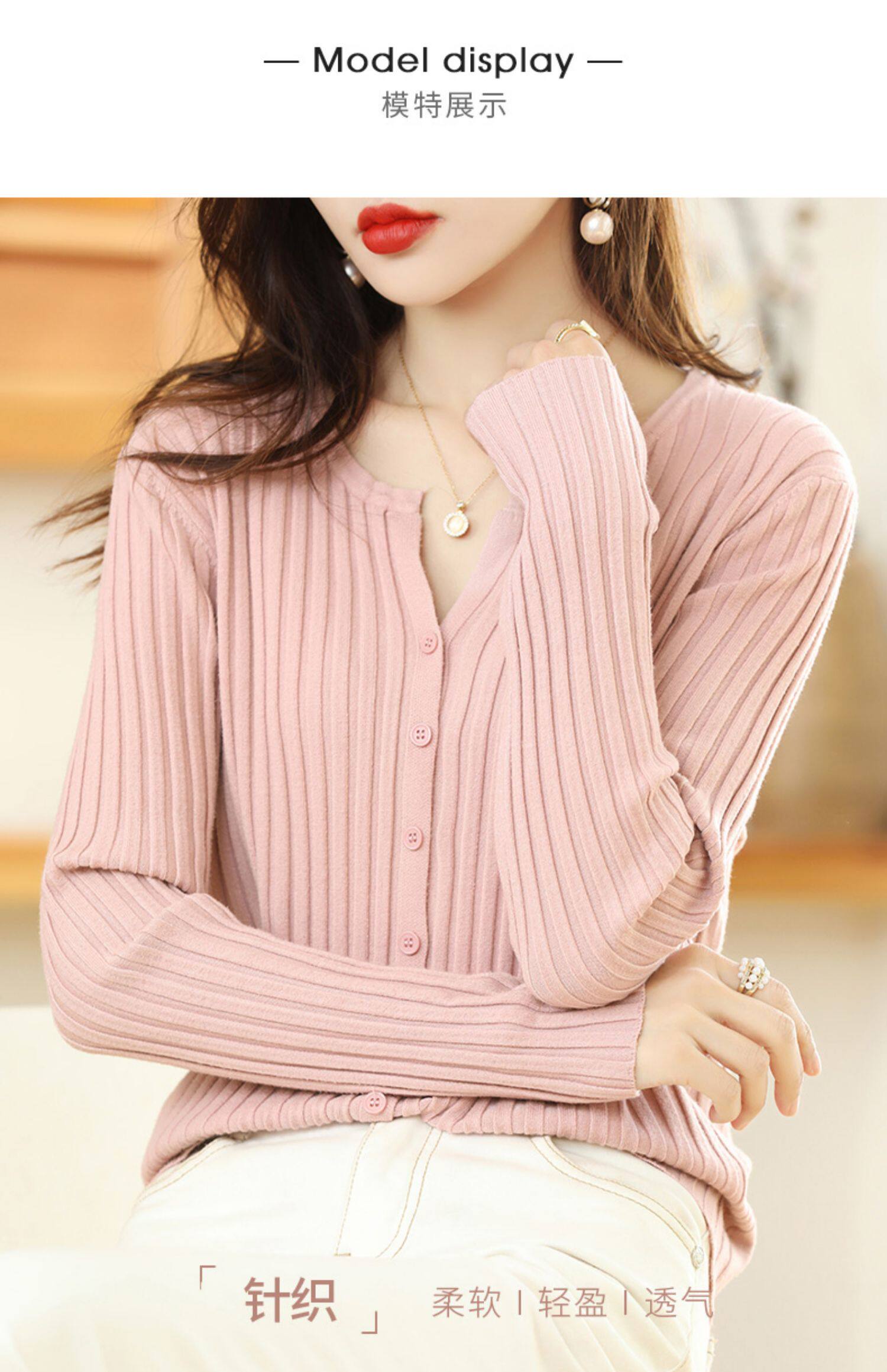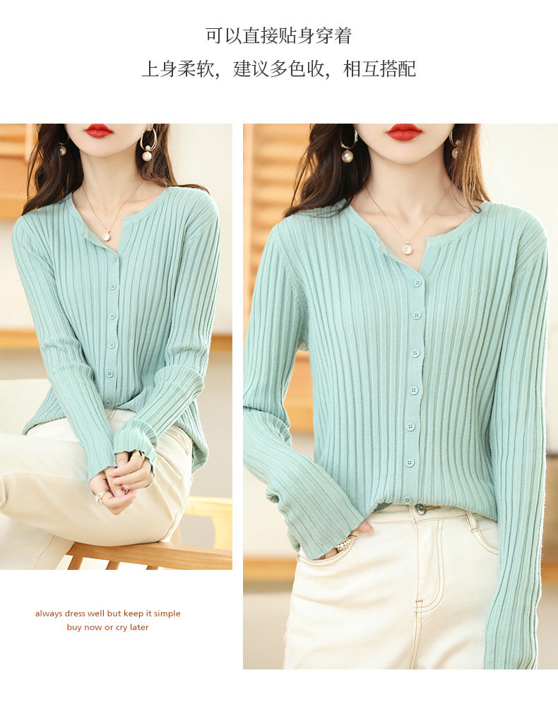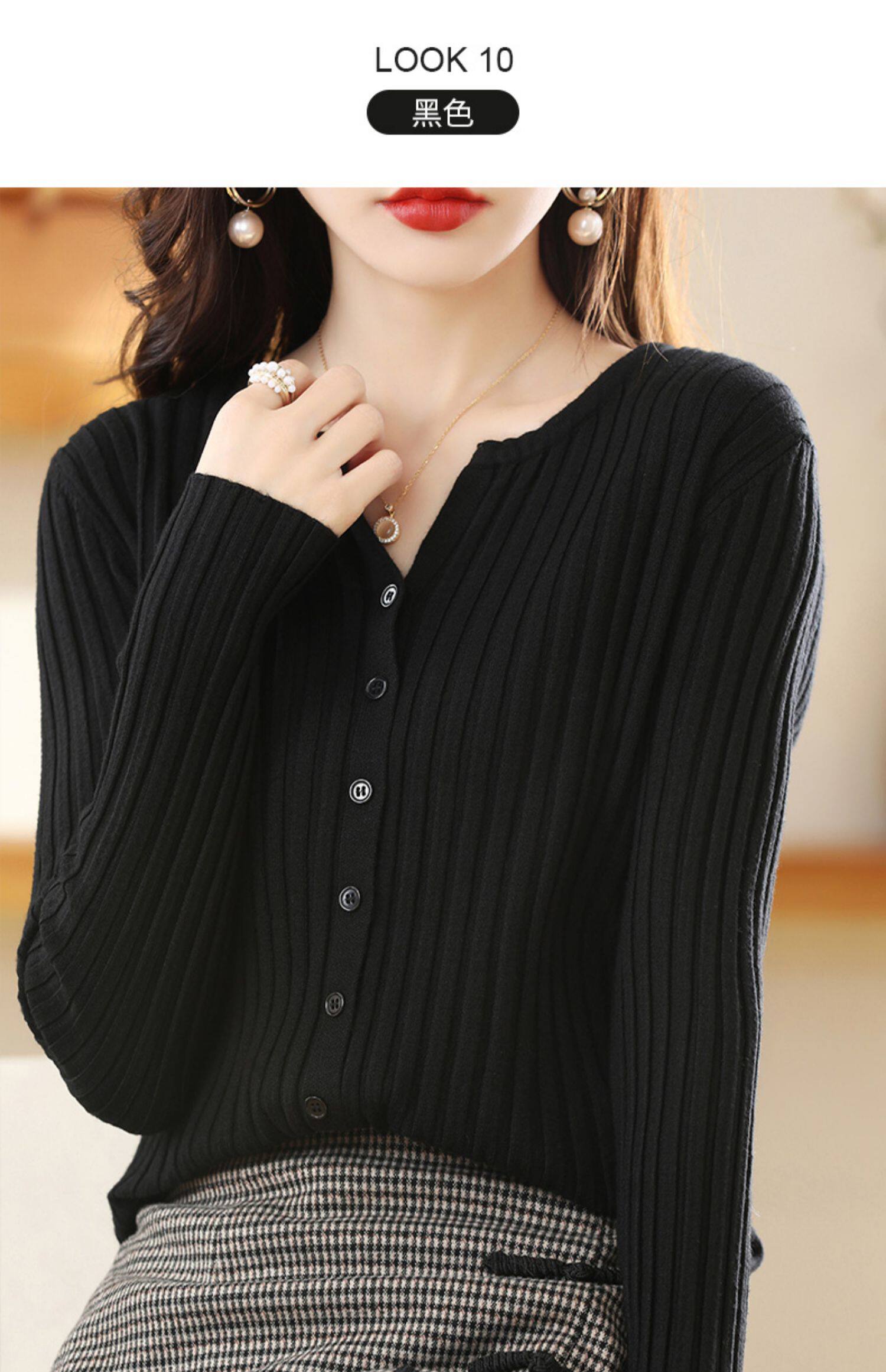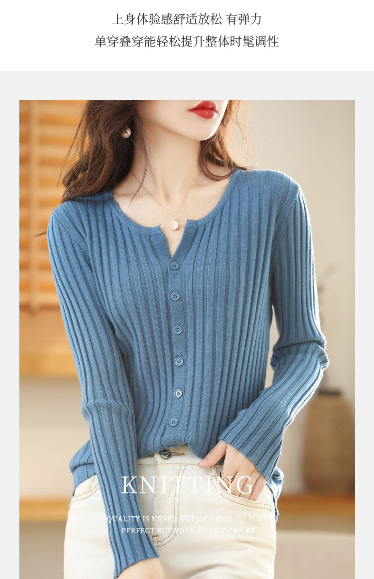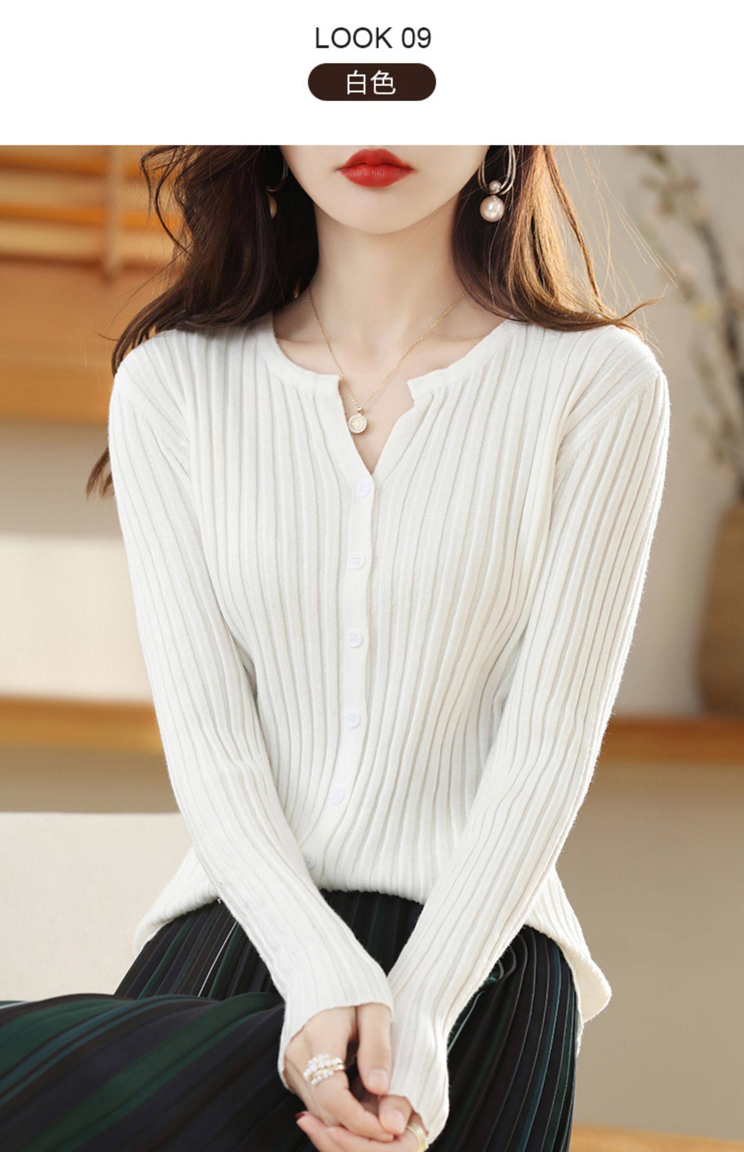 2025新款100純色羊毛開衫外套女圓領羊絨衫毛衣女針織打底衫外套