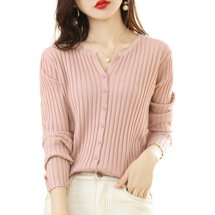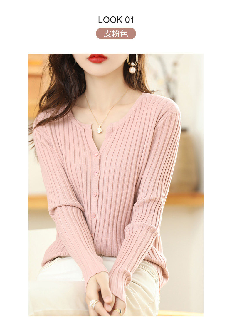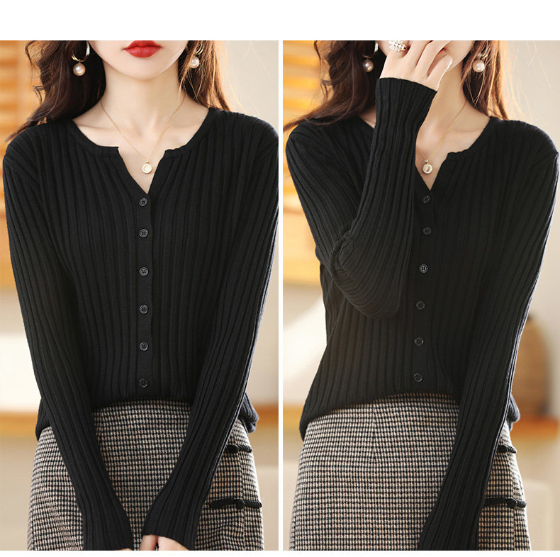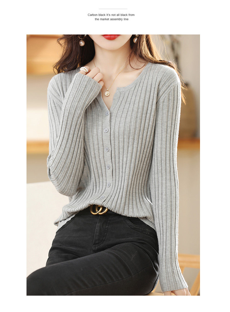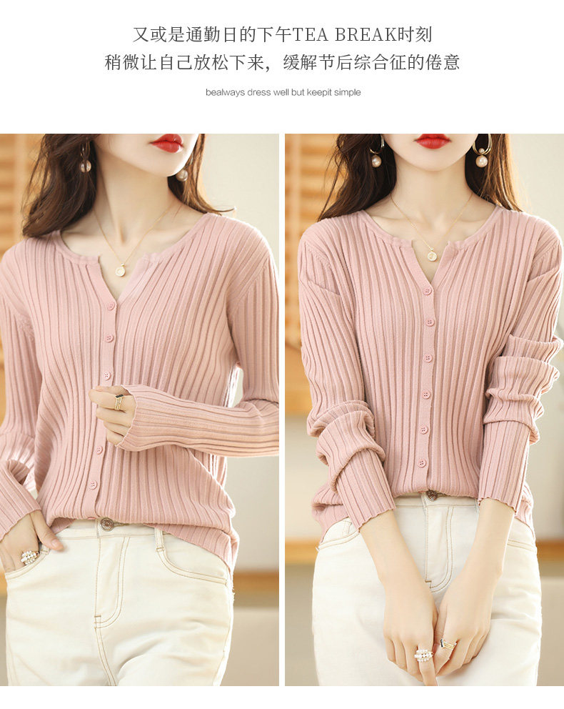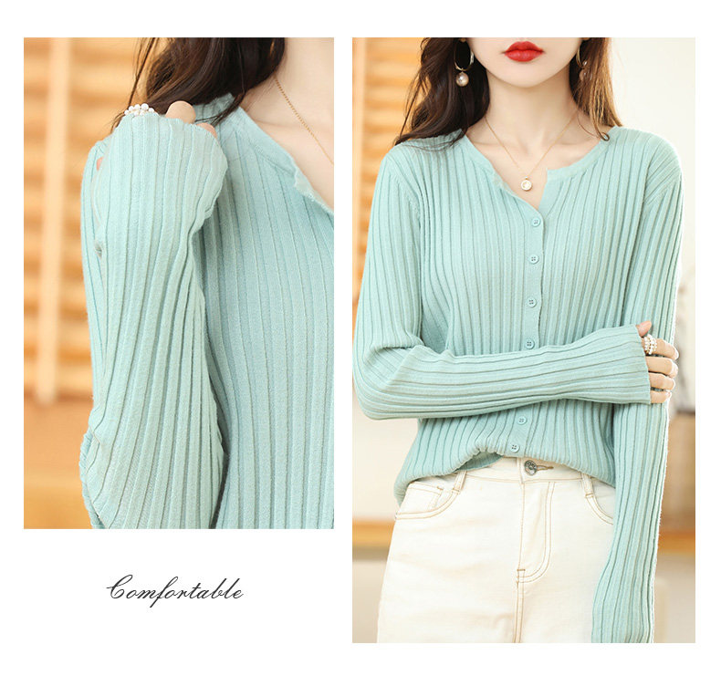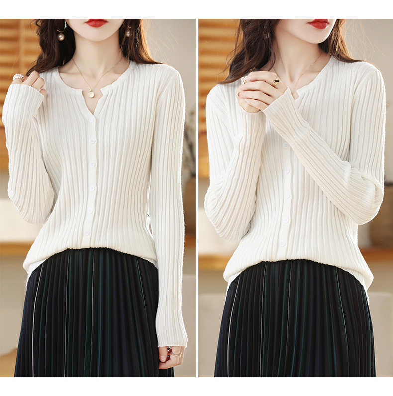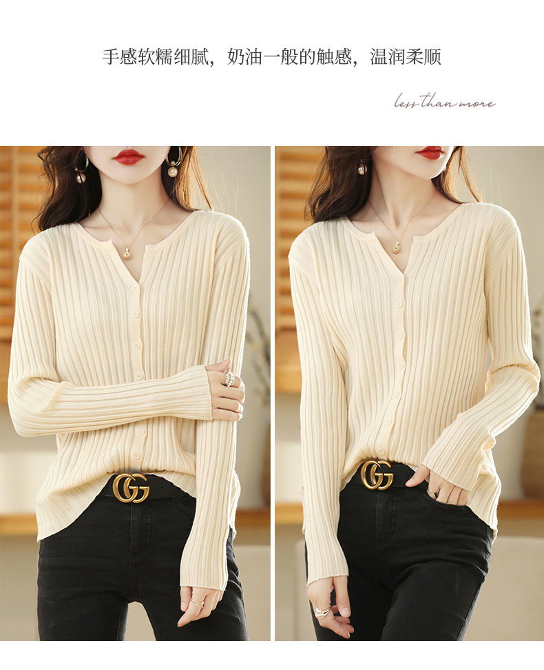 2025新款100純色羊毛開衫外套女圓領羊絨衫毛衣女針織打底衫外套