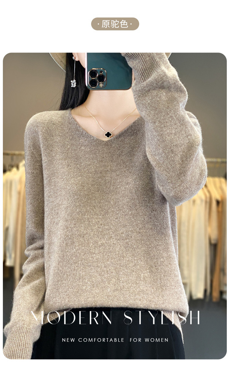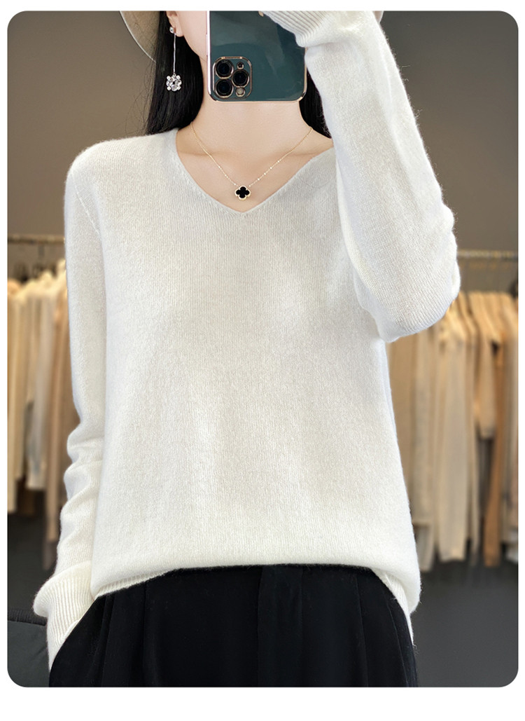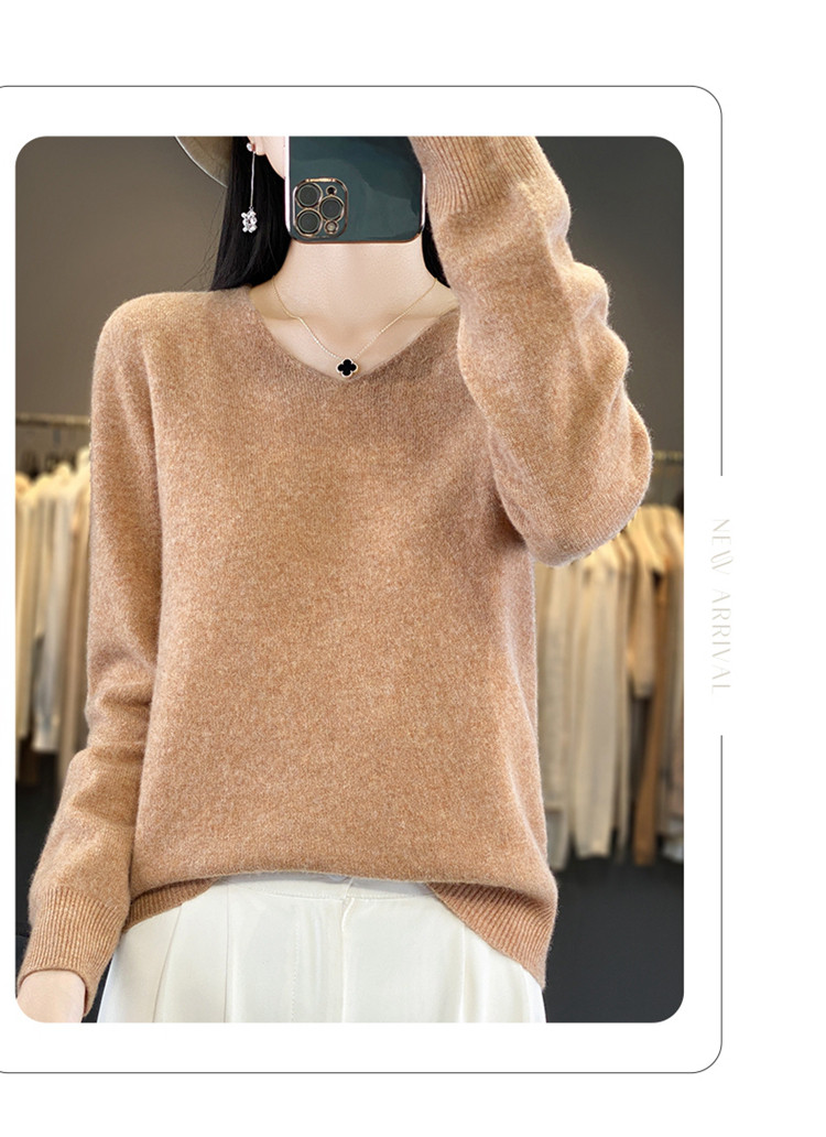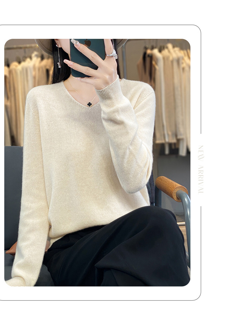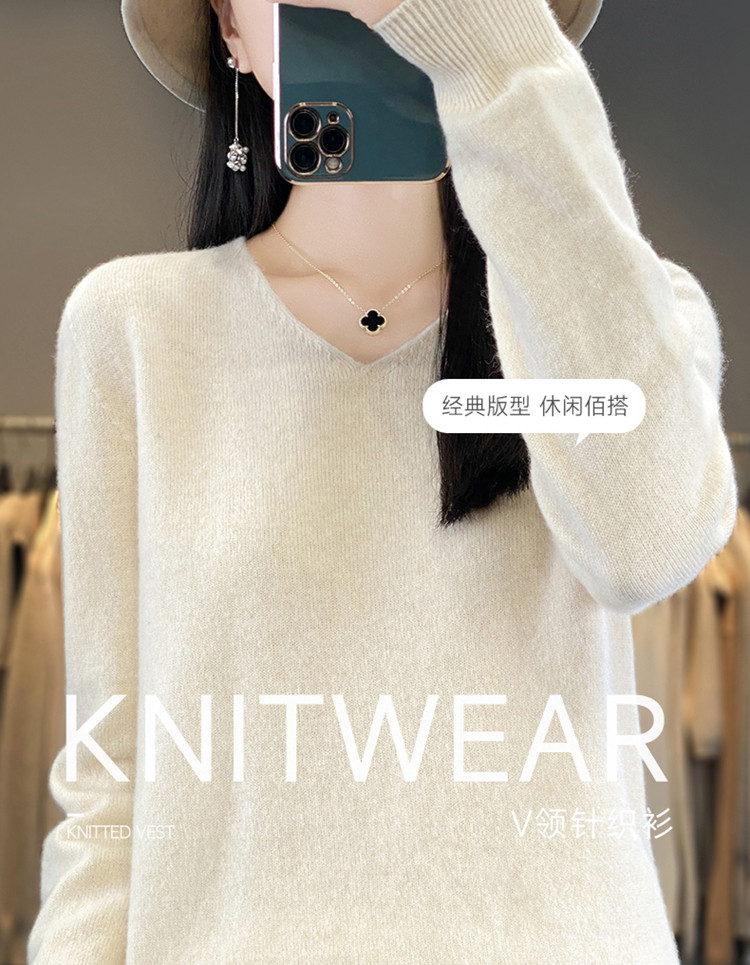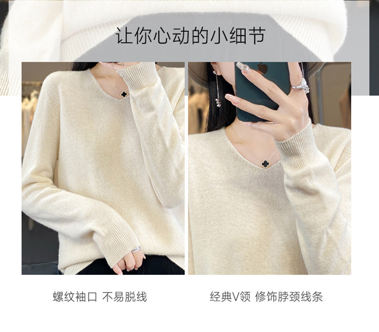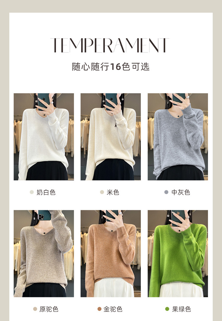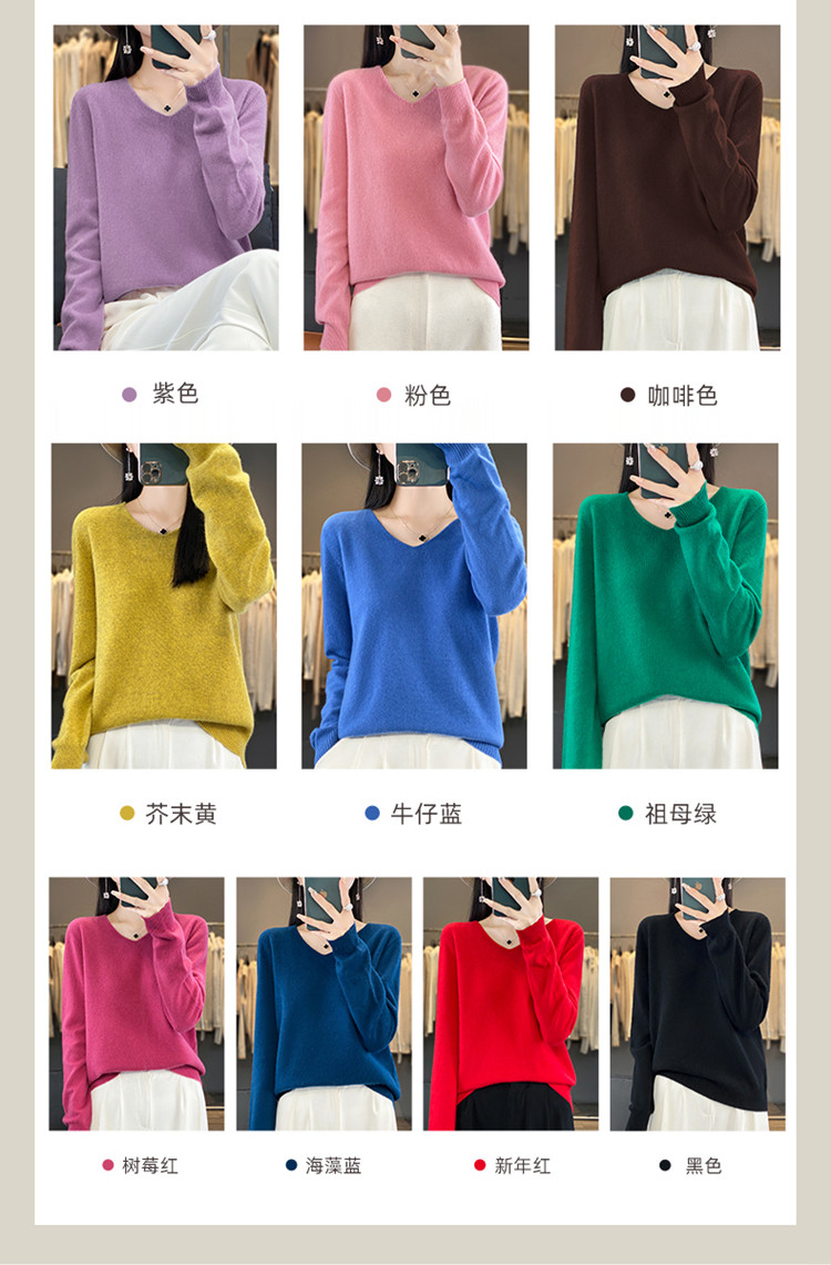 一線成衣100純羊毛V領打底衫女2024新款秋冬內搭寬松顯瘦針織毛衣