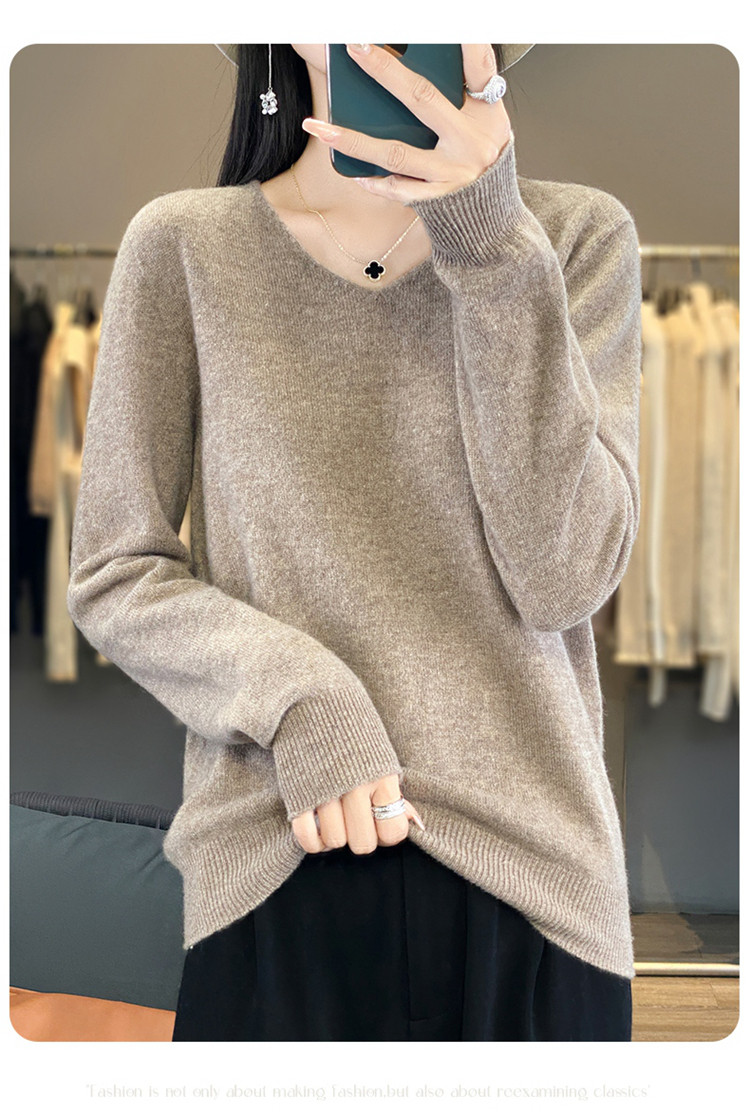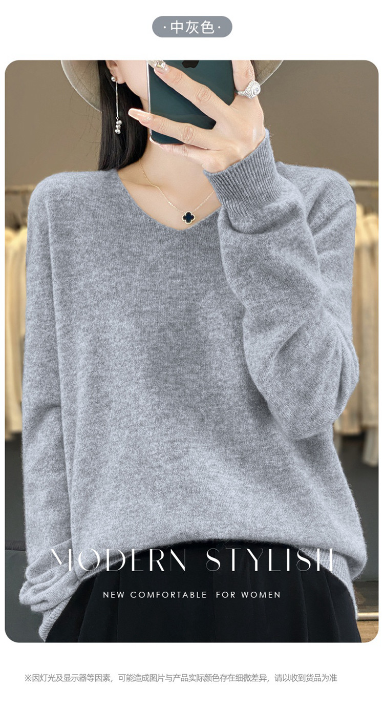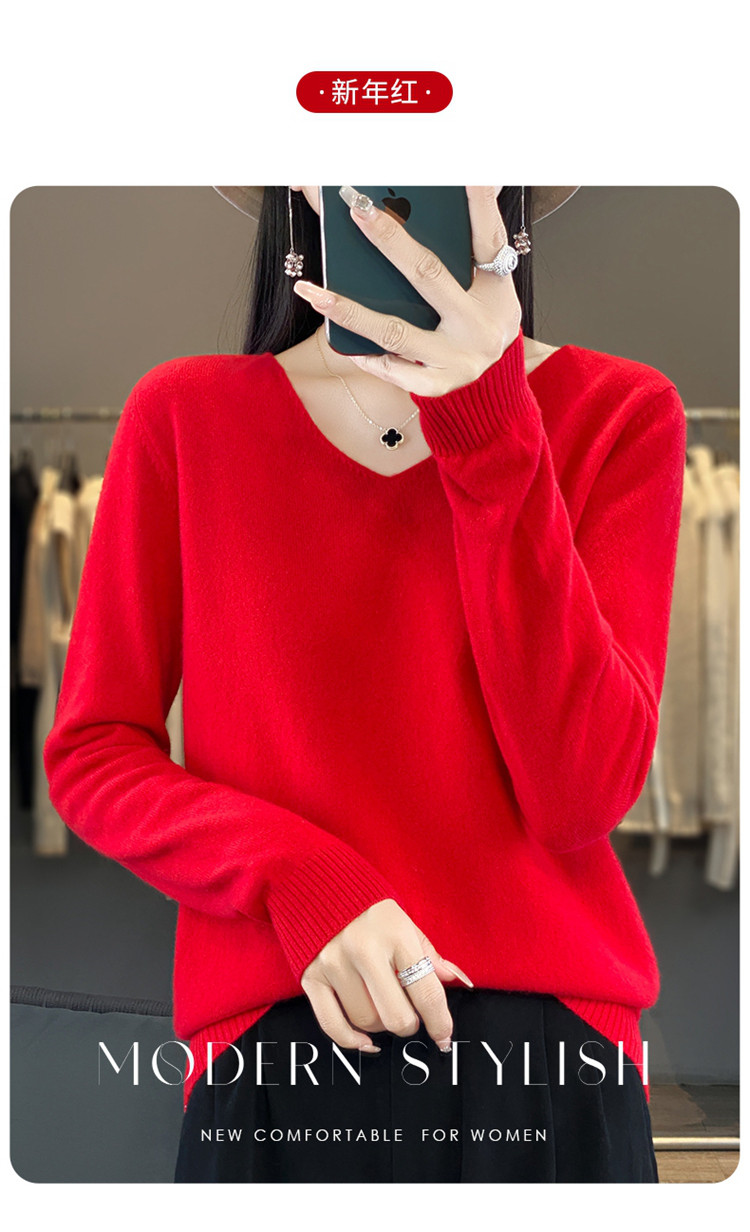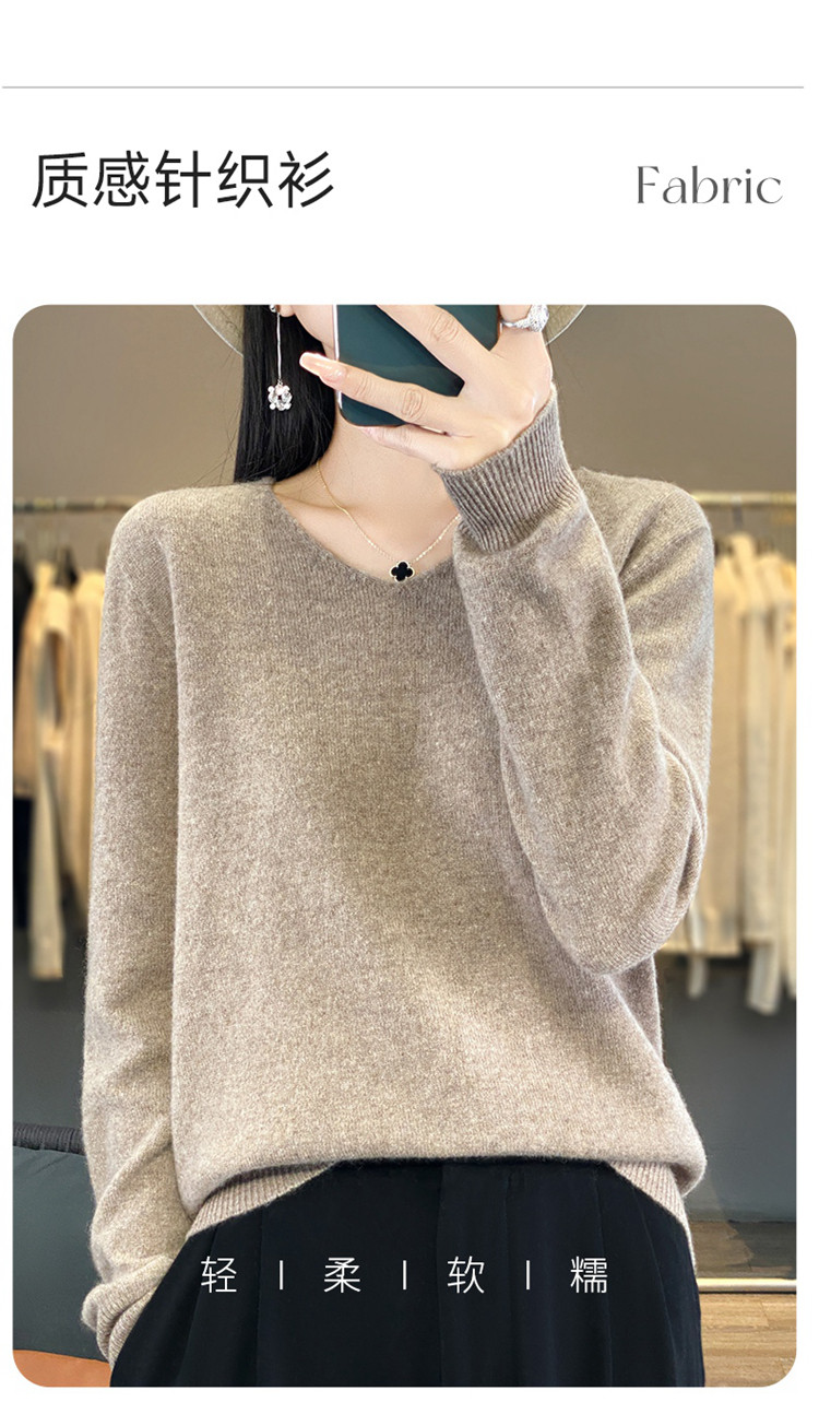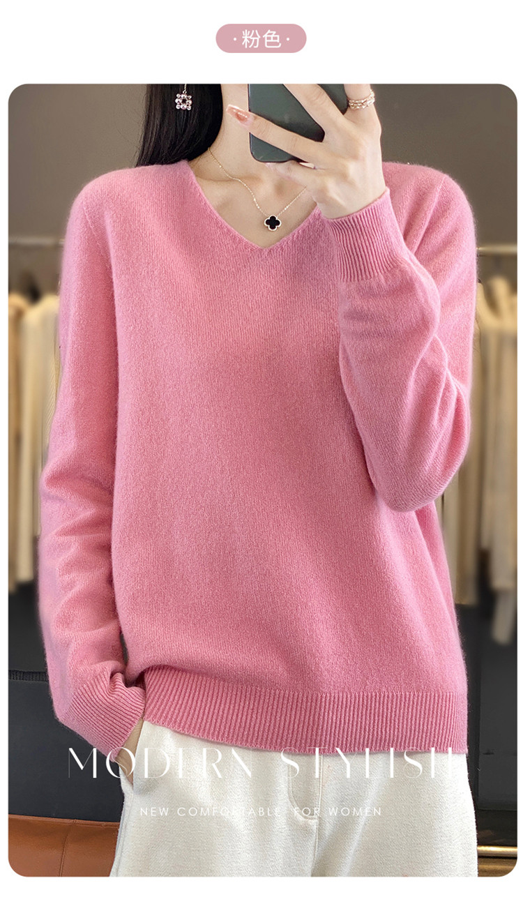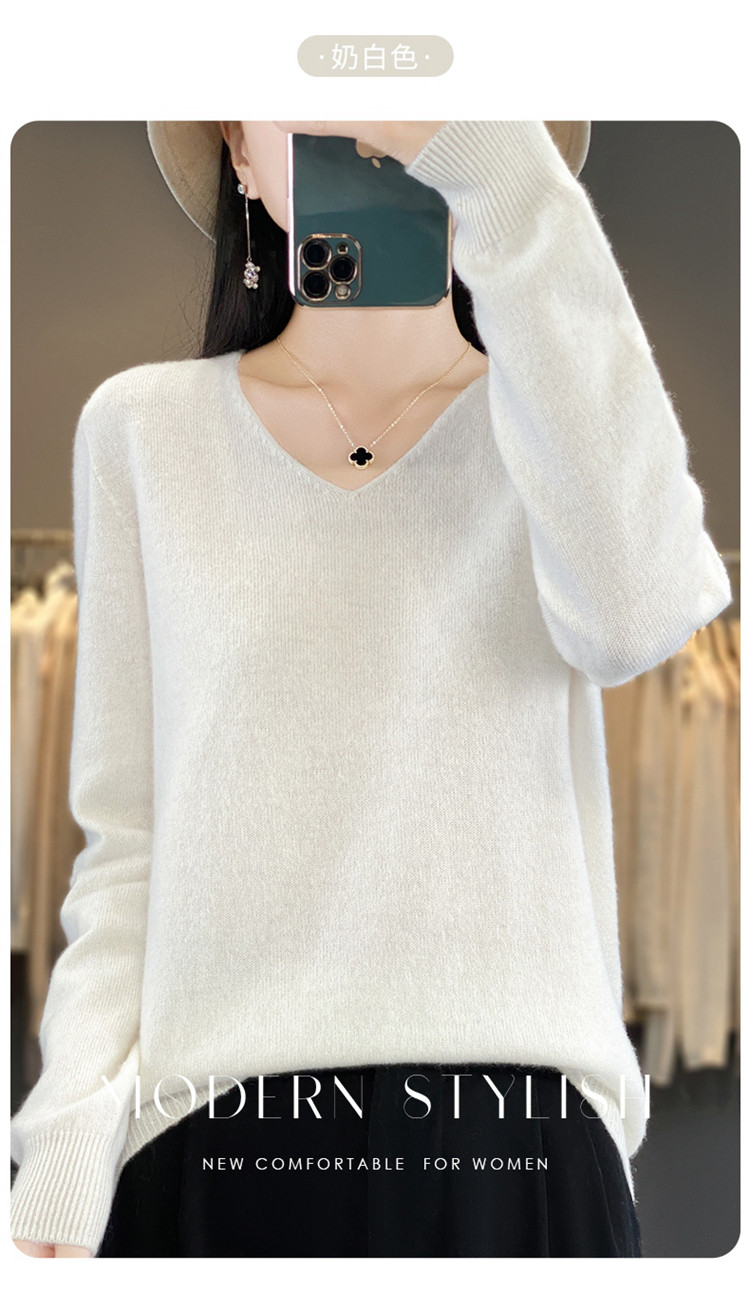 一線成衣100純羊毛V領打底衫女2024新款秋冬內搭寬松顯瘦針織毛衣
