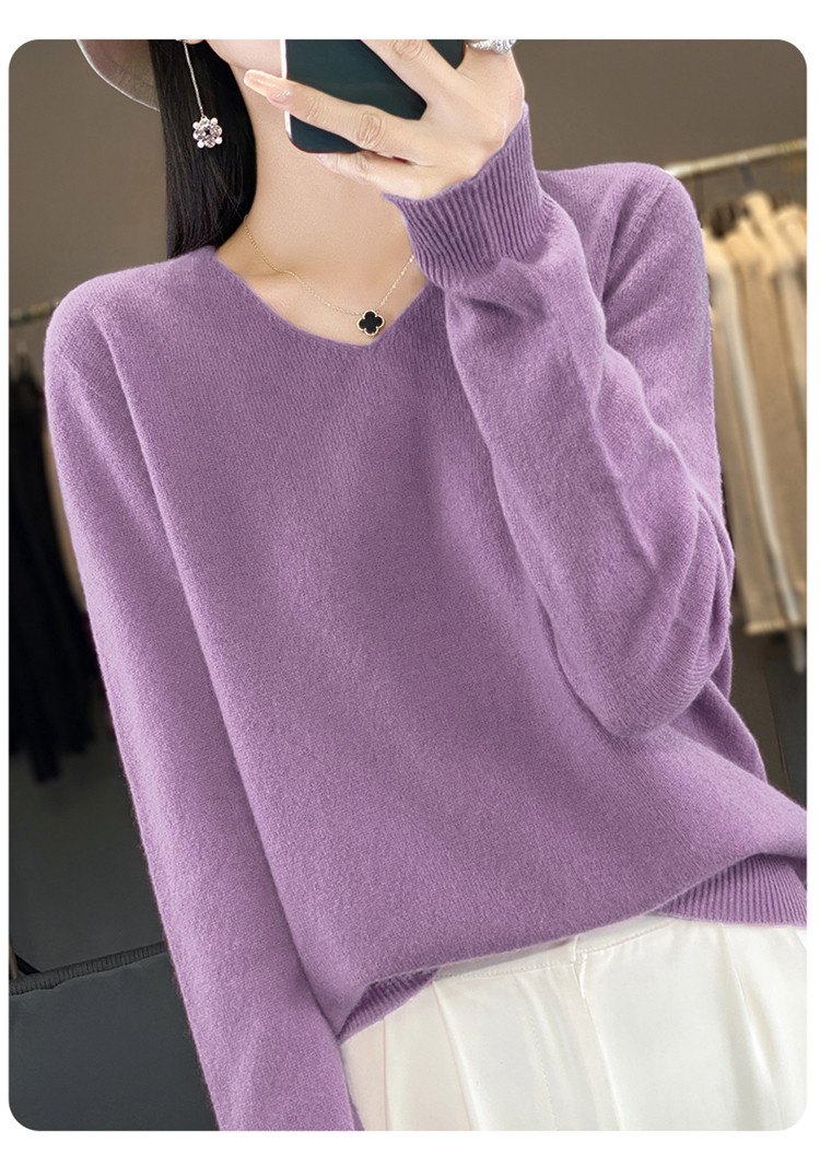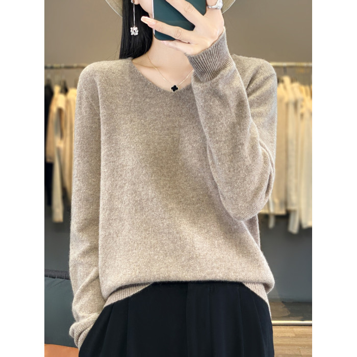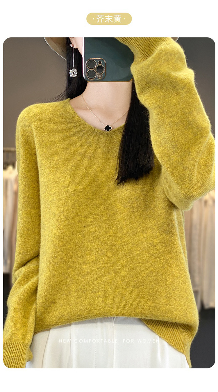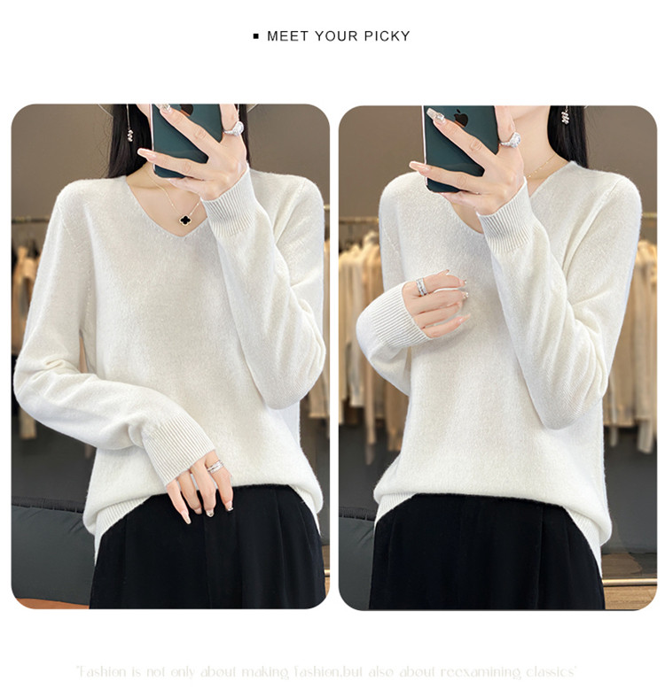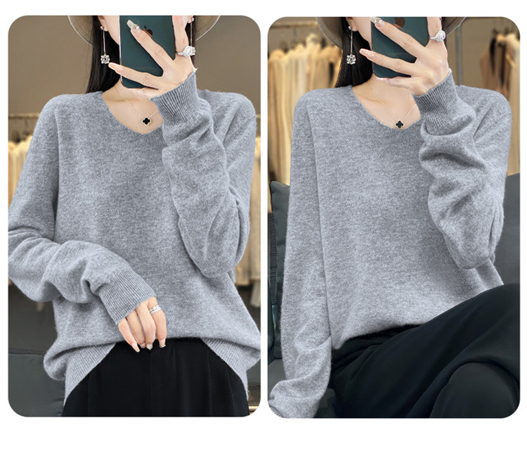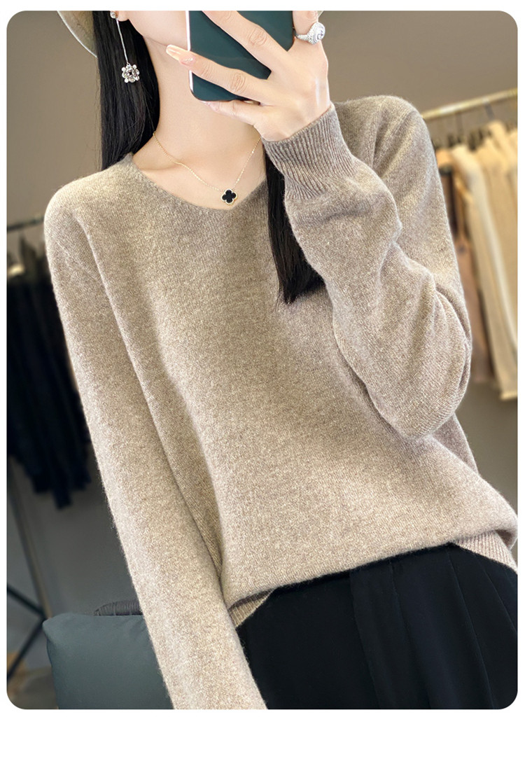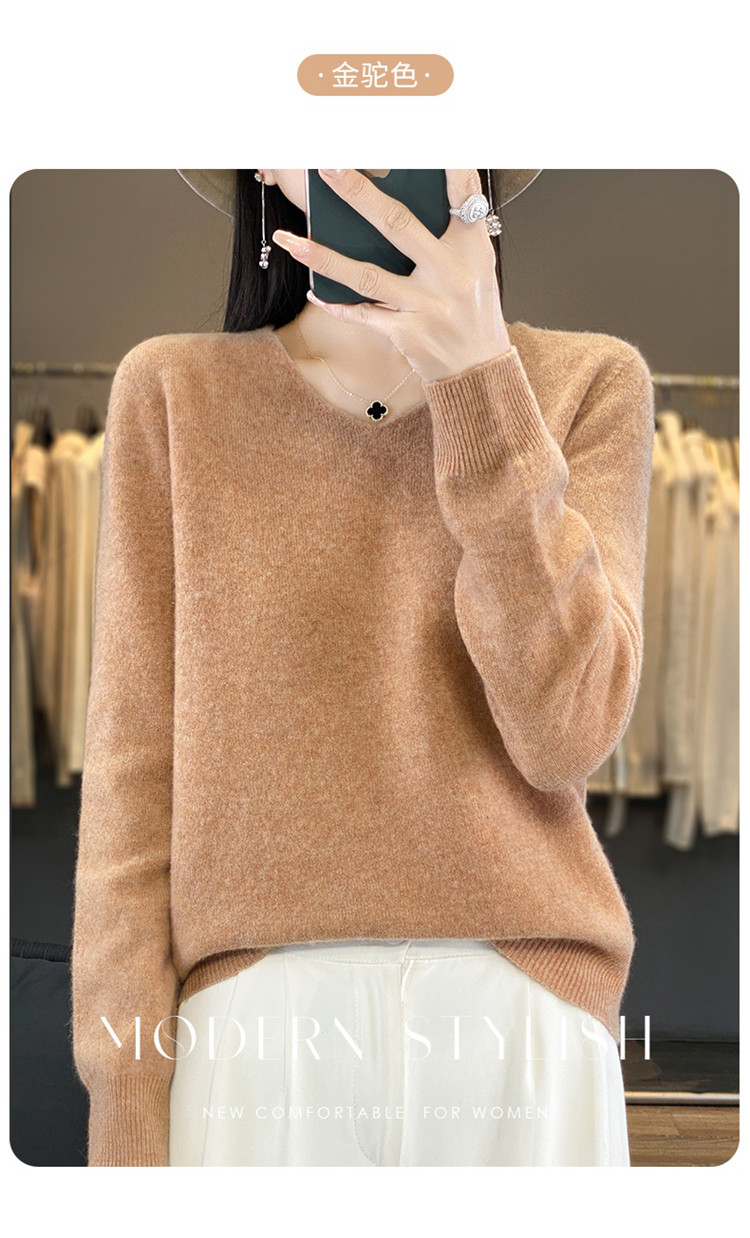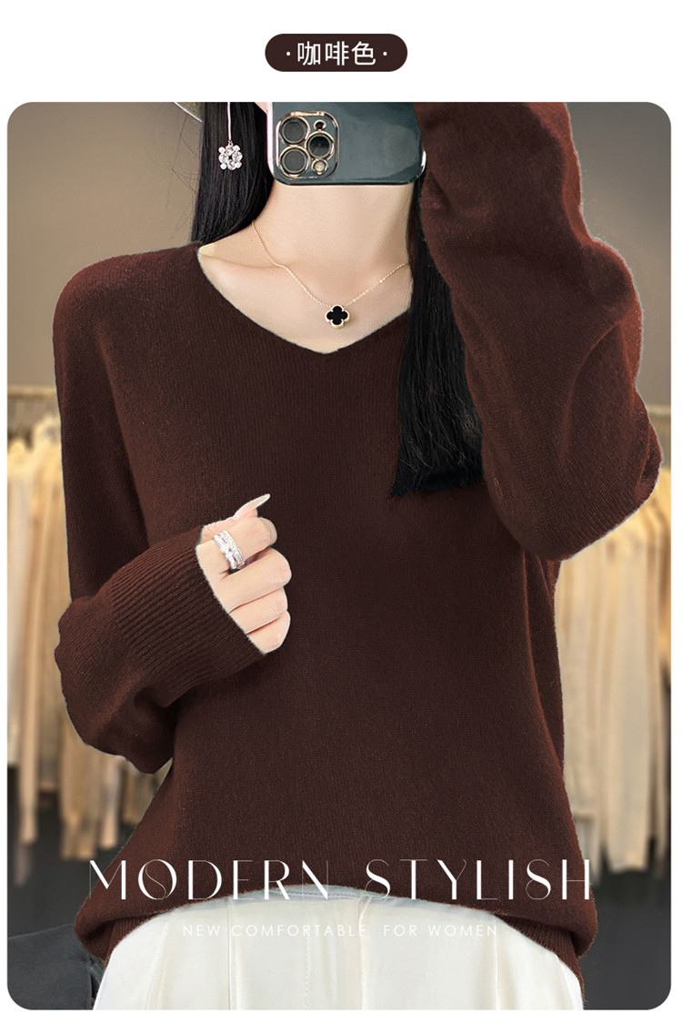 一線成衣100純羊毛V領打底衫女2024新款秋冬內搭寬松顯瘦針織毛衣