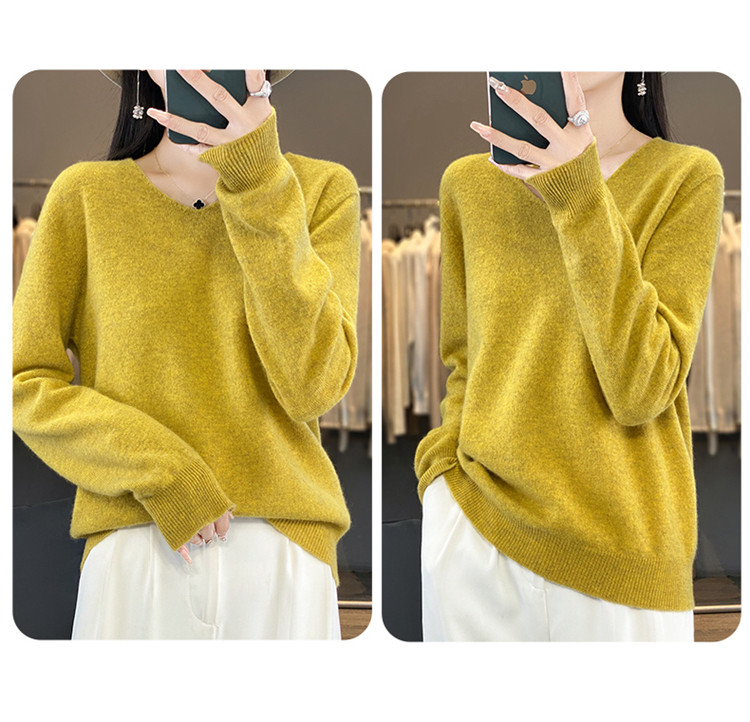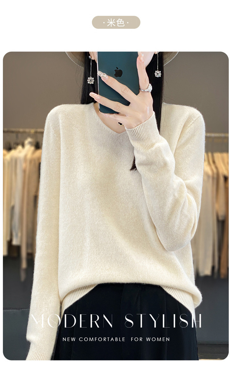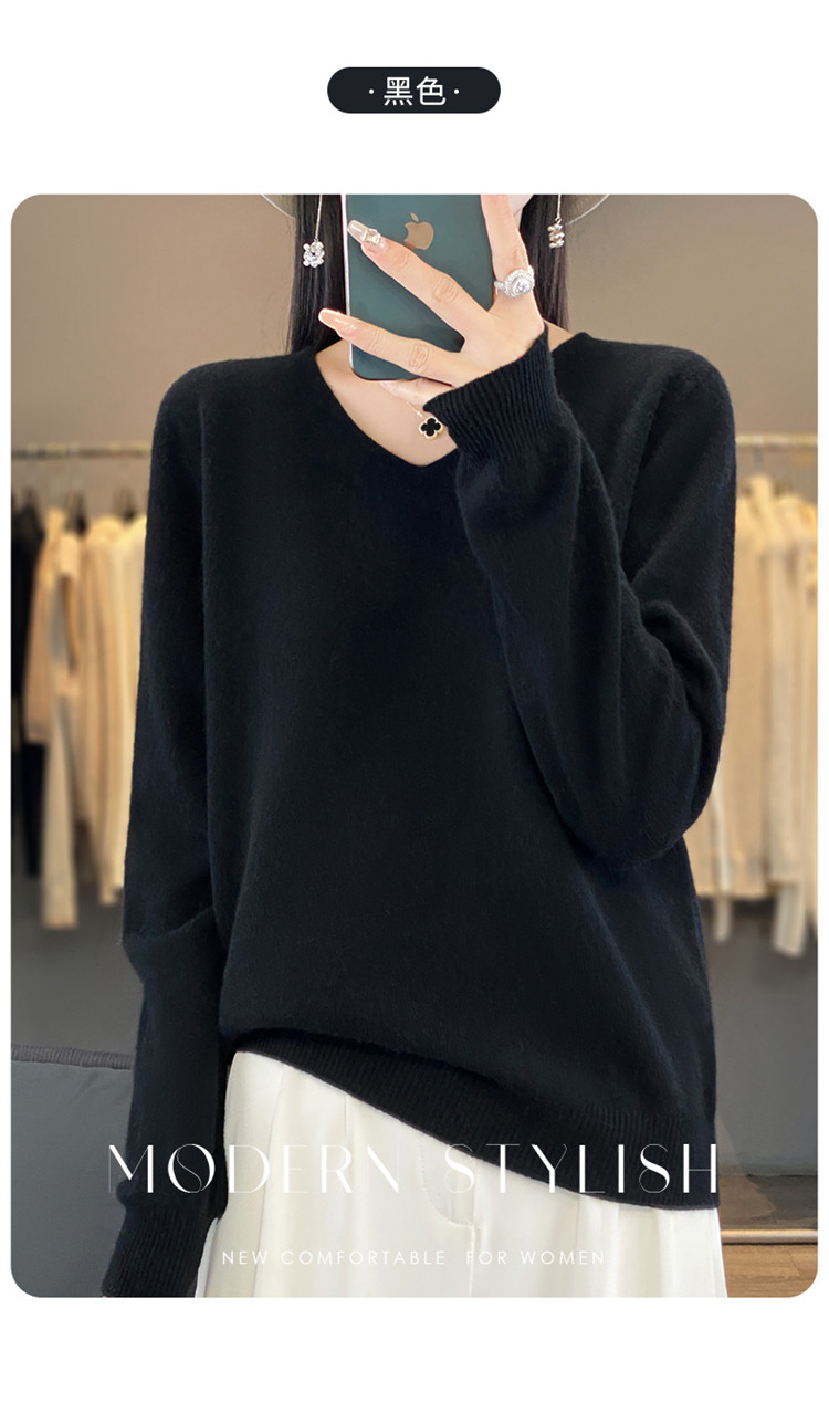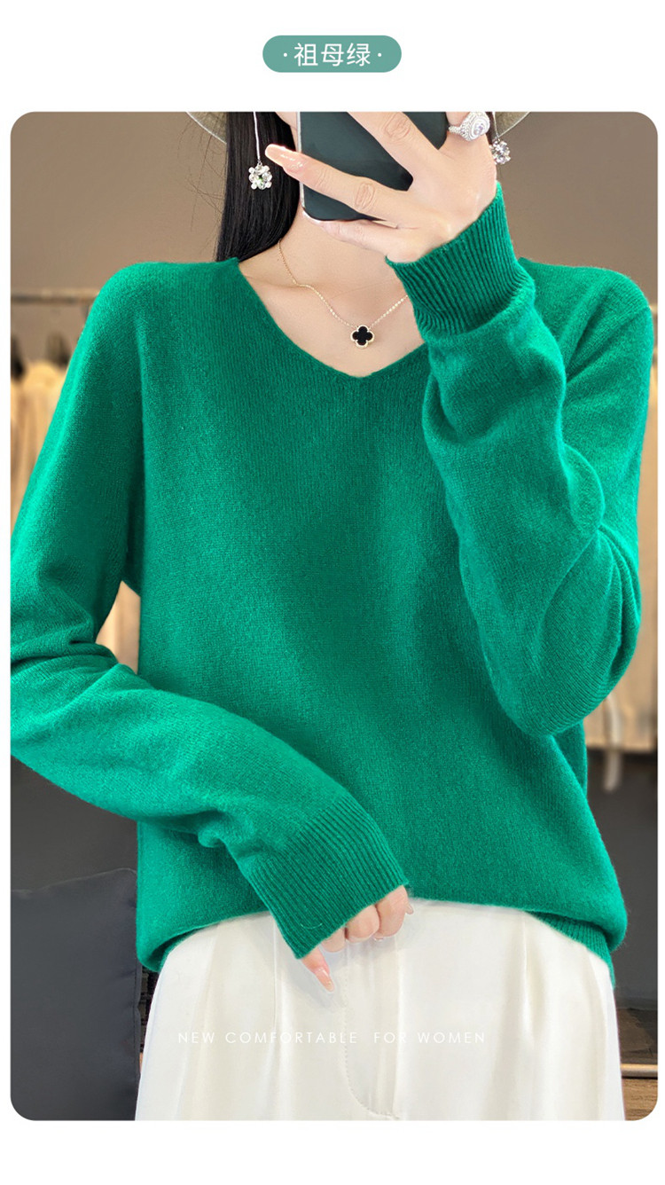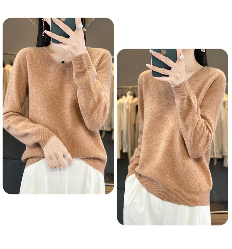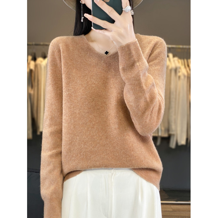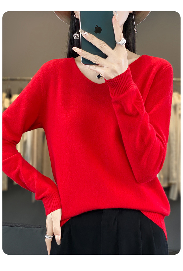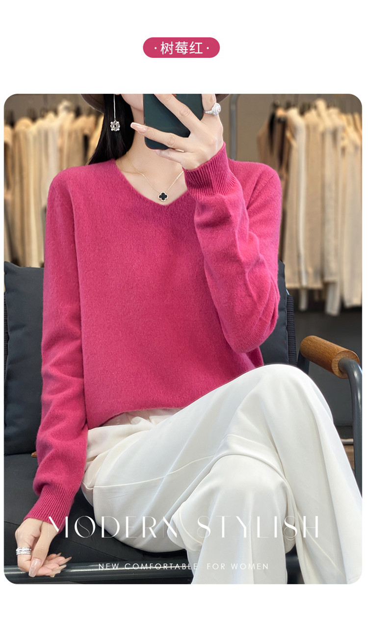 一線成衣100純羊毛V領打底衫女2024新款秋冬內搭寬松顯瘦針織毛衣