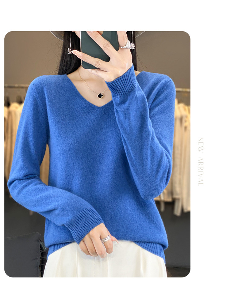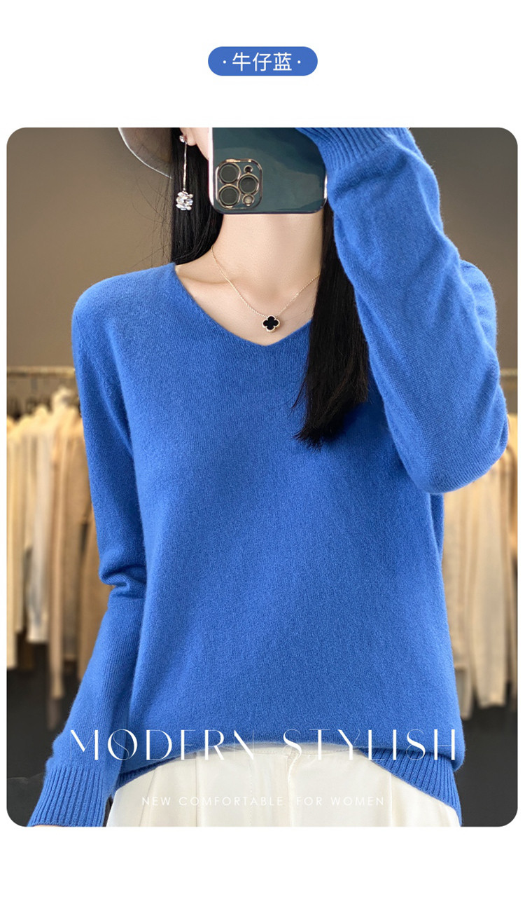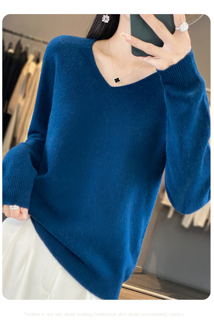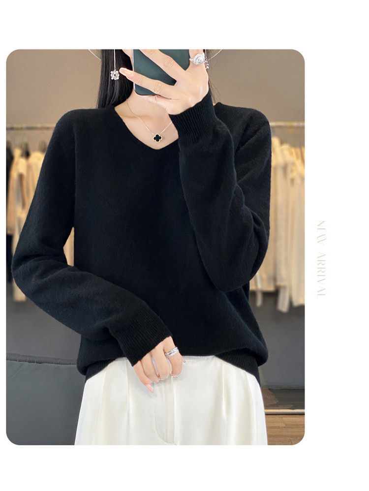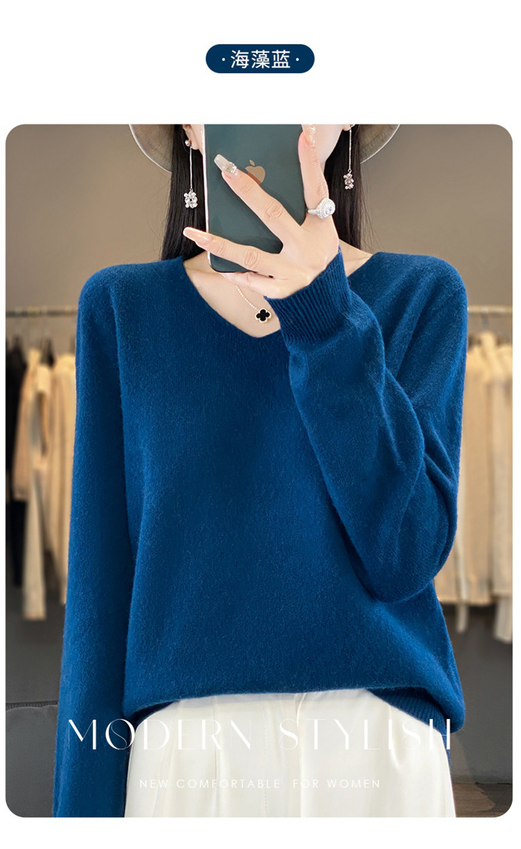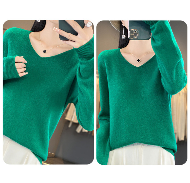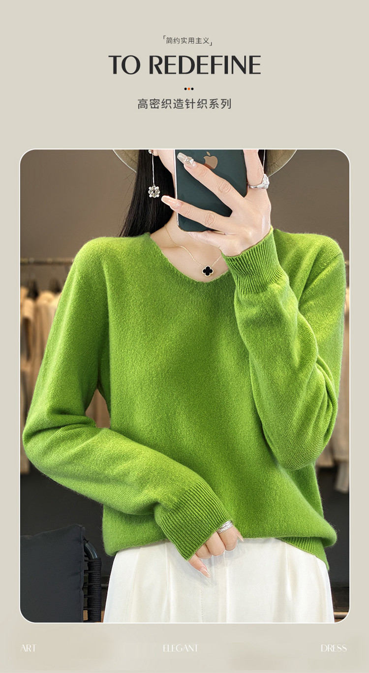 一線成衣100純羊毛V領打底衫女2024新款秋冬內搭寬松顯瘦針織毛衣