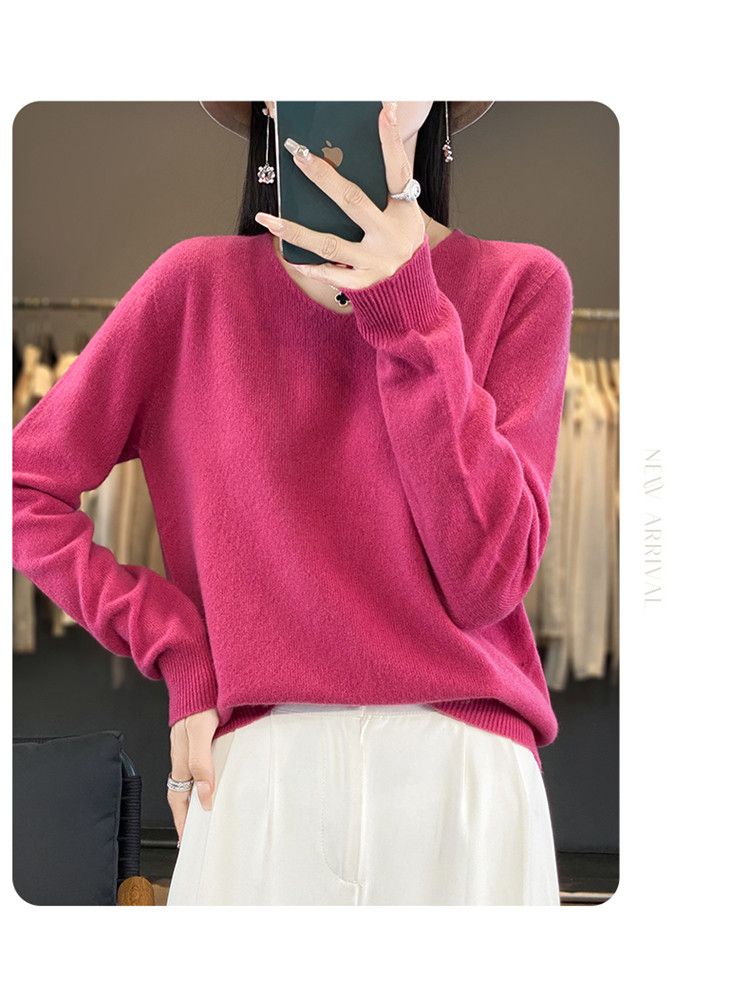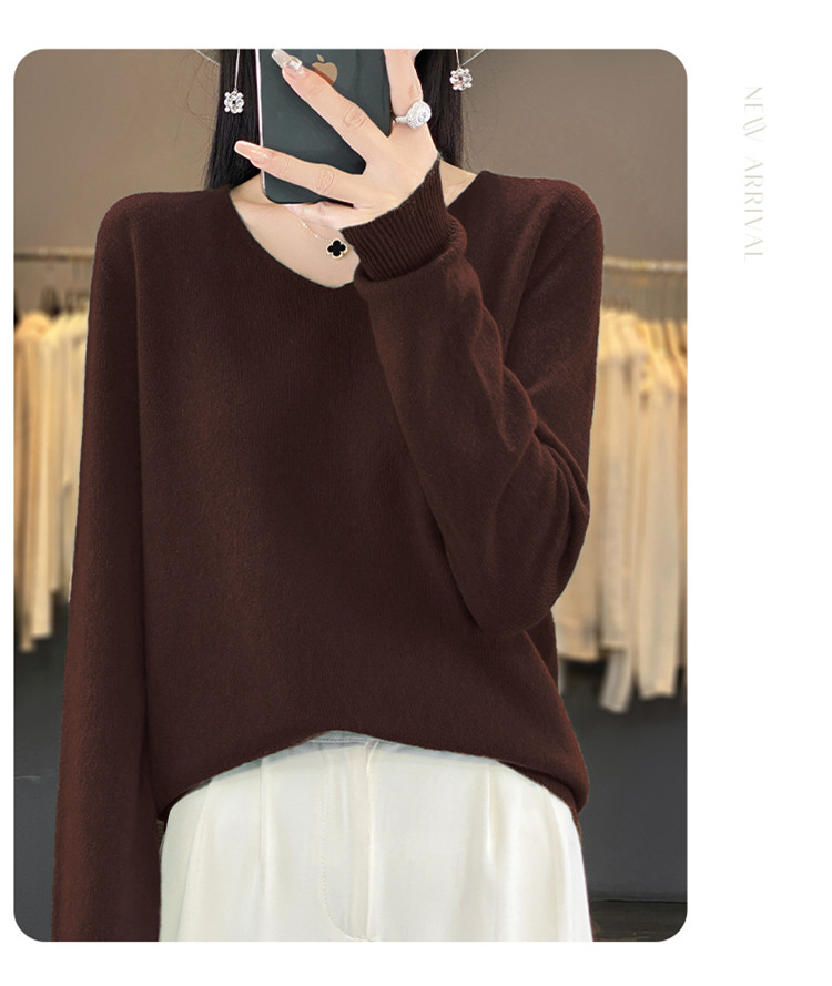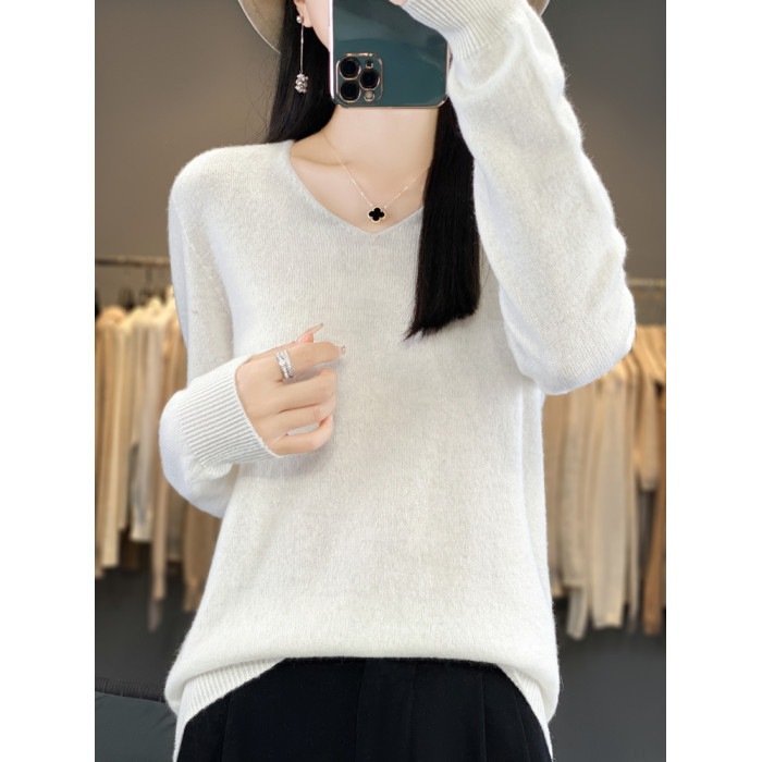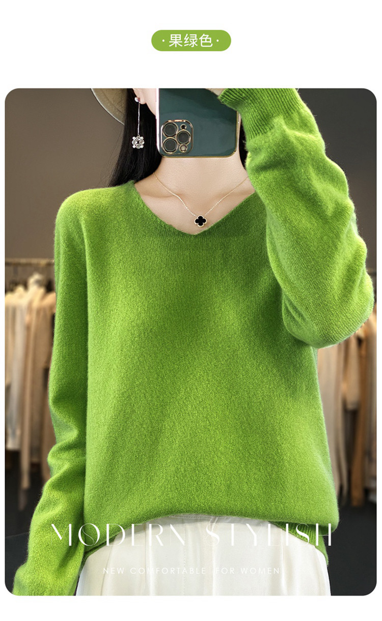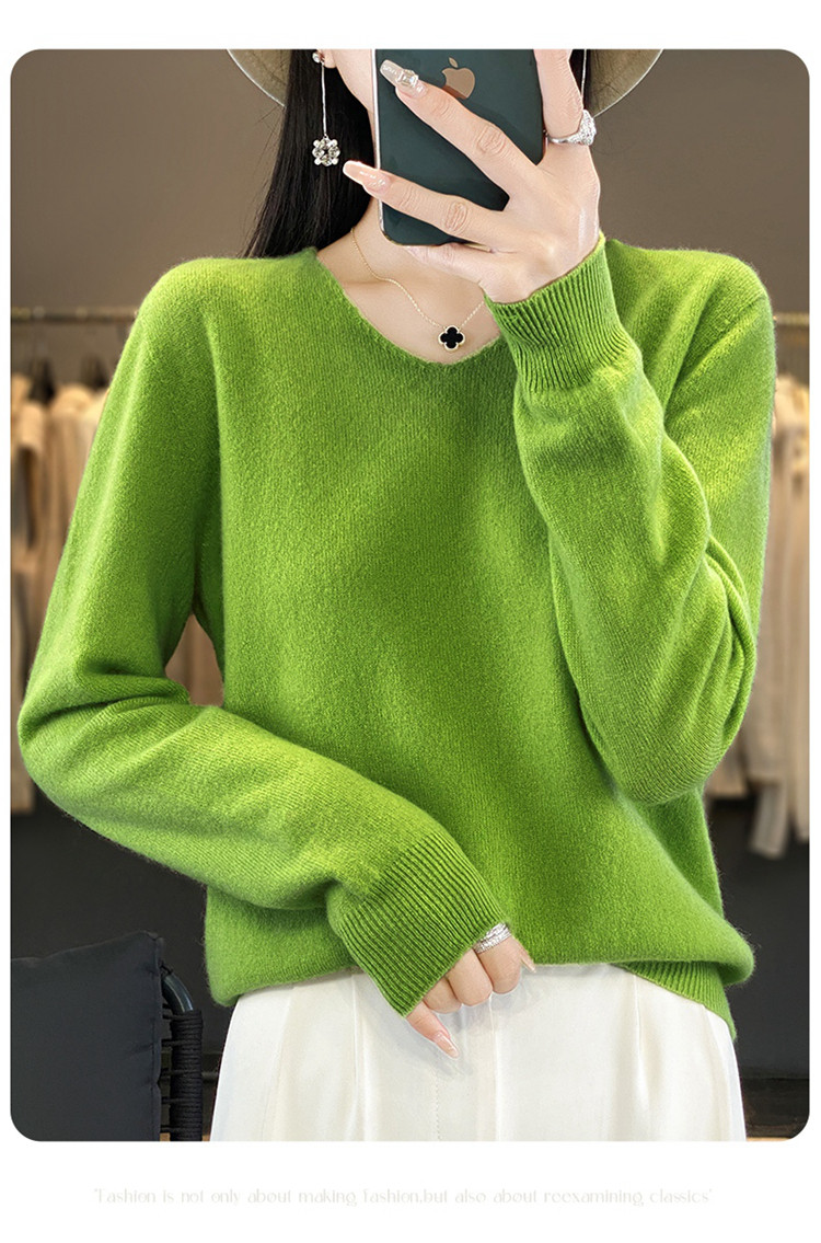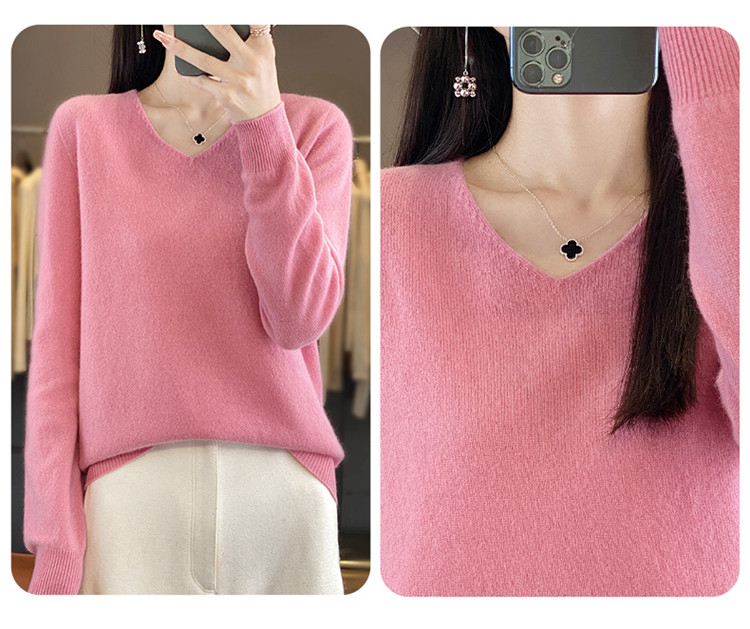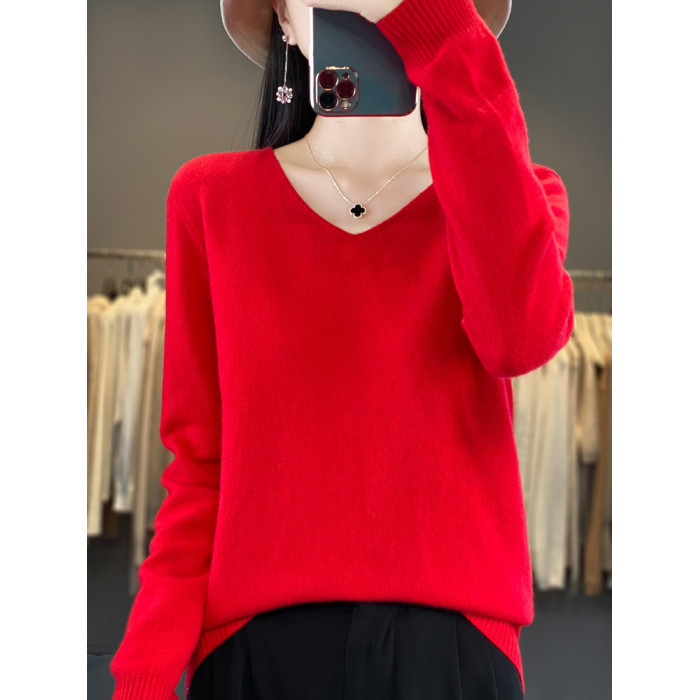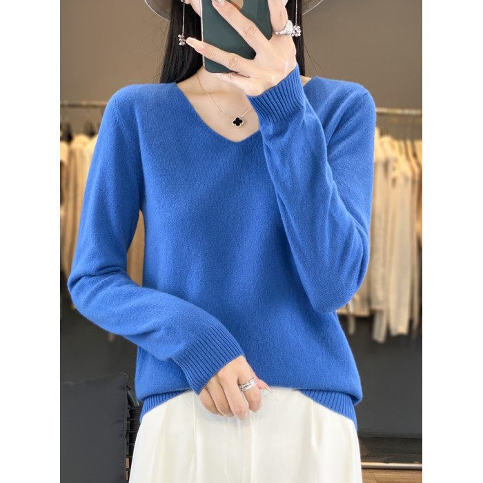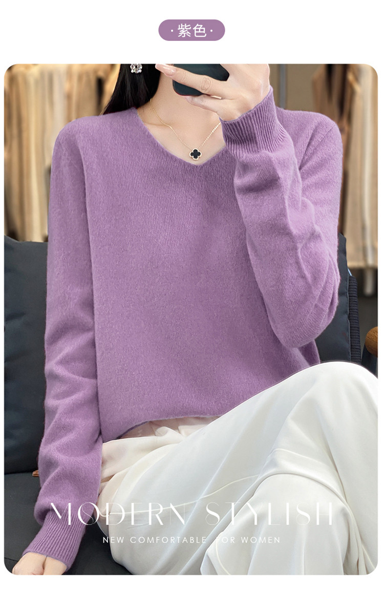 一線成衣100純羊毛V領打底衫女2024新款秋冬內搭寬松顯瘦針織毛衣