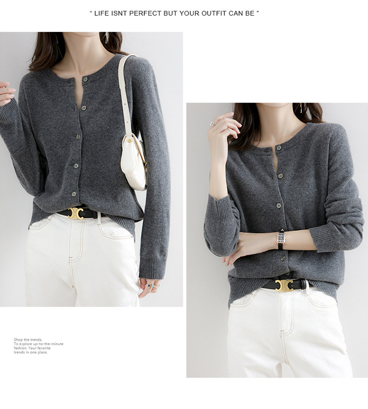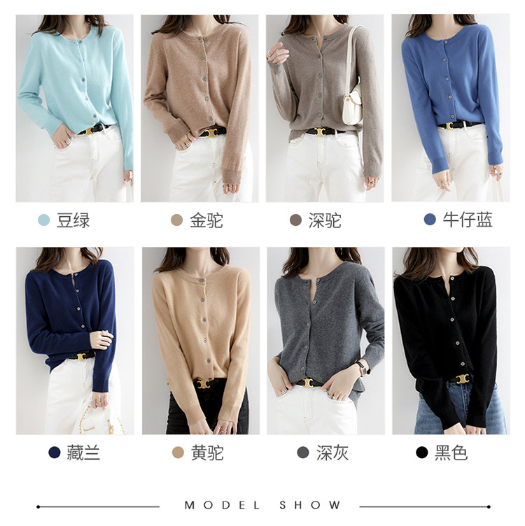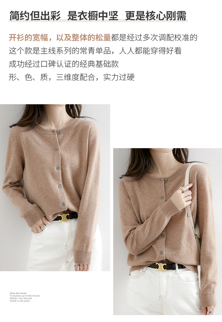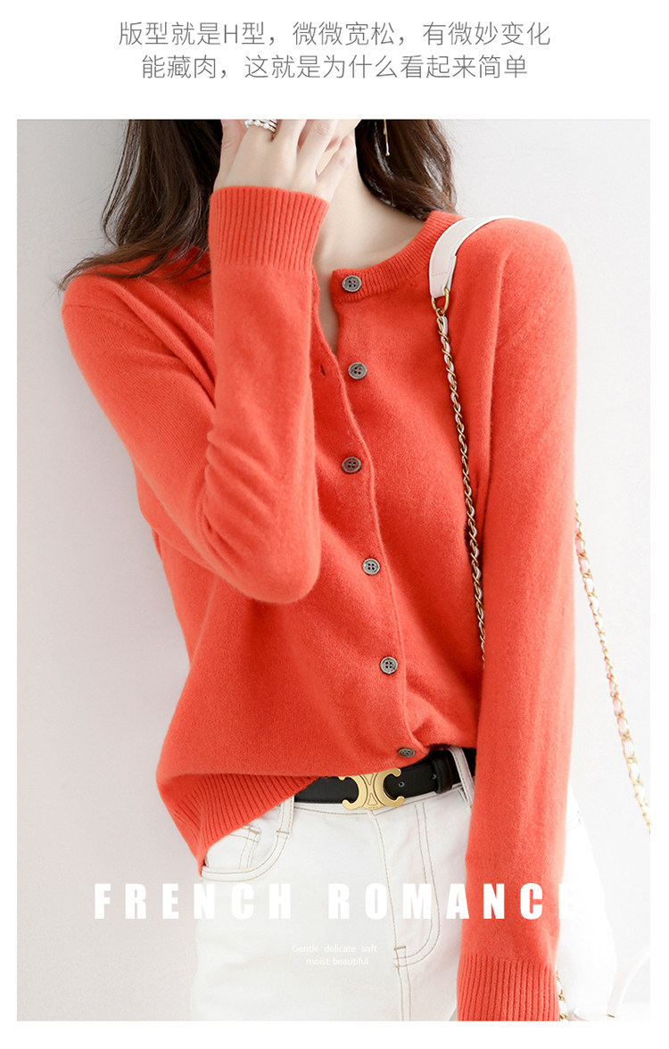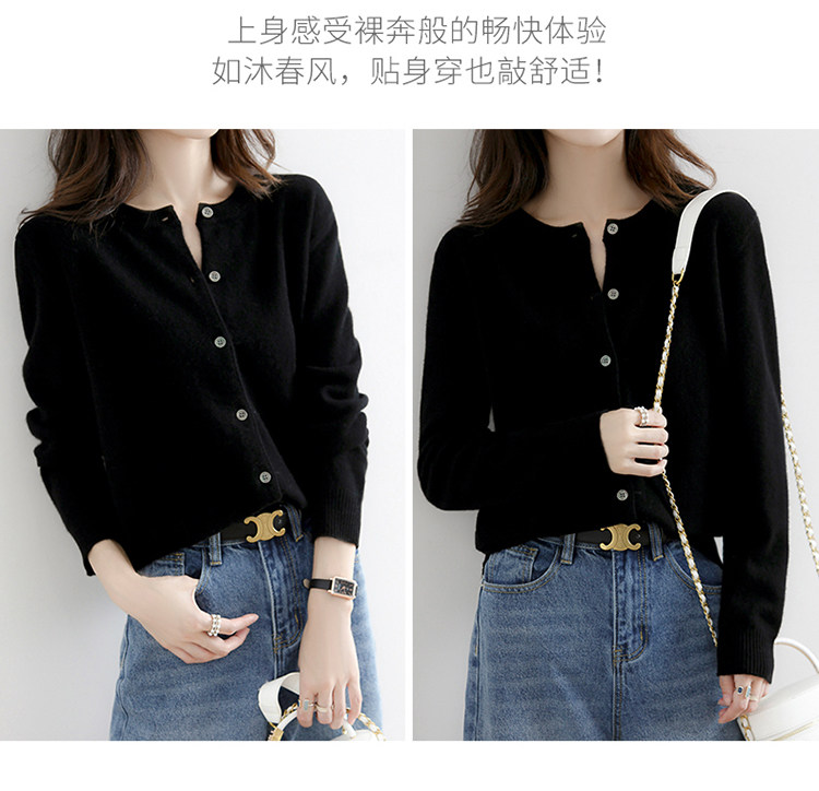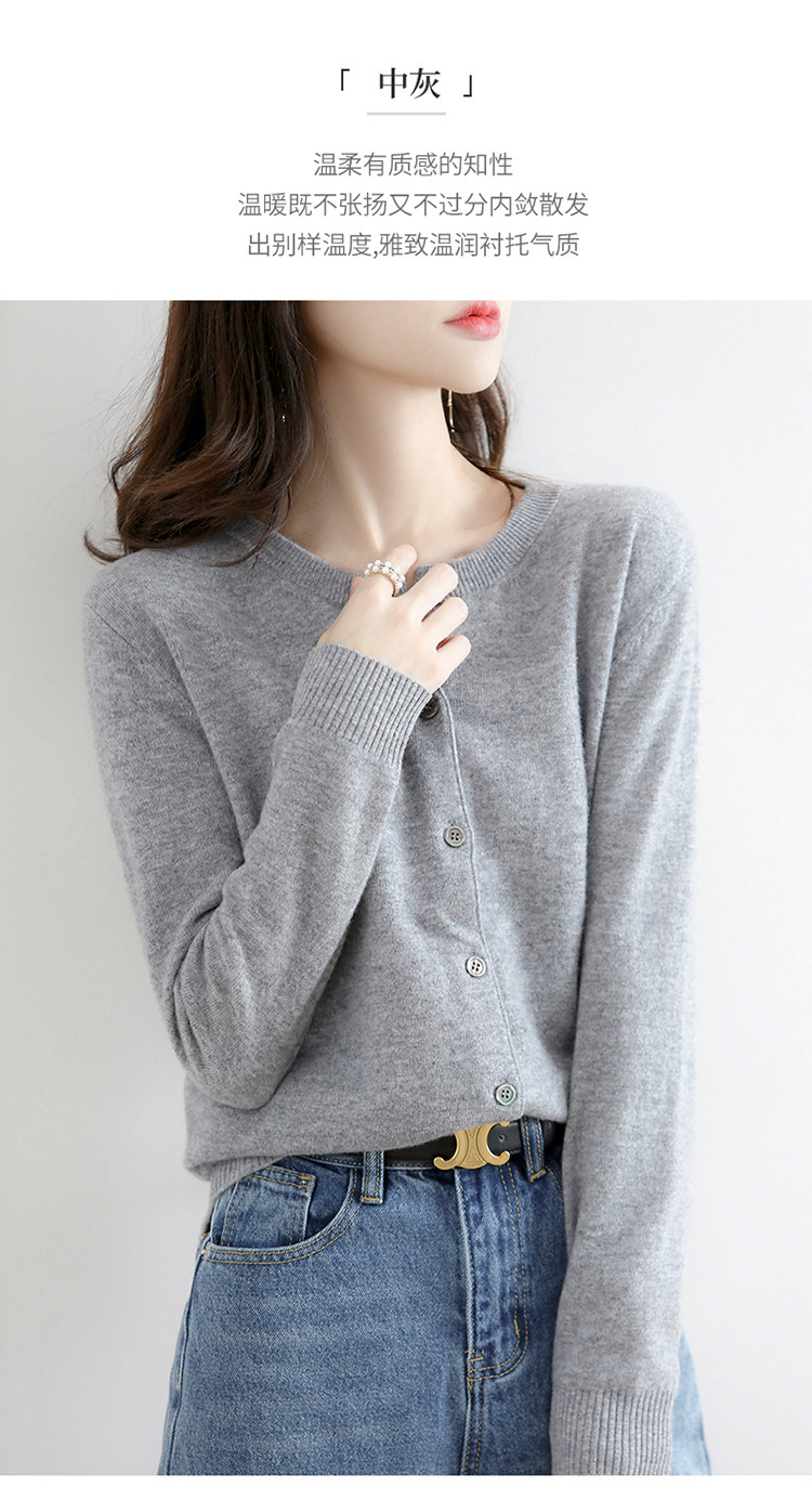 圓領羊毛針織開衫女薄款春秋新款寬松毛衣外套外搭小香風上衣夏