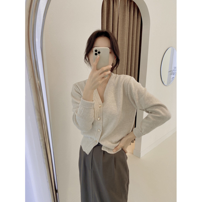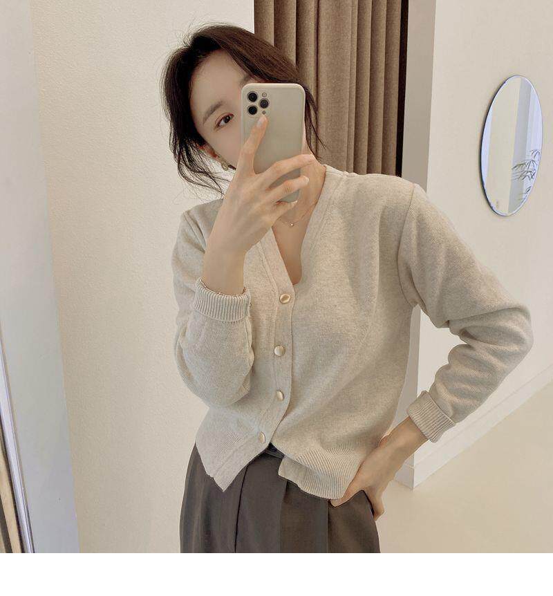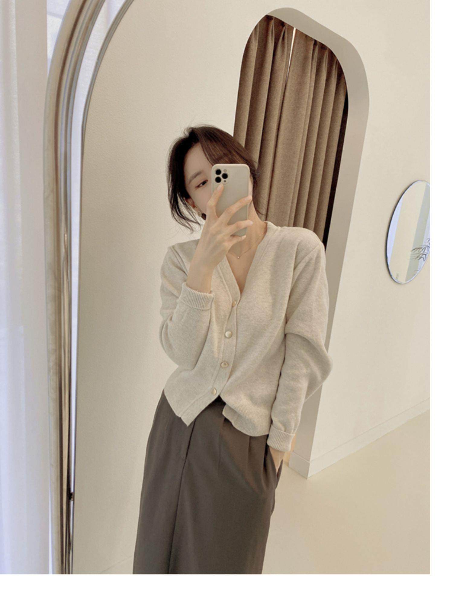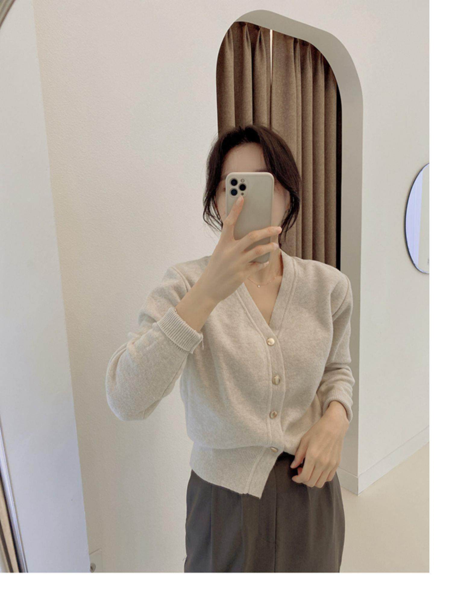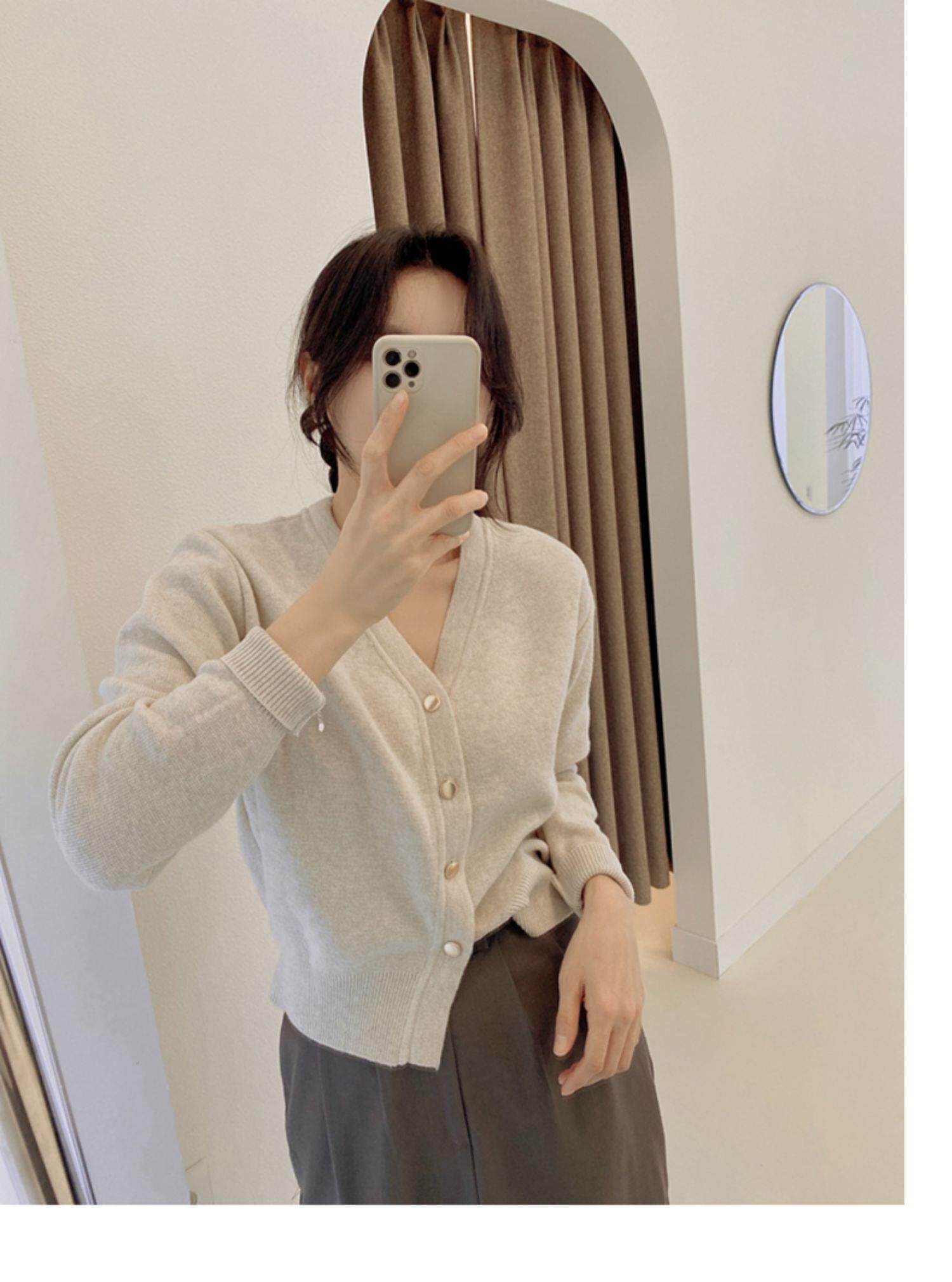 新款v領針織百搭開衫女羊毛慵懶風設計感毛衣外套內搭打底衫上衣