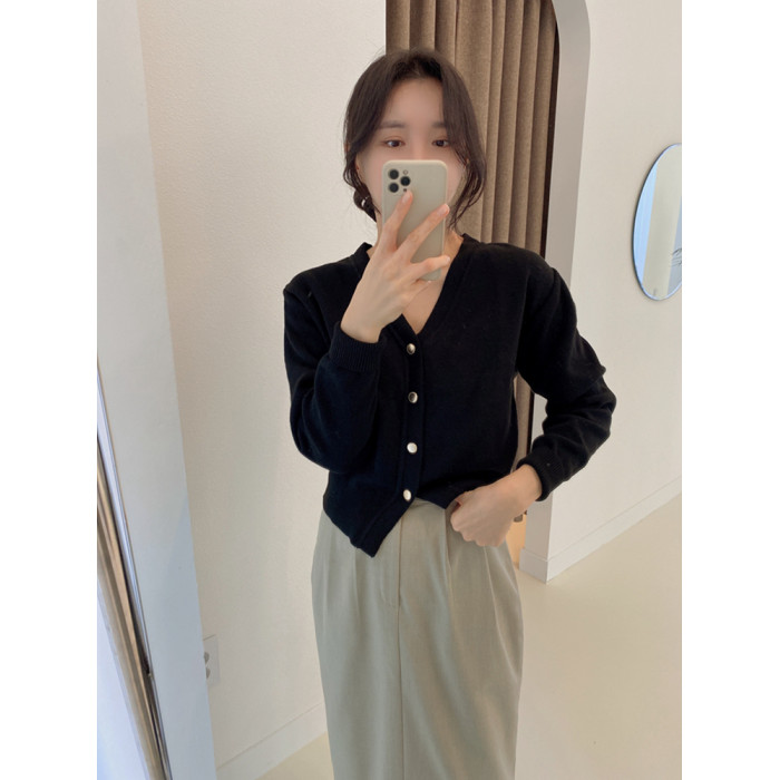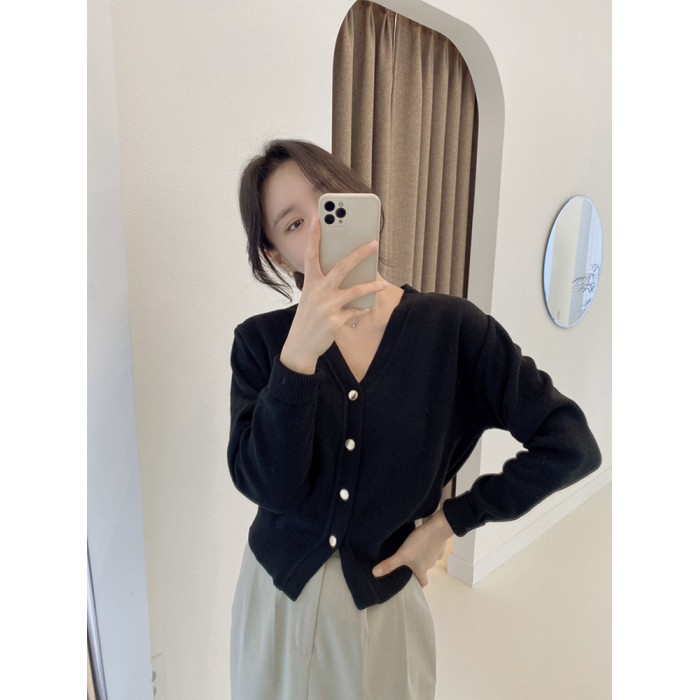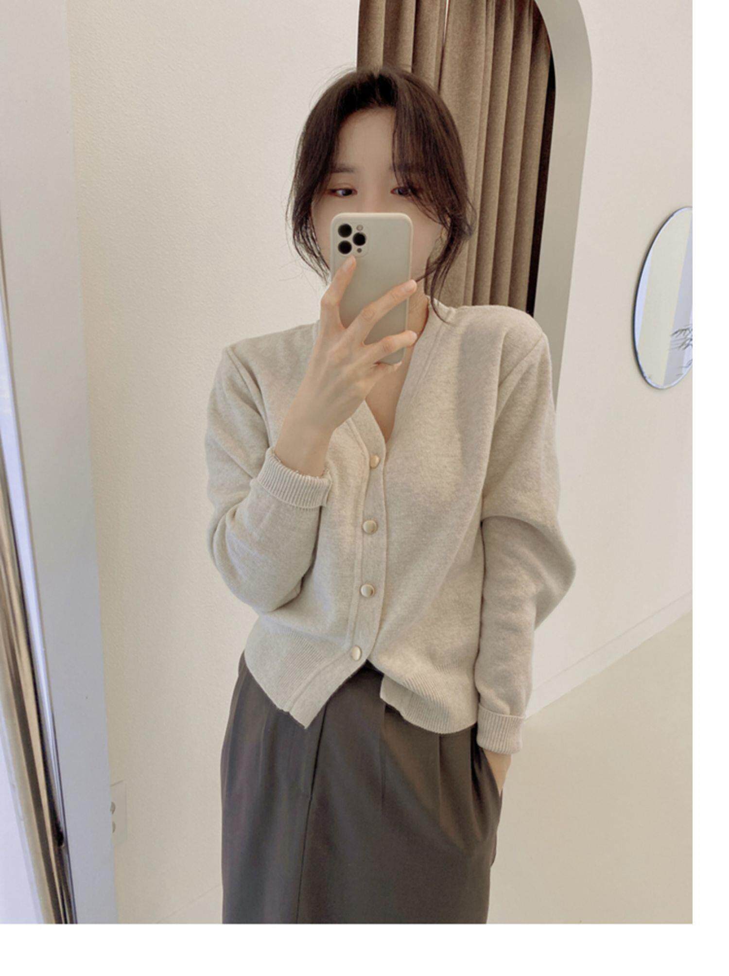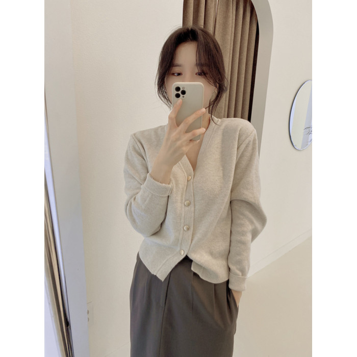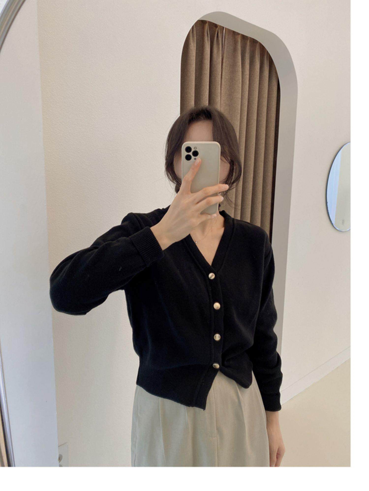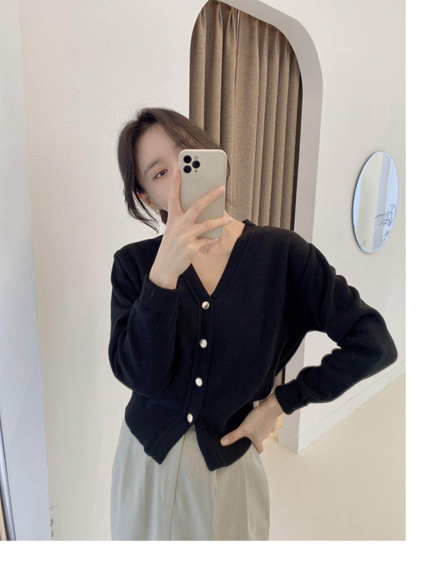 新款v領針織百搭開衫女羊毛慵懶風設計感毛衣外套內搭打底衫上衣