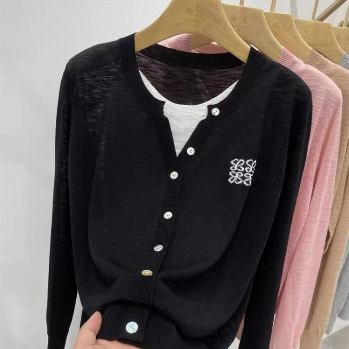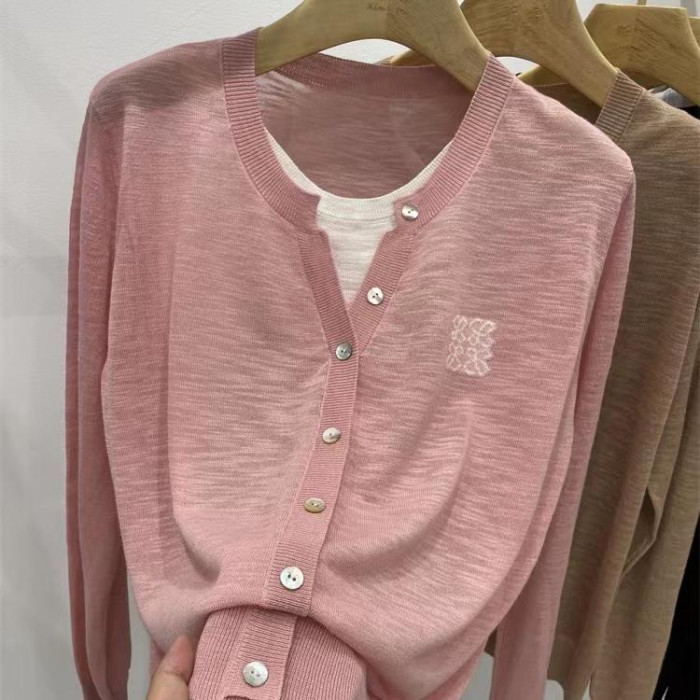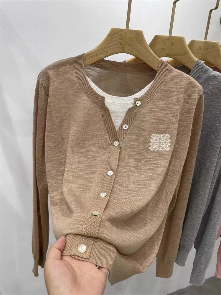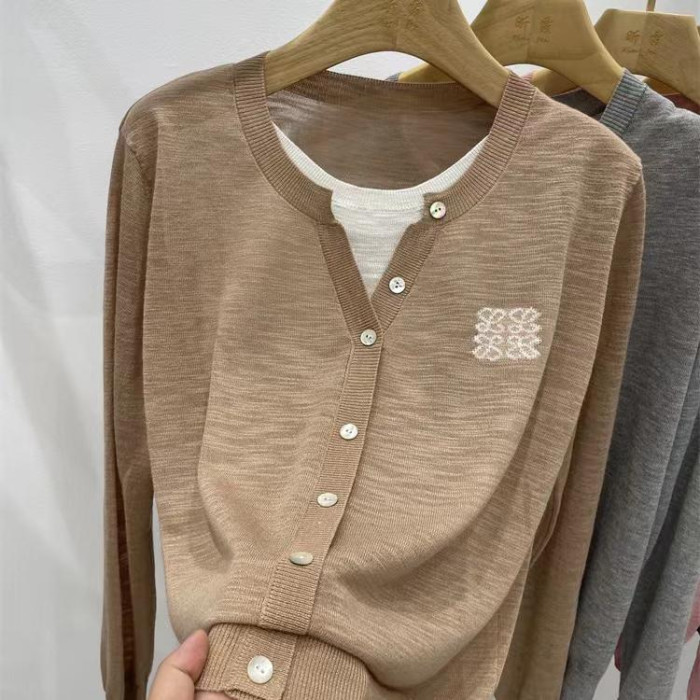 歐貨假兩件精仿羊毛長袖針織衫女秋冬新款寬松休閒大碼刺綉上衣潮