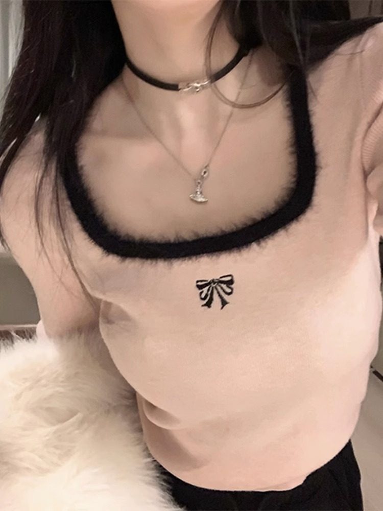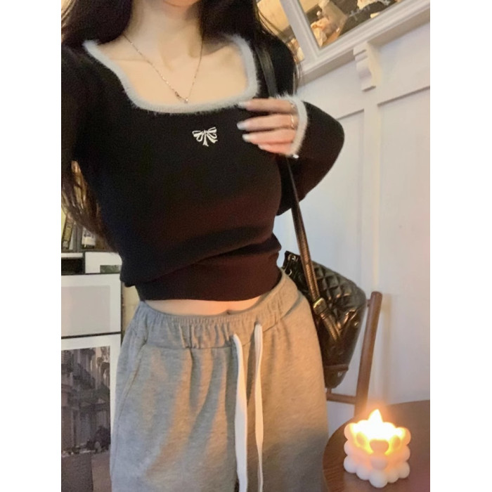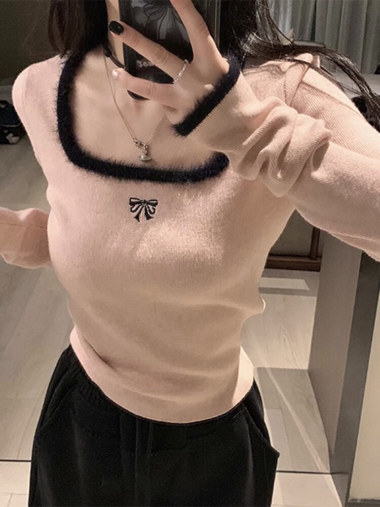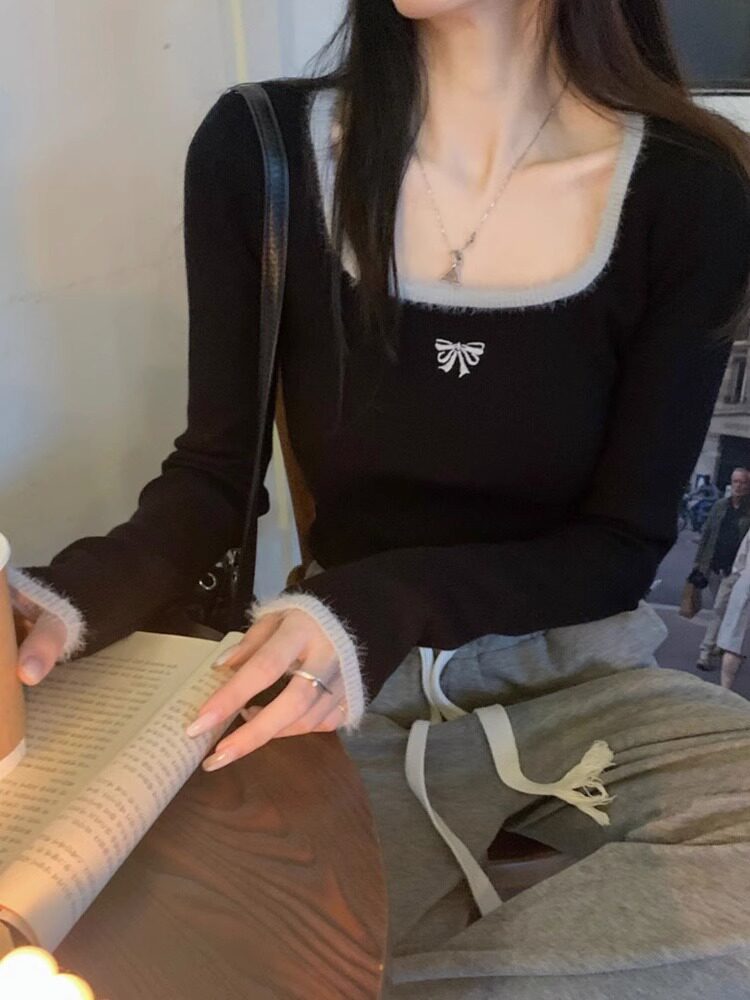 高級感純欲風方領內搭毛衣女秋冬2025新款秋裝修身打底衫針織上衣