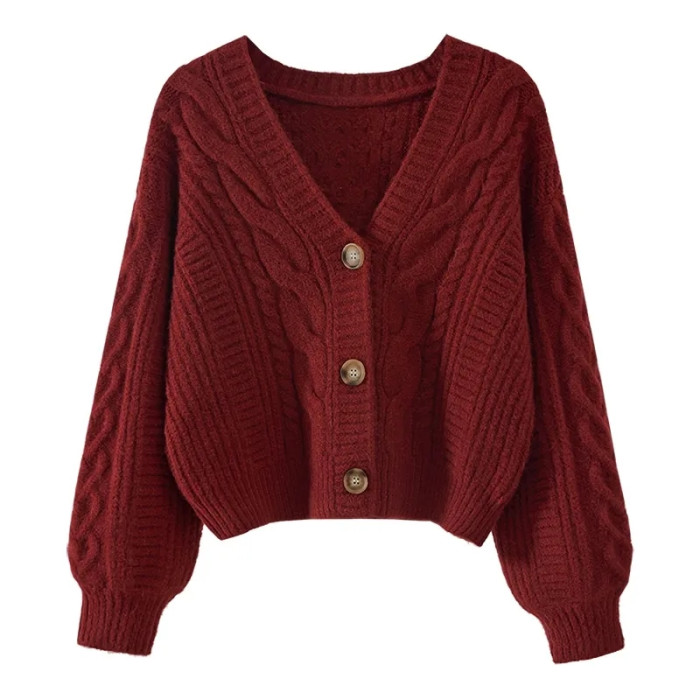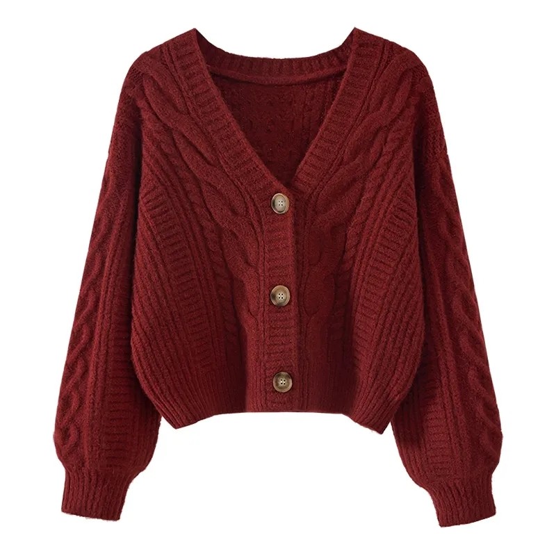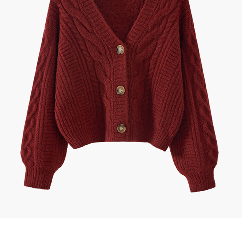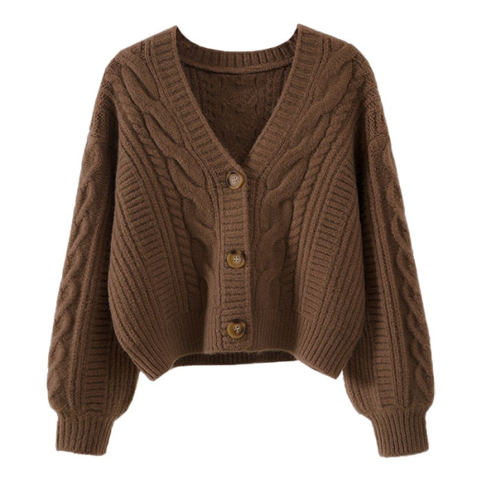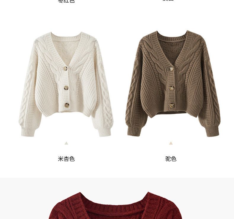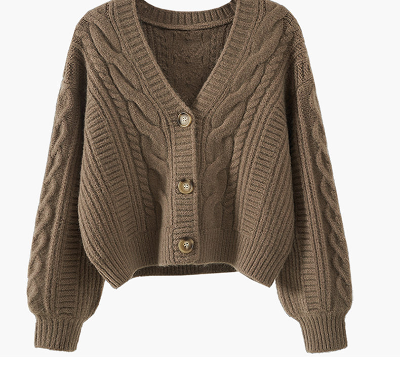 溫柔系穿搭v領麻花毛衣女秋冬裝小個子慵懶風針織開衫短外套上衣