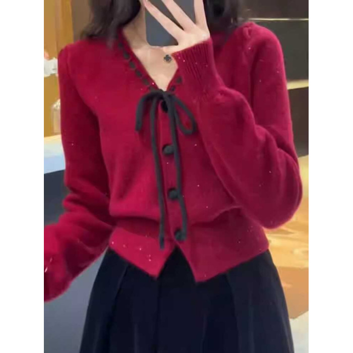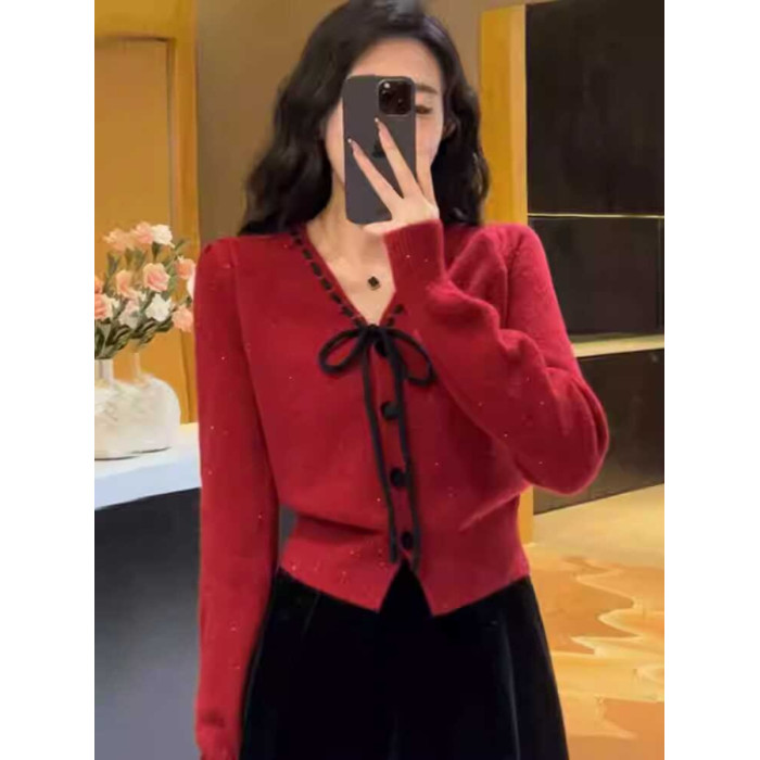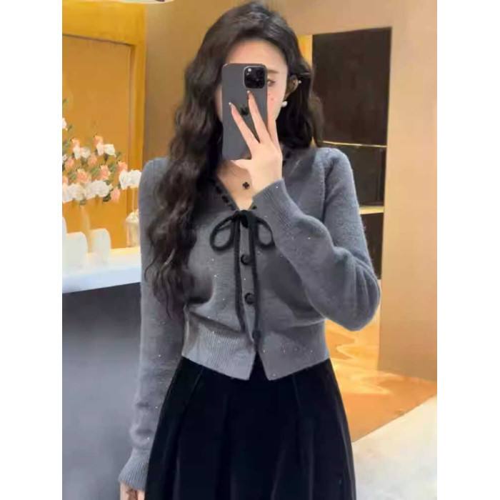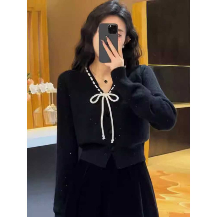 早秋小香風針織衫短款毛衣女秋裝女款2025年新款上衣外搭針織開衫