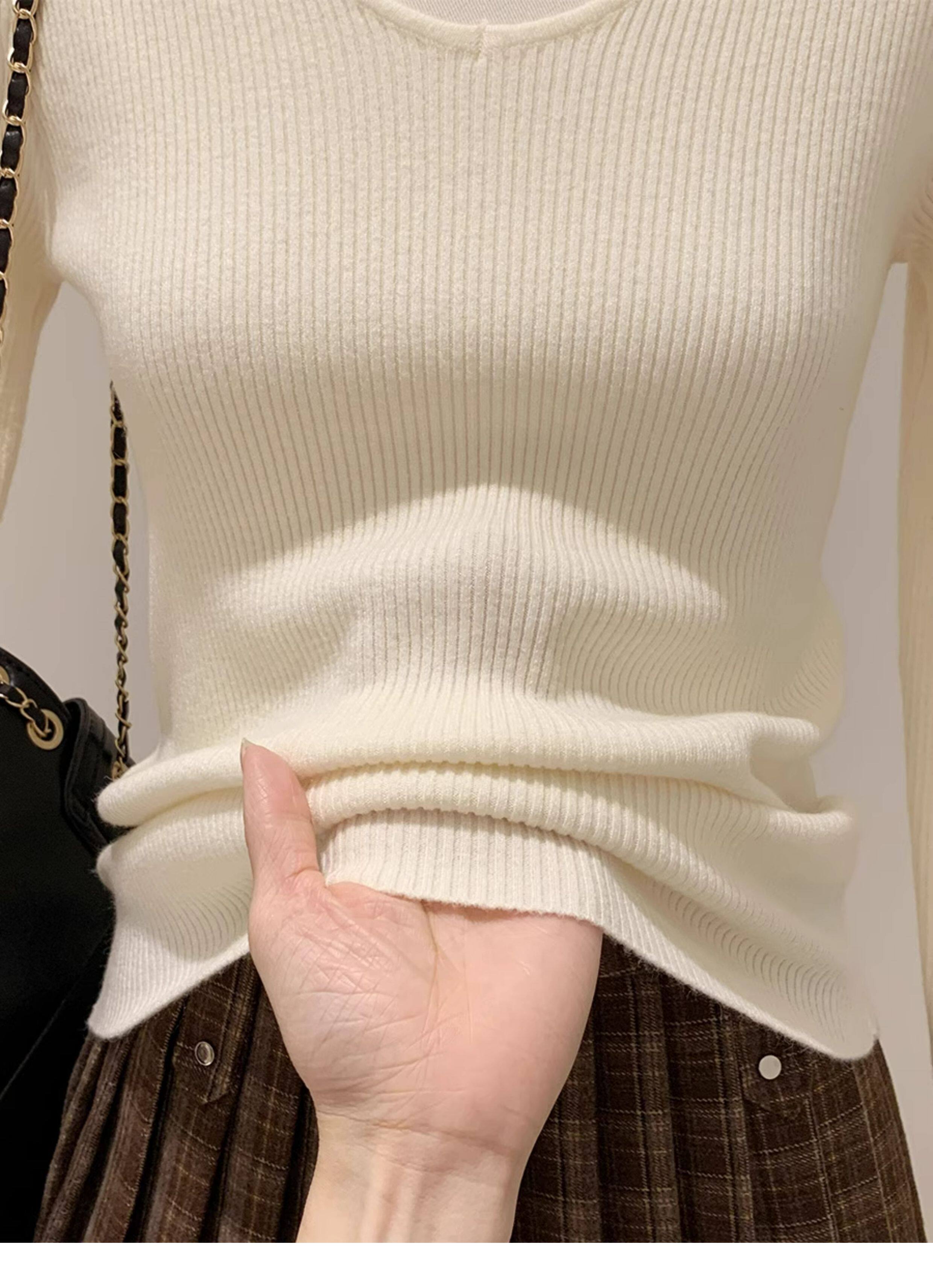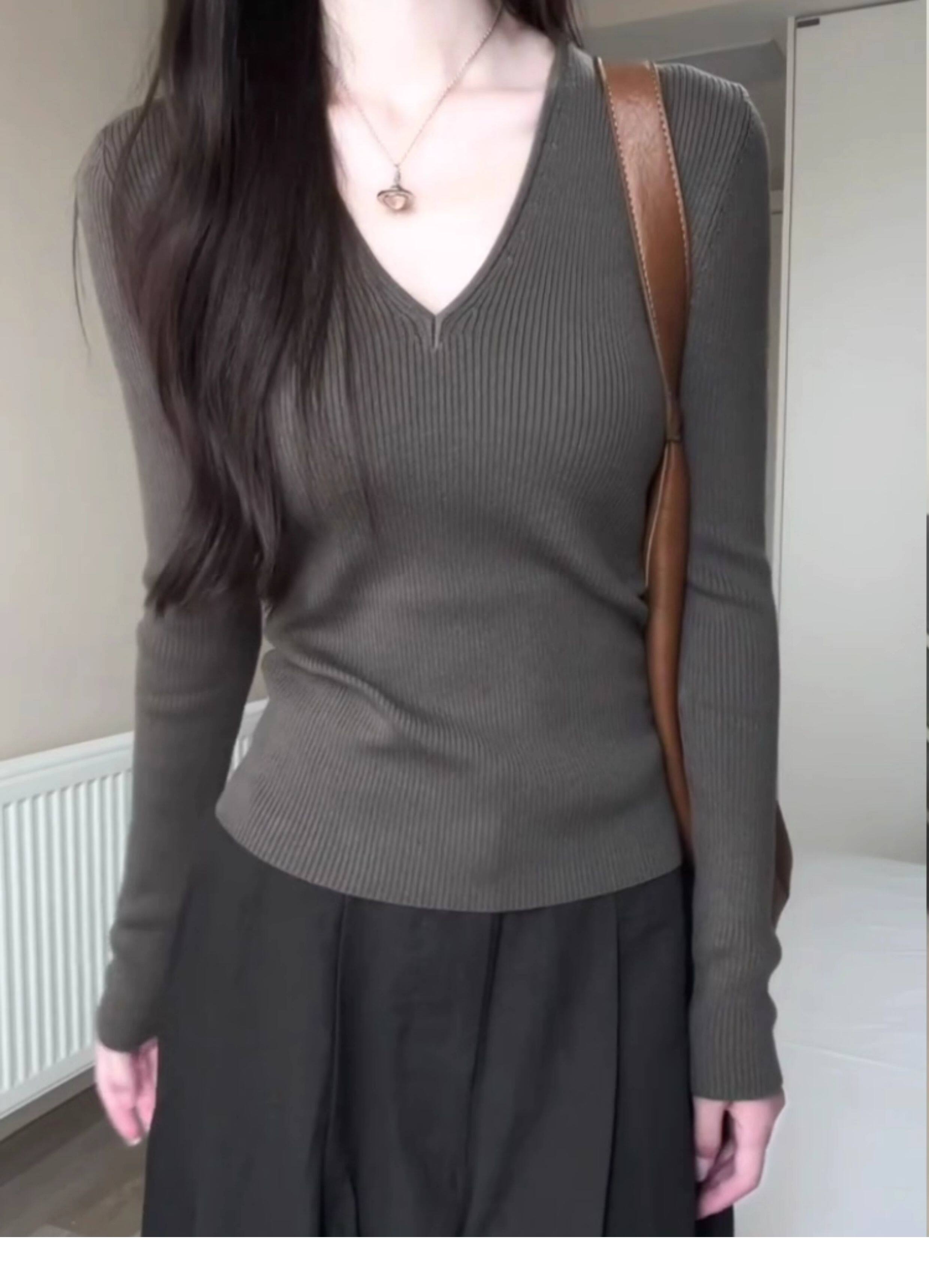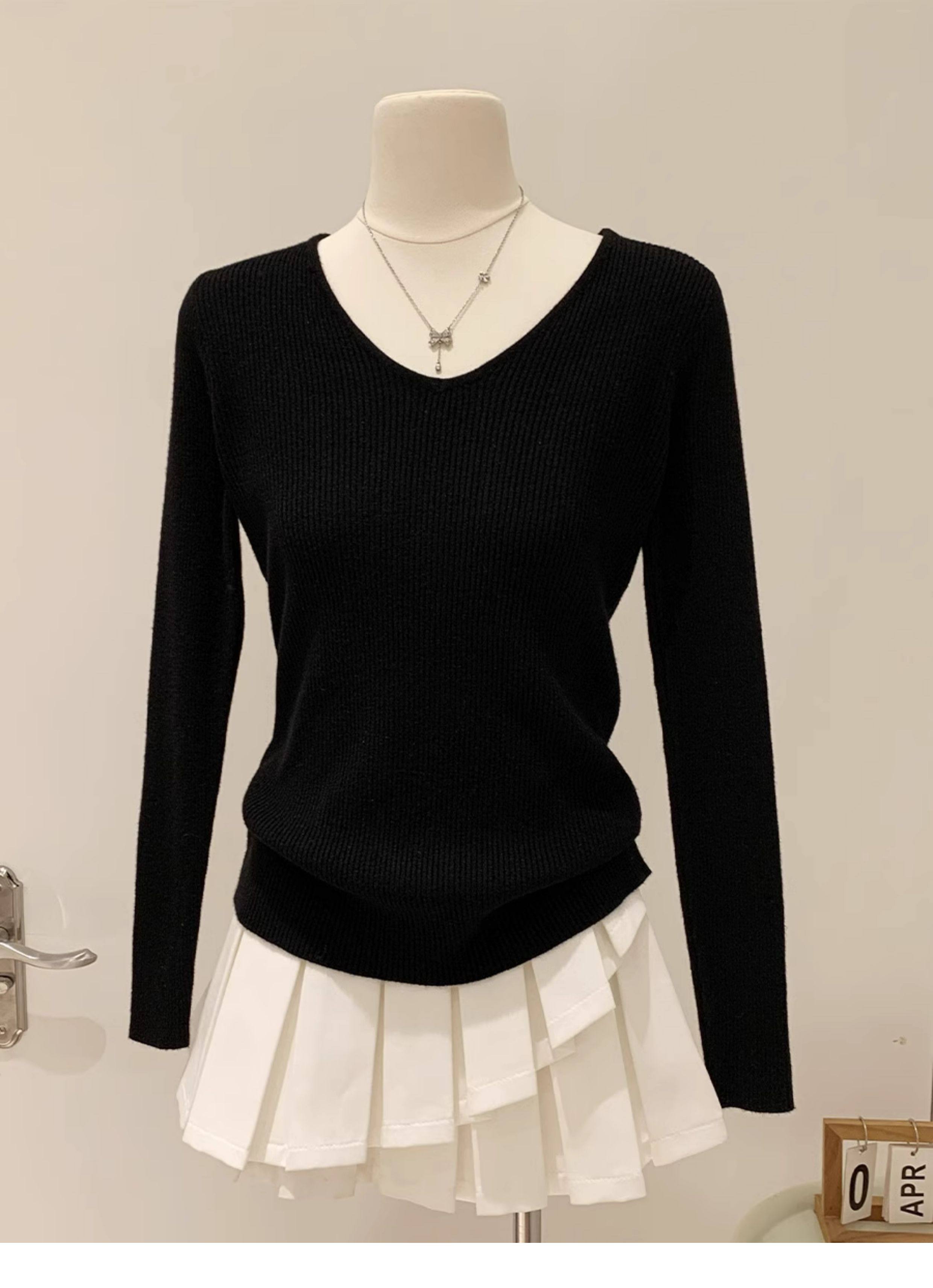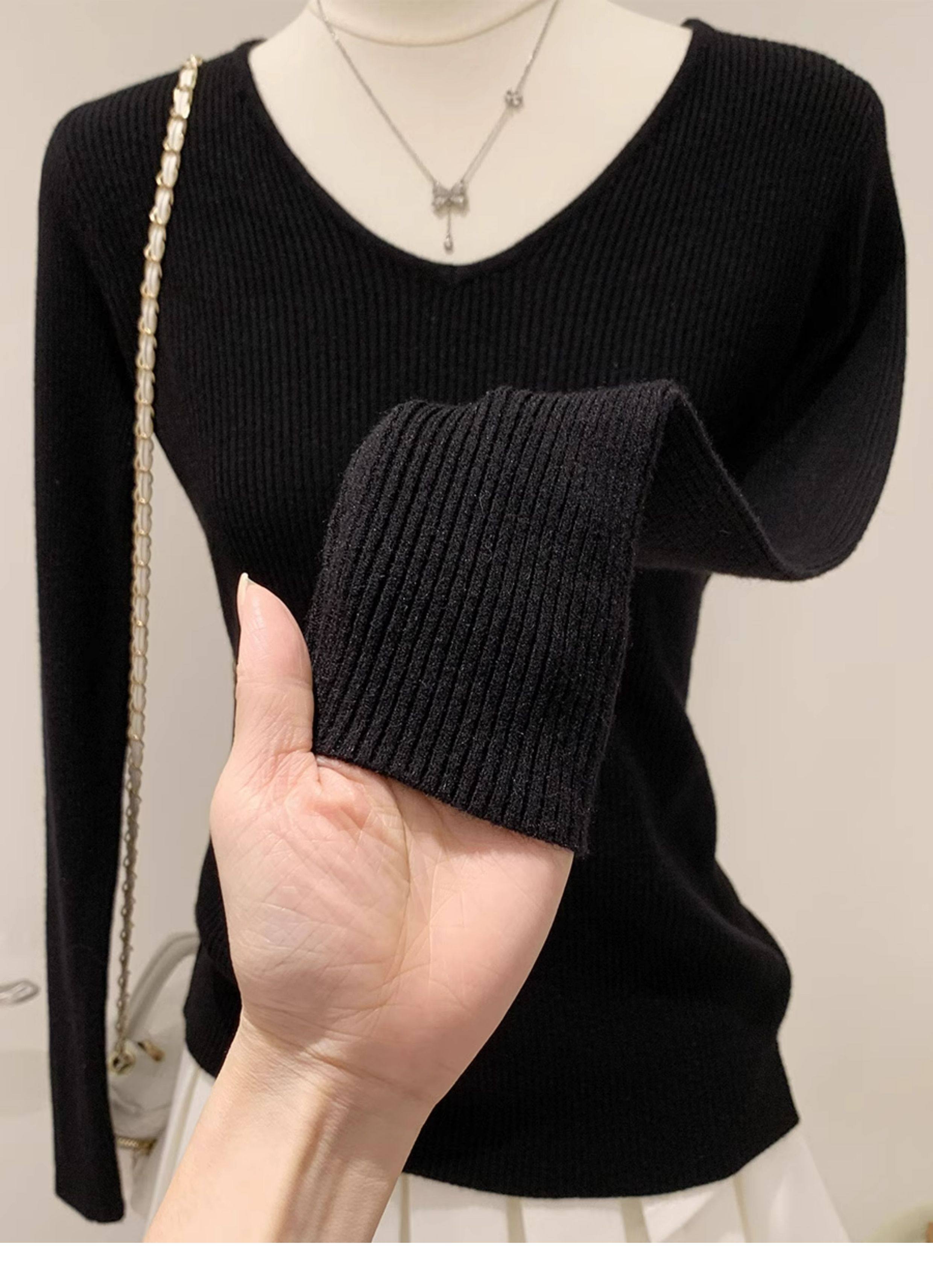 韓系chicV領露鎖骨長袖針織衫女秋裝新款修身顯瘦內搭打底衫上衣