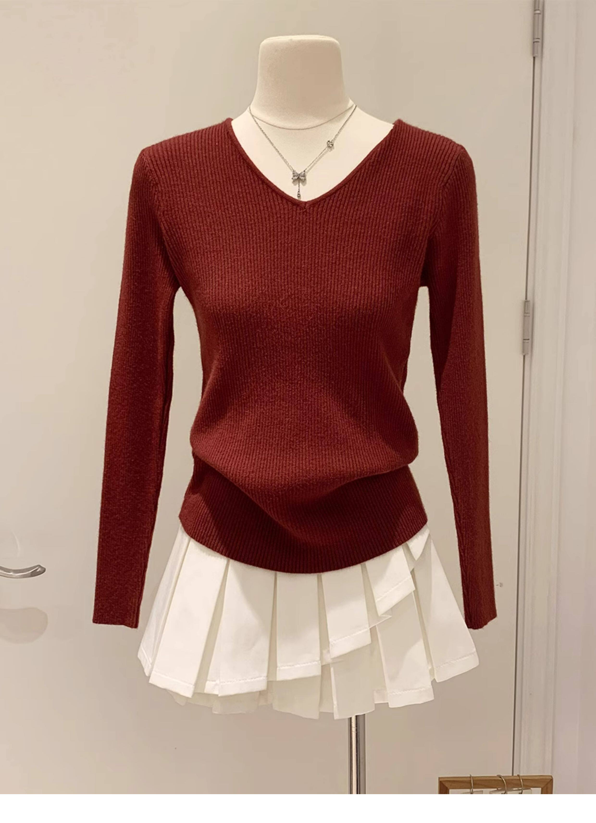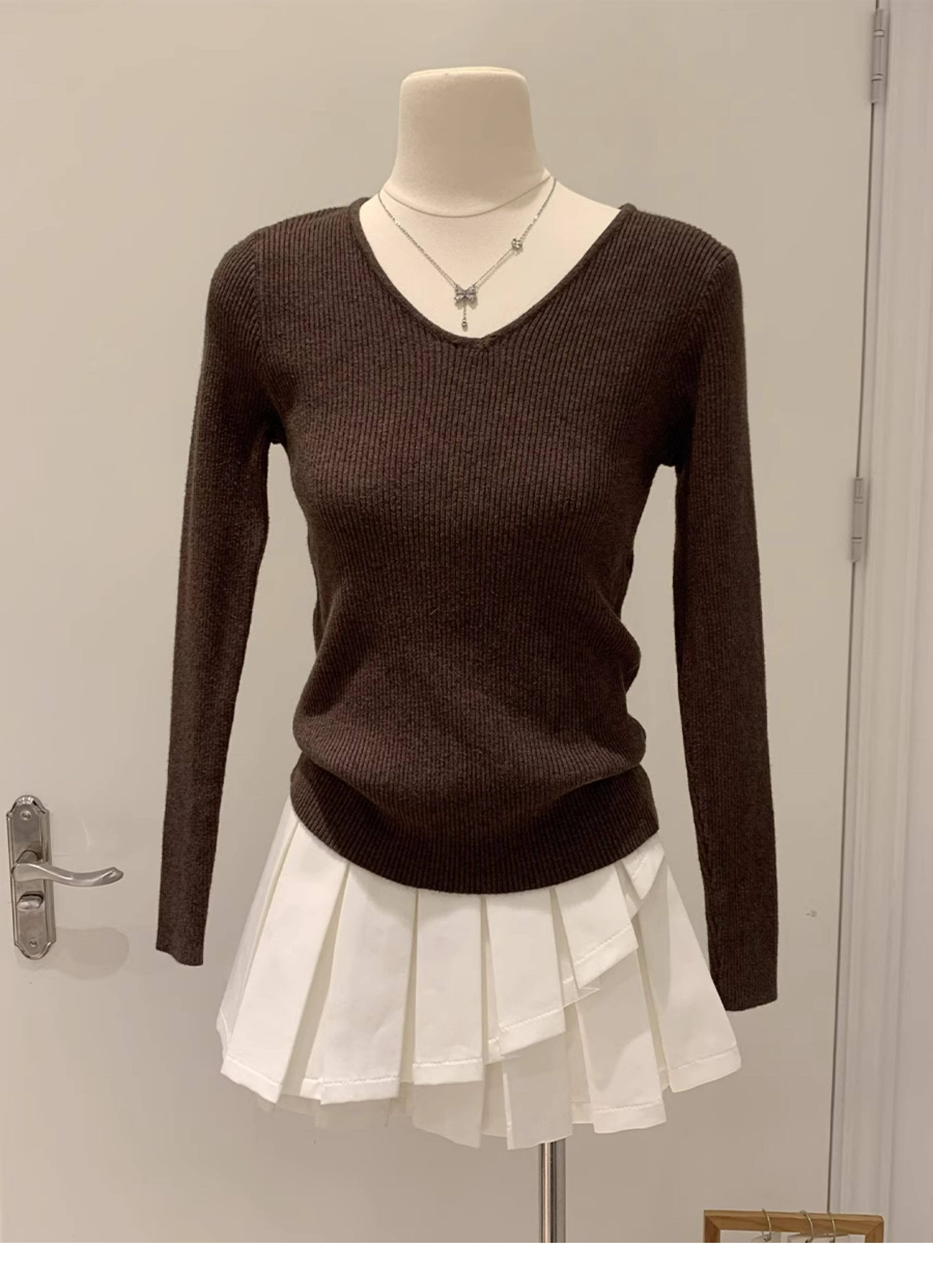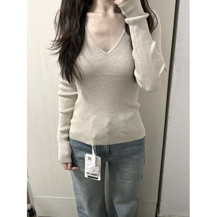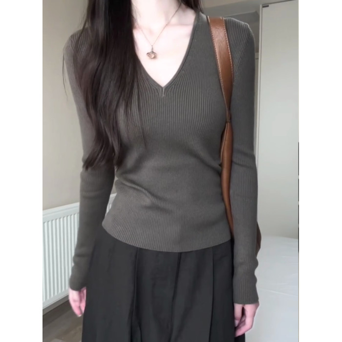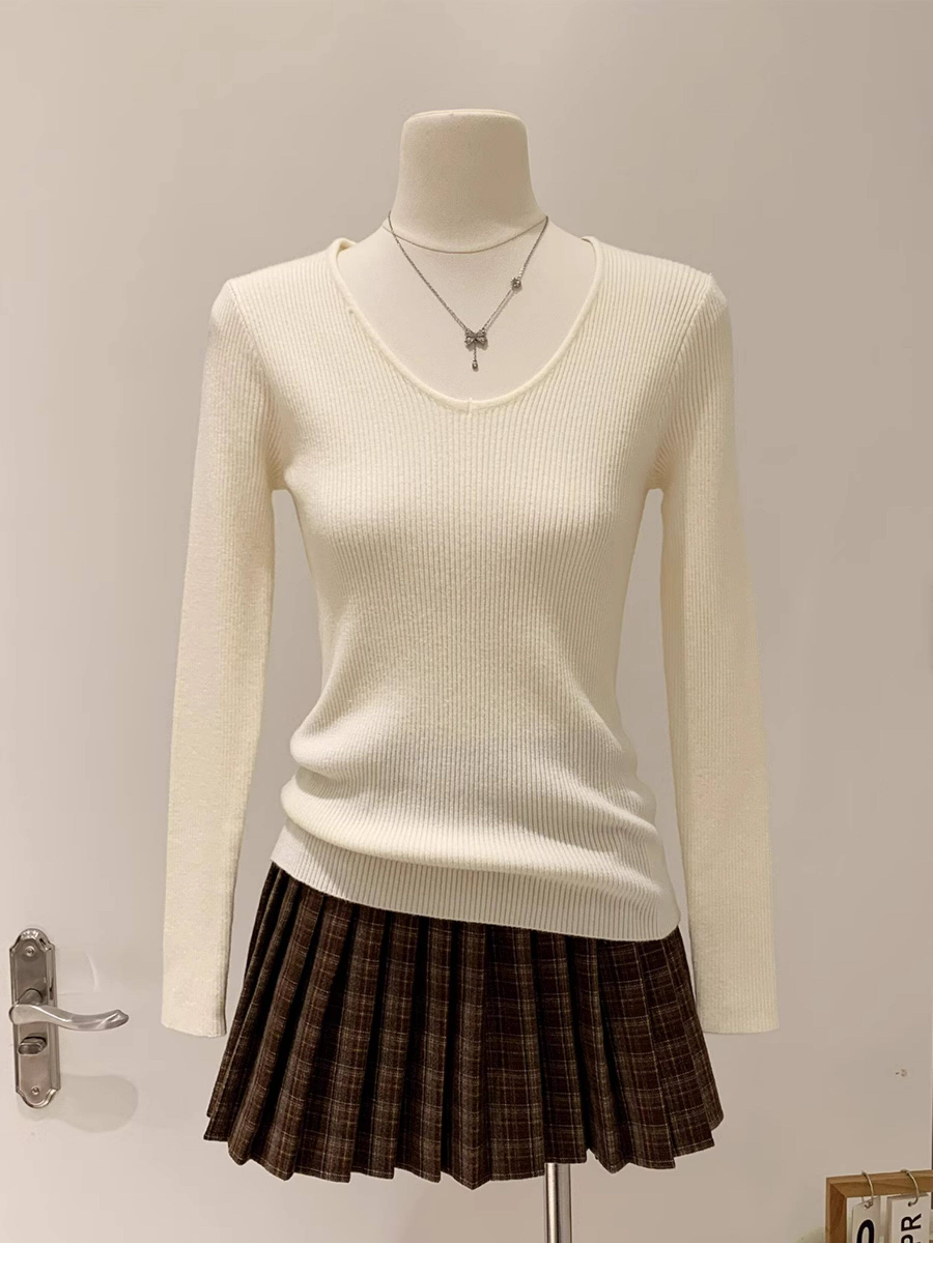 韓系chicV領露鎖骨長袖針織衫女秋裝新款修身顯瘦內搭打底衫上衣