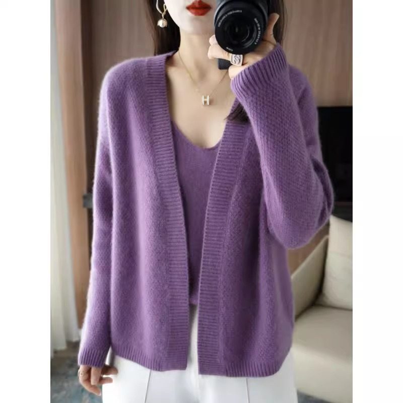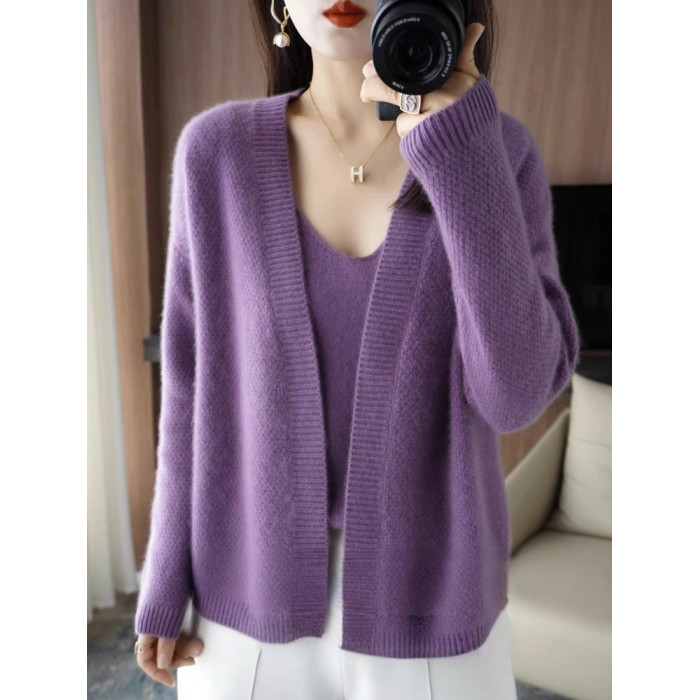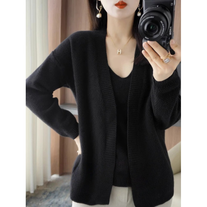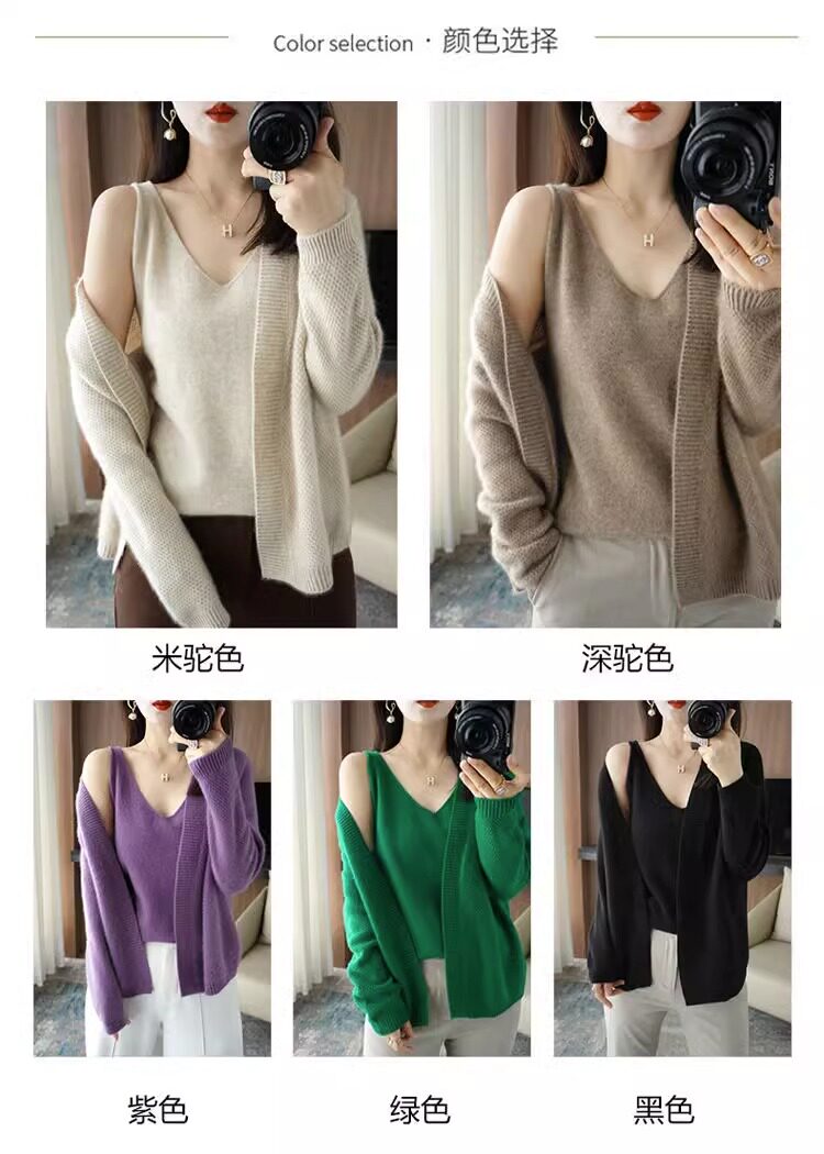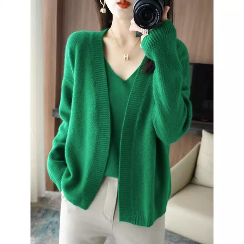 鄂爾多斯市羊毛衫2025純色兩件套針織開衫秋冬寬松長袖毛衣外套女