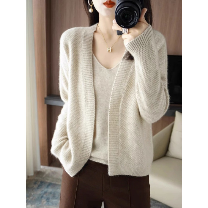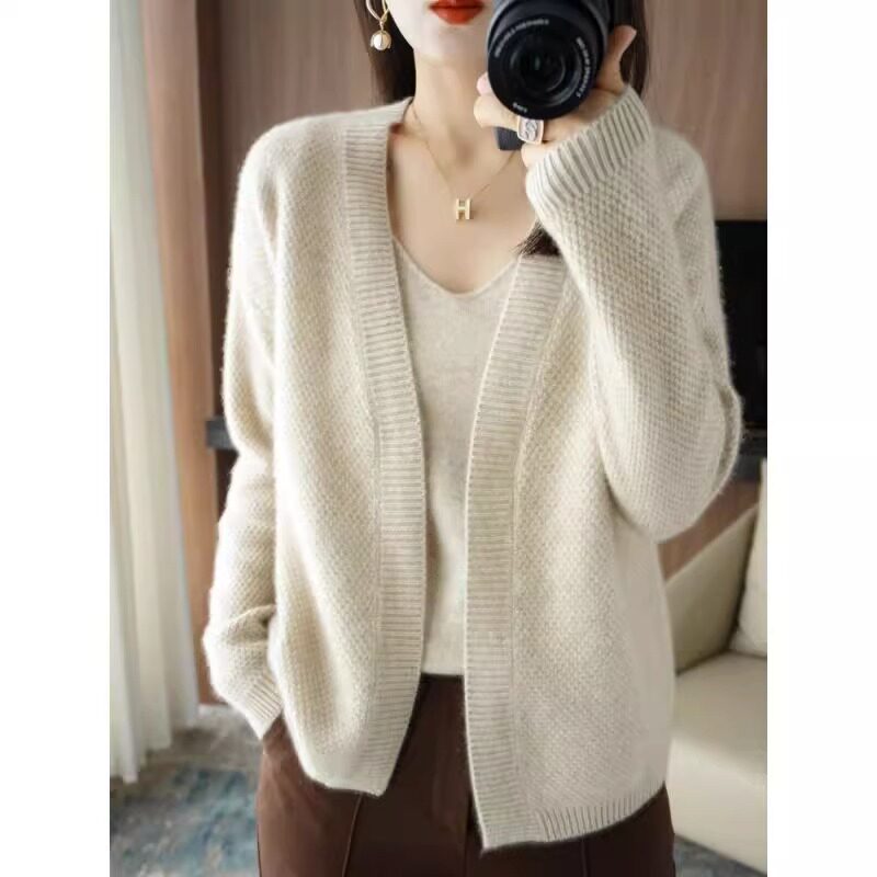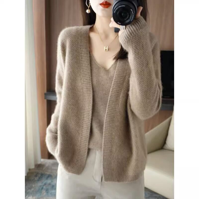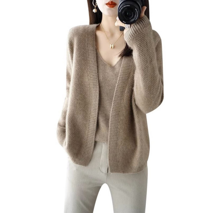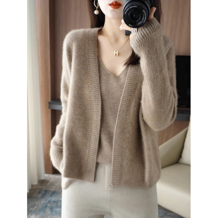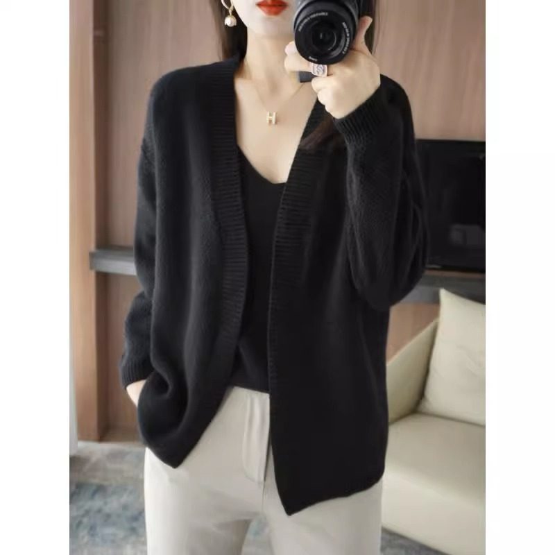 鄂爾多斯市羊毛衫2025純色兩件套針織開衫秋冬寬松長袖毛衣外套女