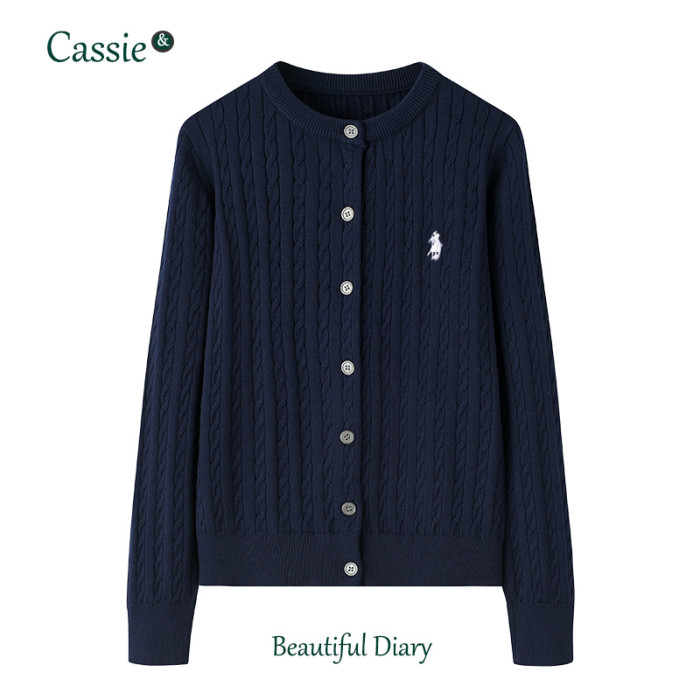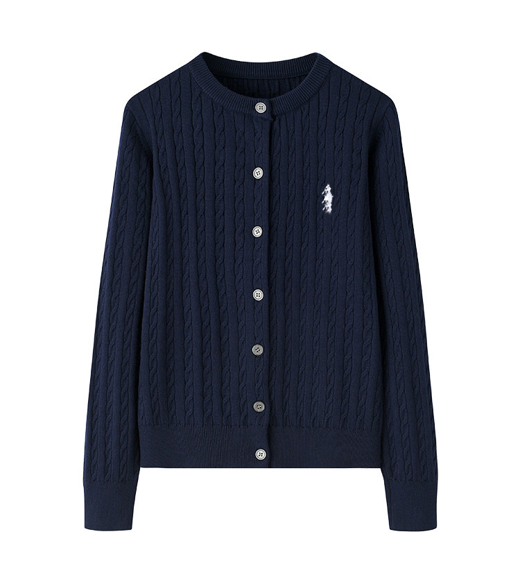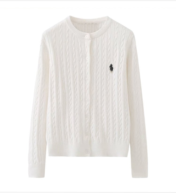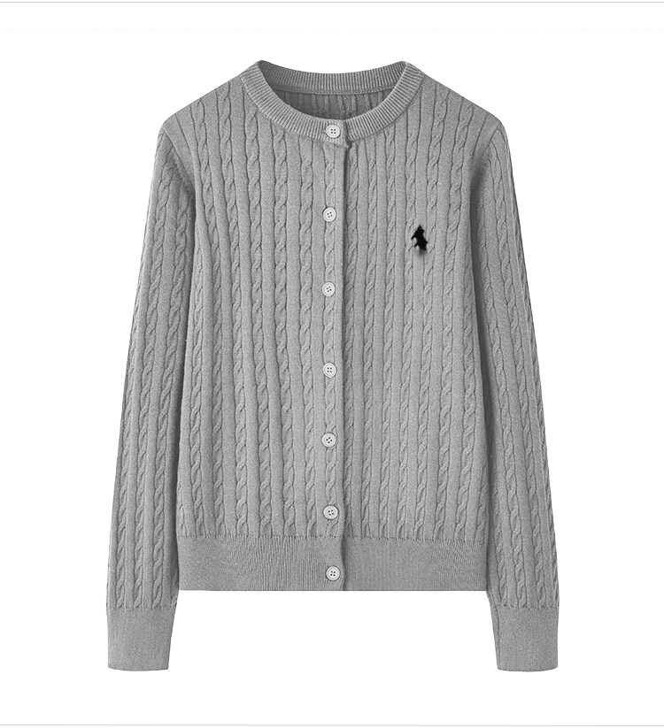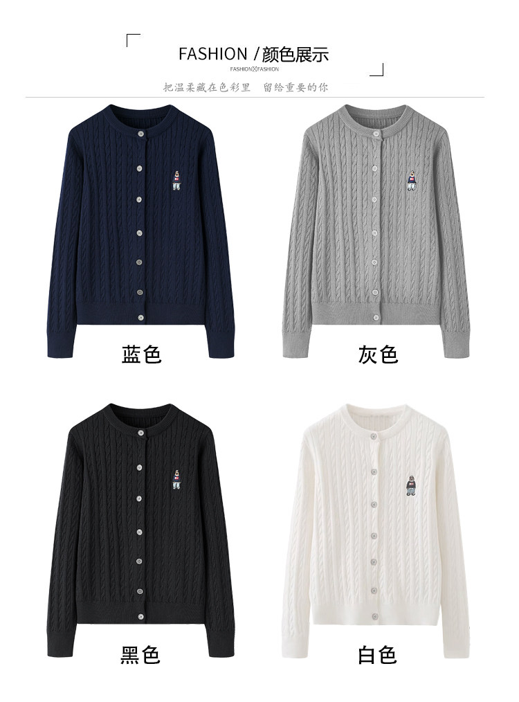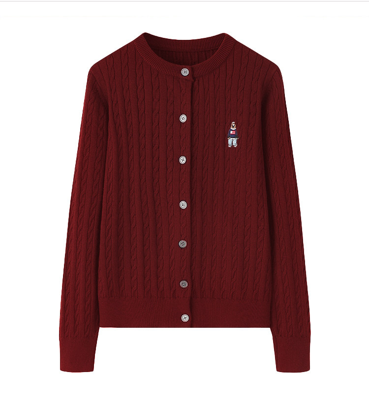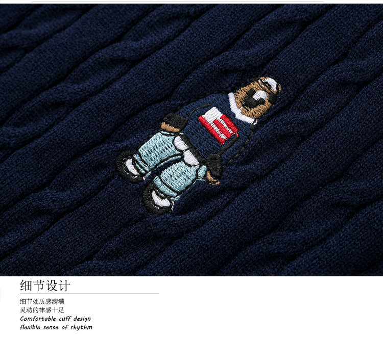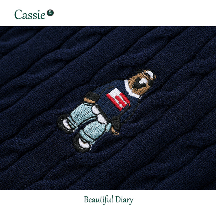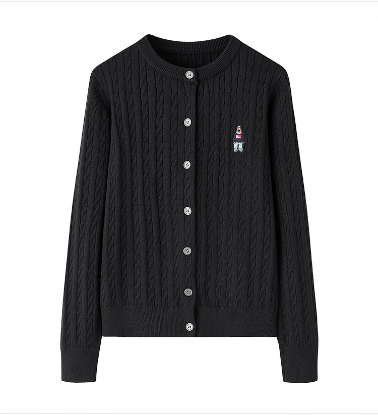 學院風針織外套春秋款小熊刺綉毛衣韓版修身外搭長袖坑條圓領上衣