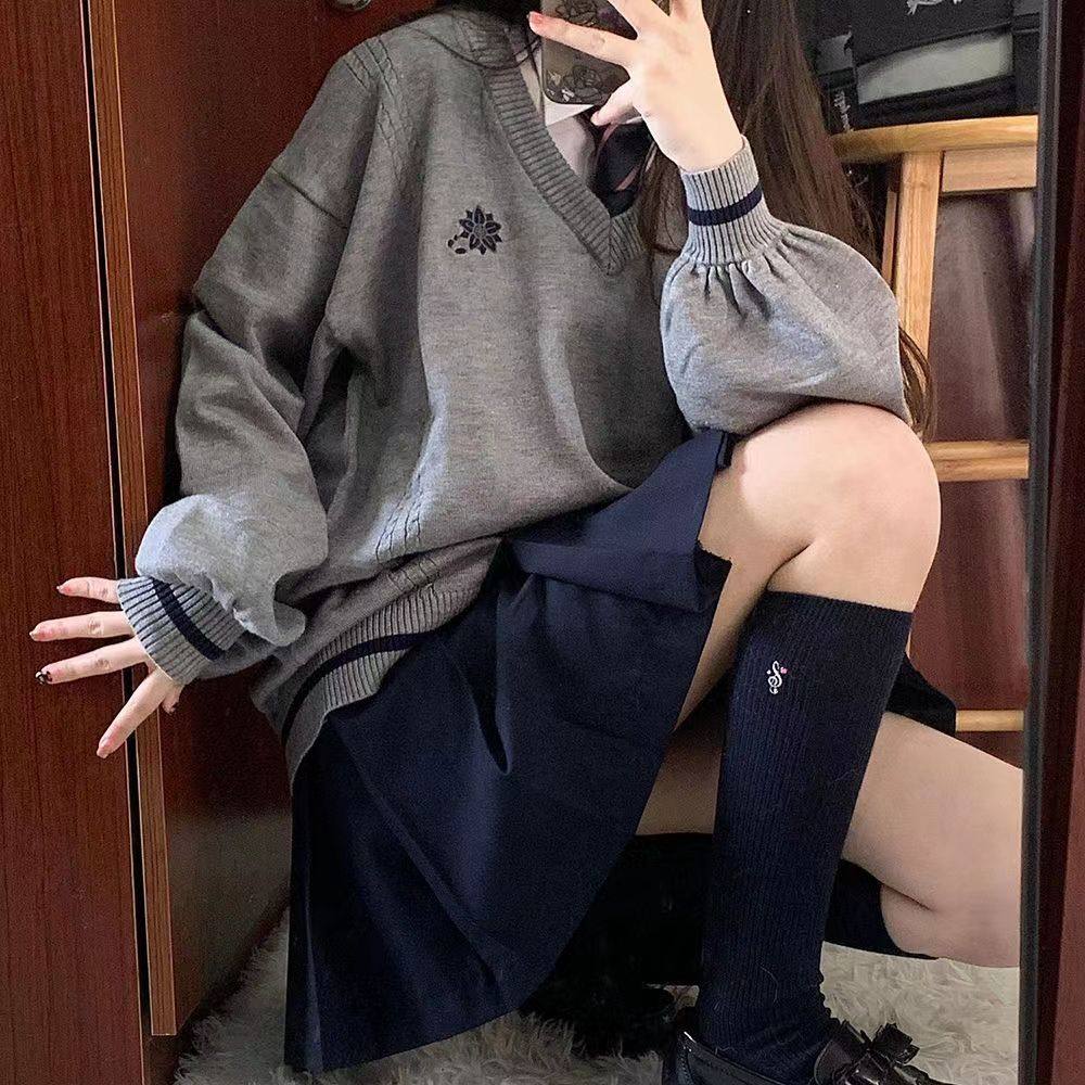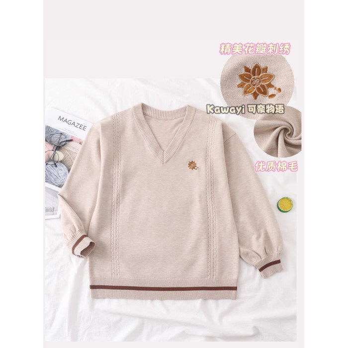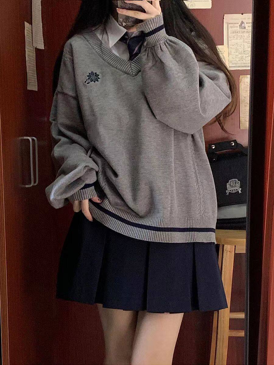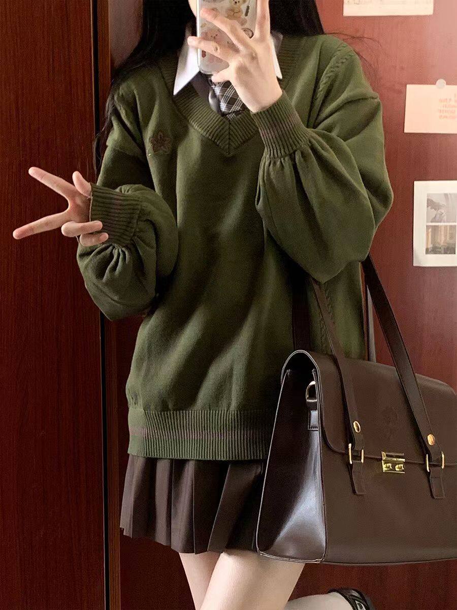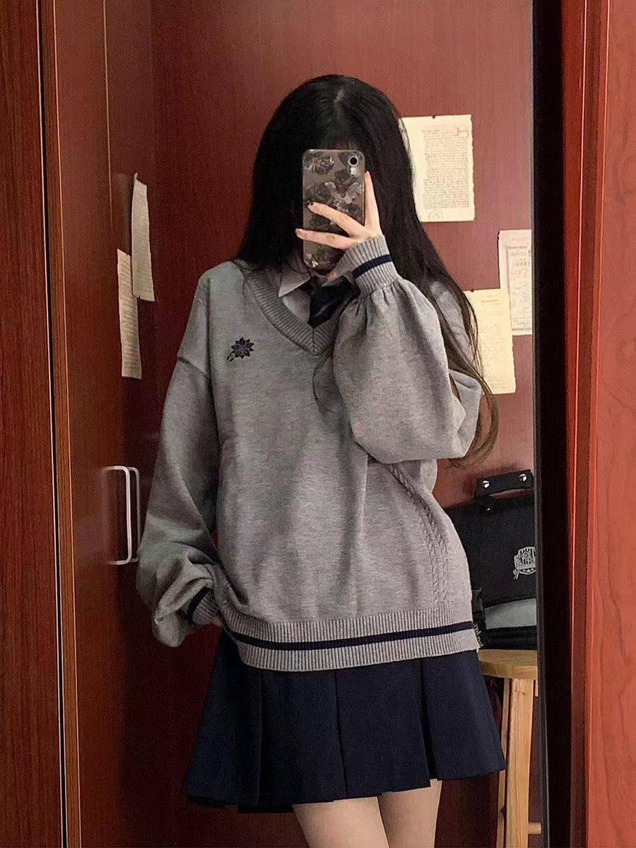 倫敦往事毛衣 軟糯V領刺綉套頭JK製服 校供學院風校供感直筒長袖