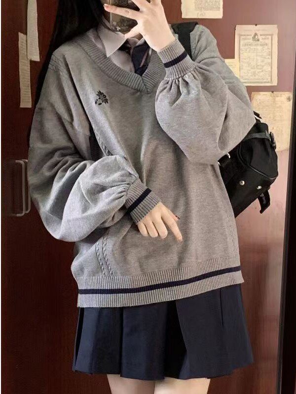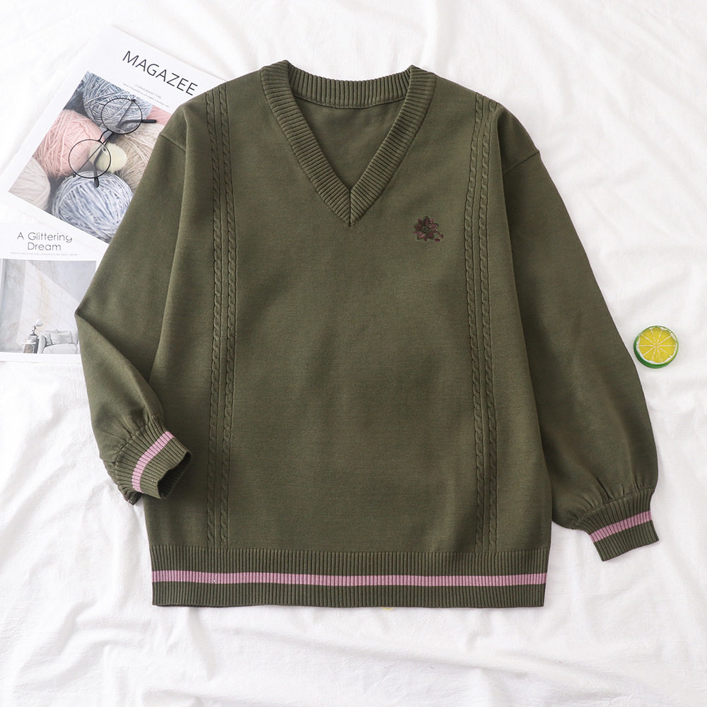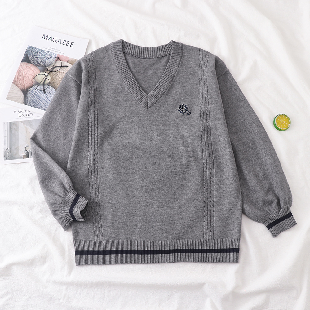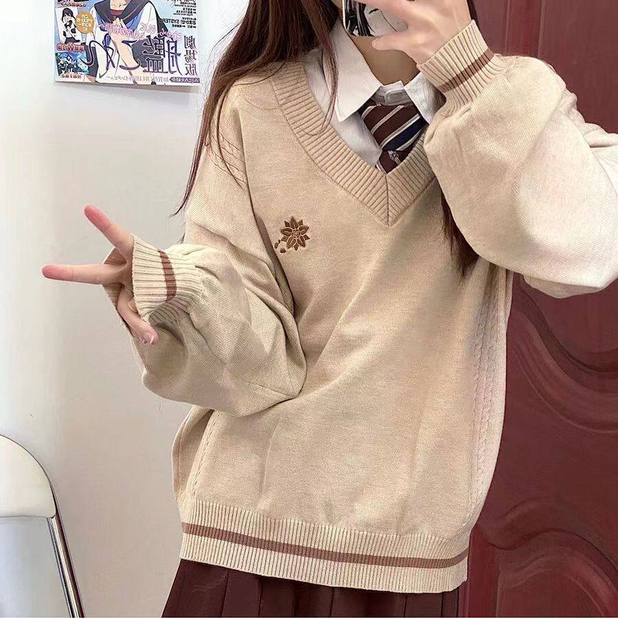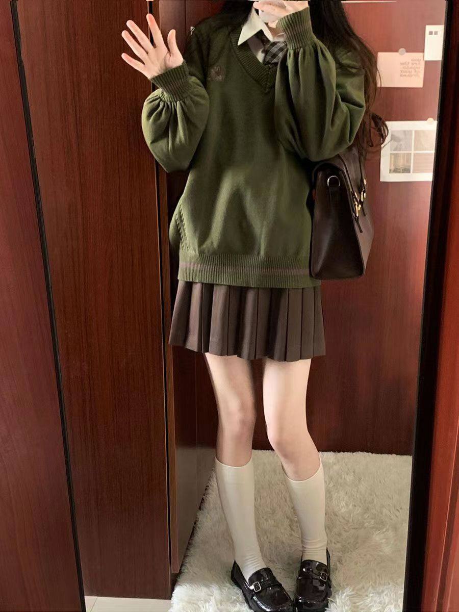 倫敦往事毛衣 軟糯V領刺綉套頭JK製服 校供學院風校供感直筒長袖