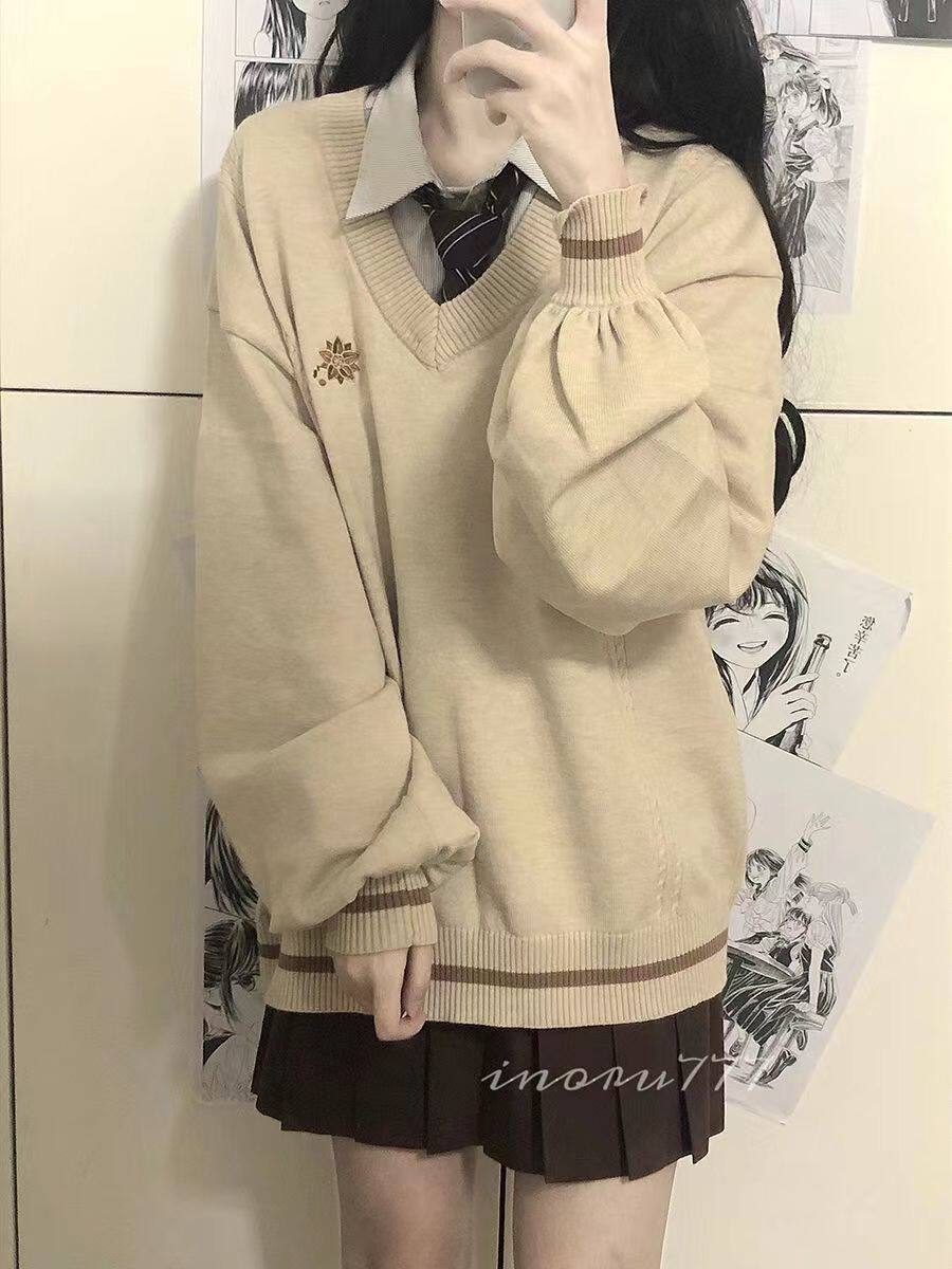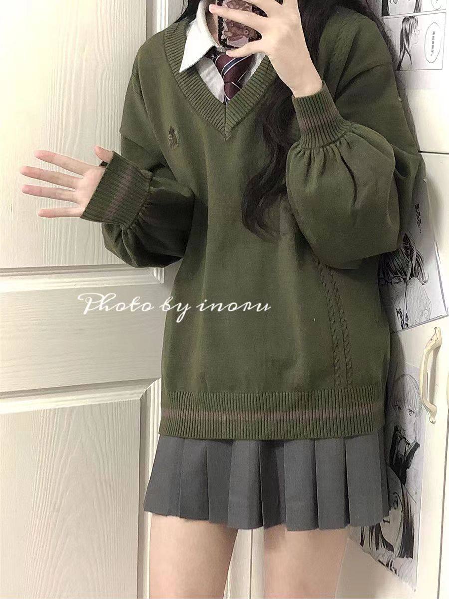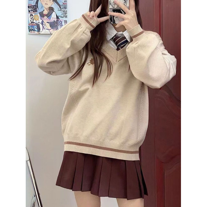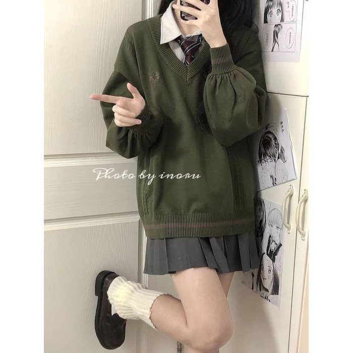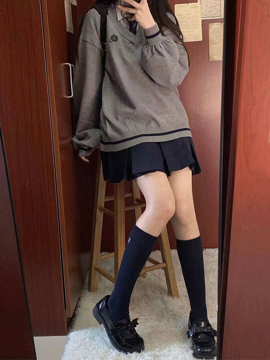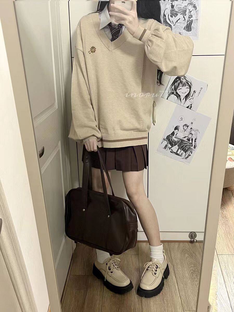 倫敦往事毛衣 軟糯V領刺綉套頭JK製服 校供學院風校供感直筒長袖