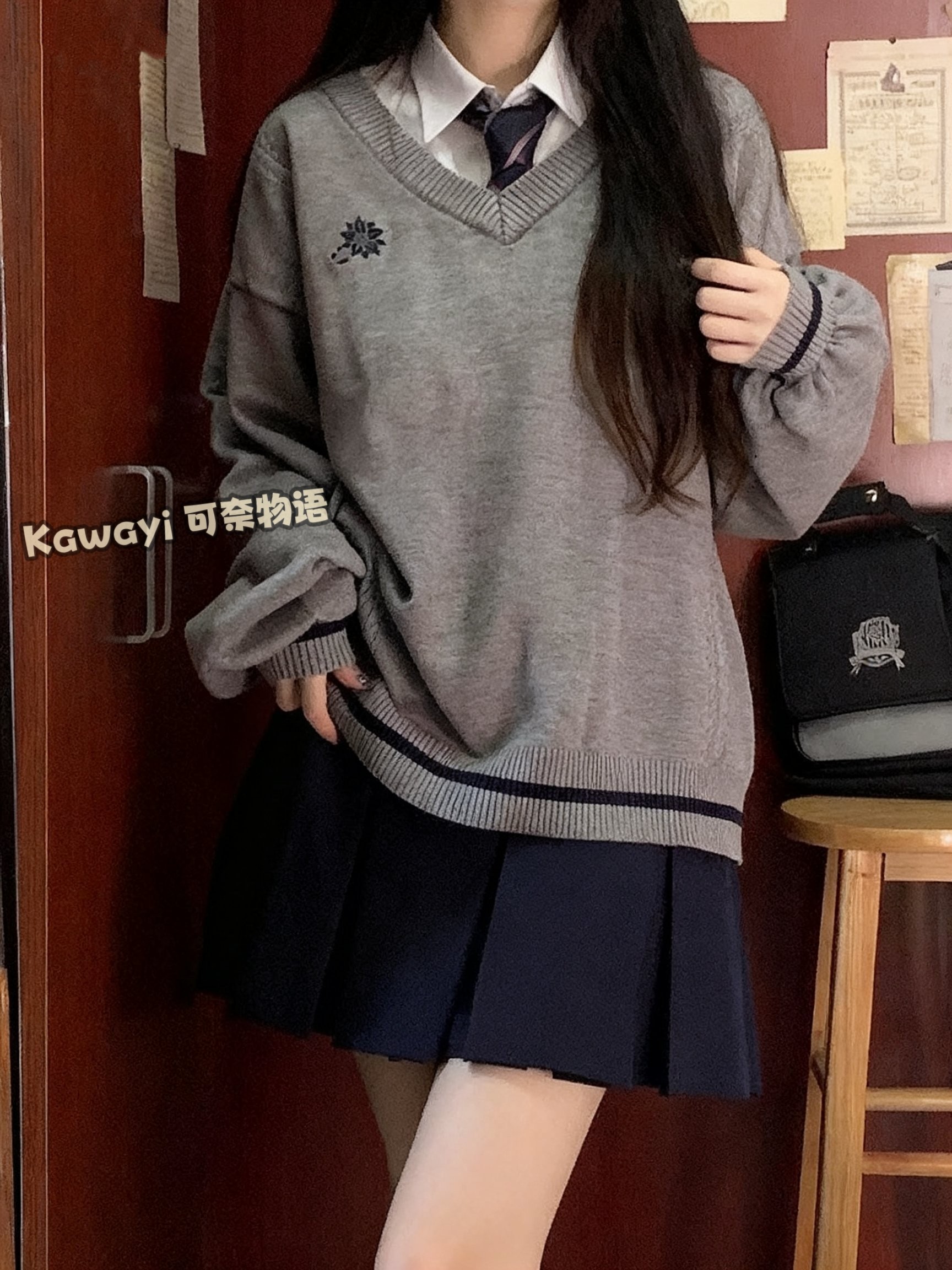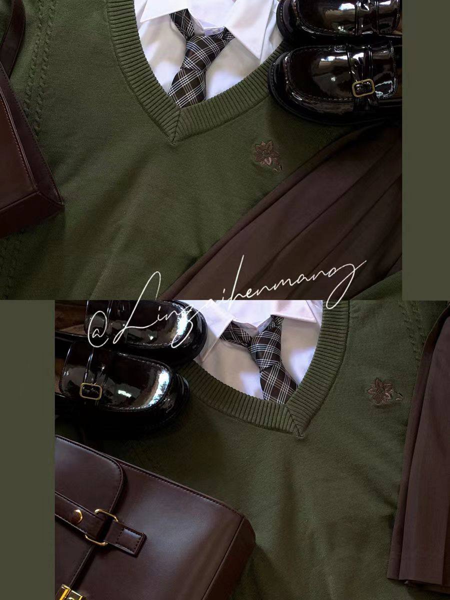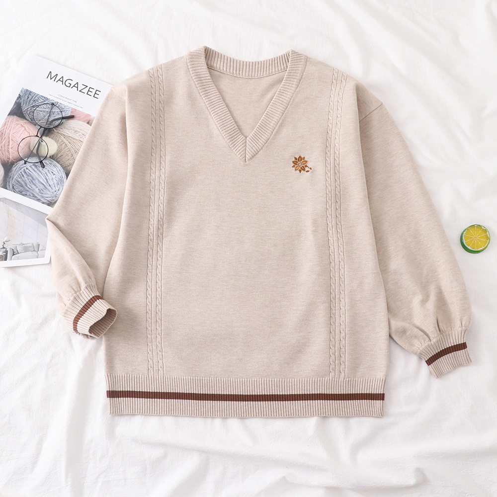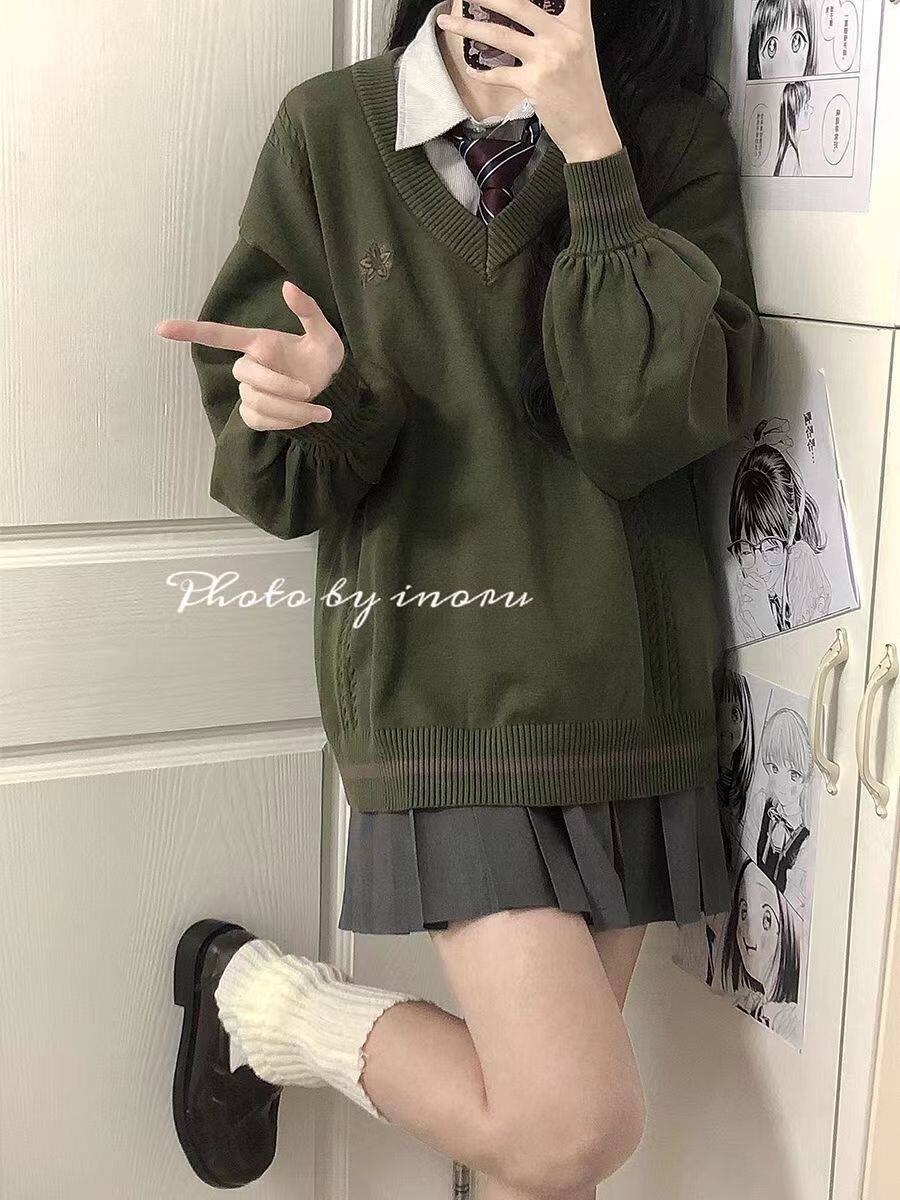 倫敦往事毛衣 軟糯V領刺綉套頭JK製服 校供學院風校供感直筒長袖