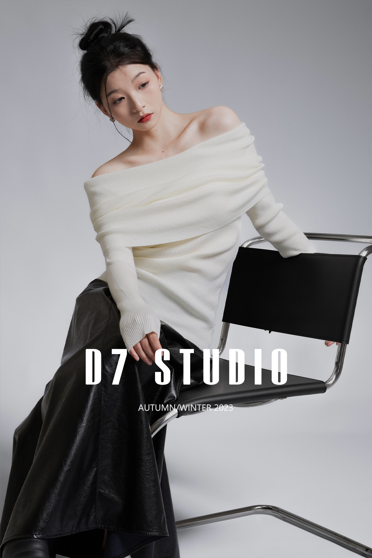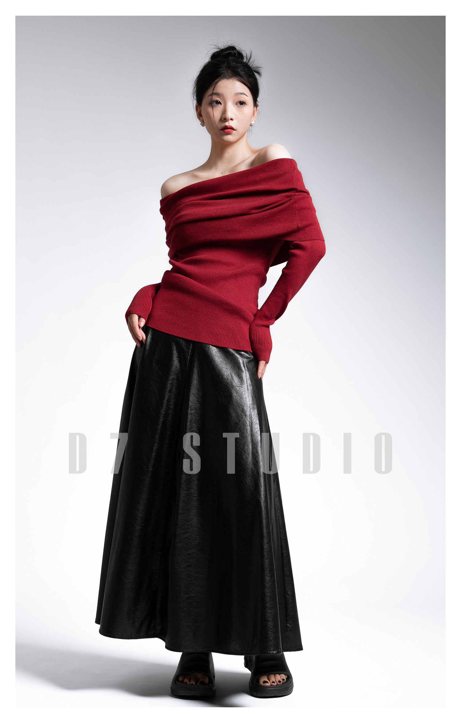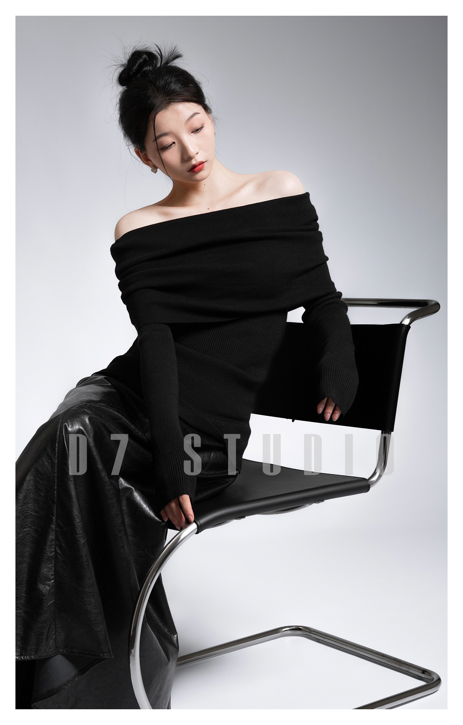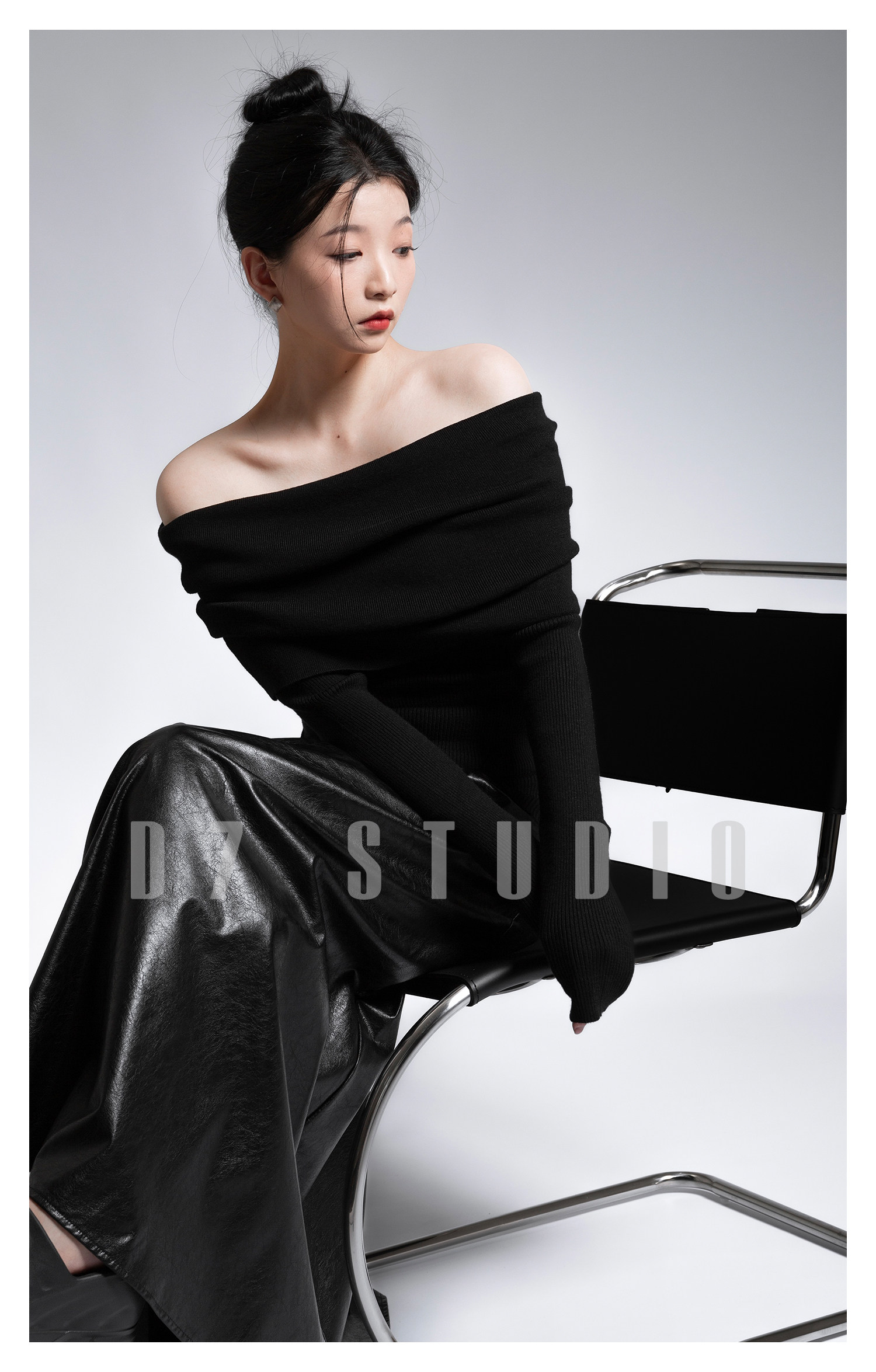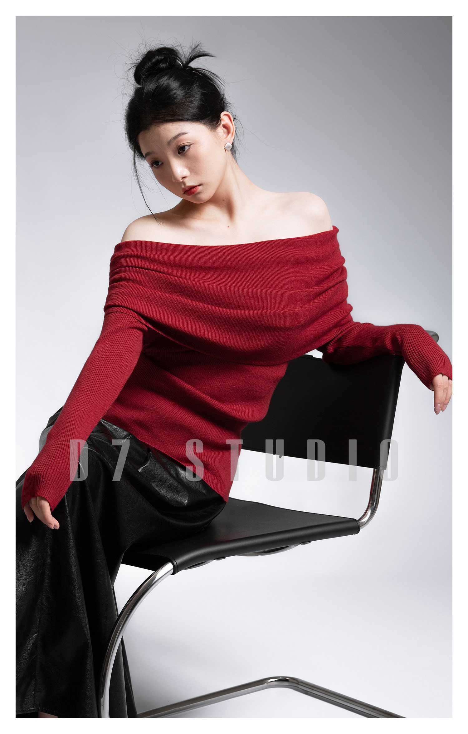 法式一字肩堆堆領針織衫女露肩修身外穿上衣打底衫春秋高級感毛衣