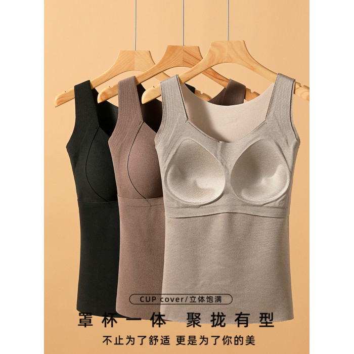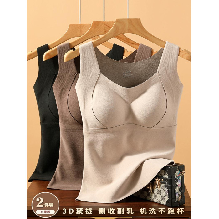 2025冬季保暖背心女內衣帶胸墊加絨加厚石墨烯吊帶內搭打底上衣