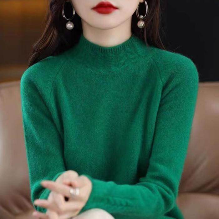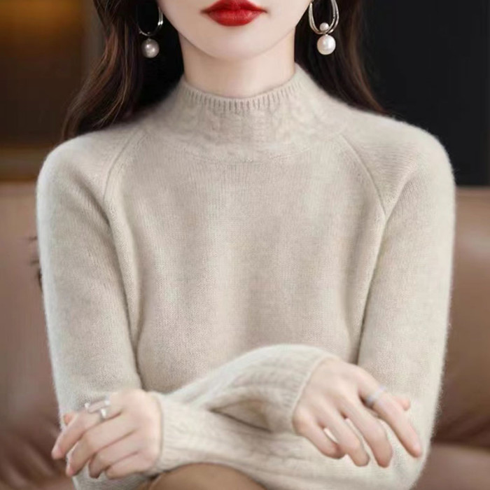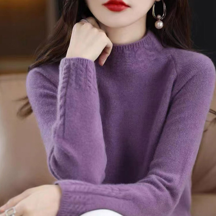 品牌折釦羊毛衫女秋冬新款加厚麻花半高領羊毛針織衫毛衣打底衫女