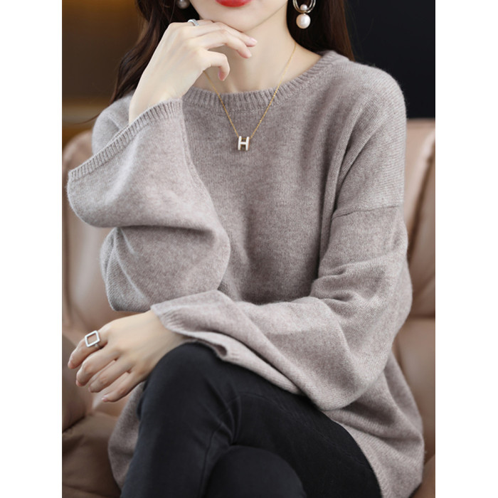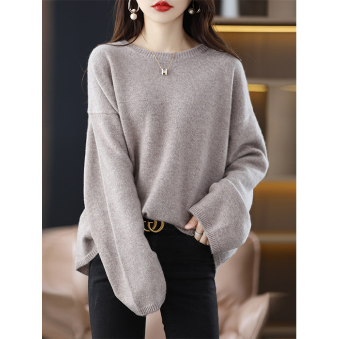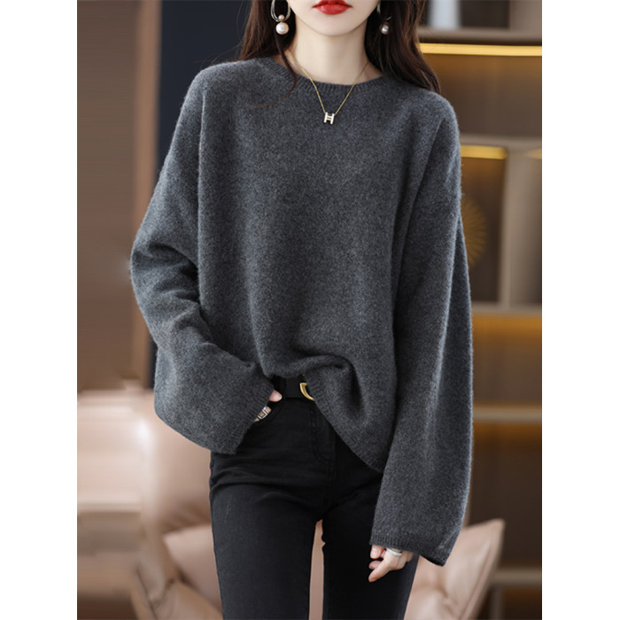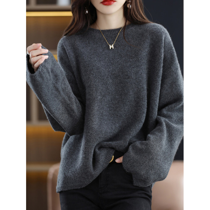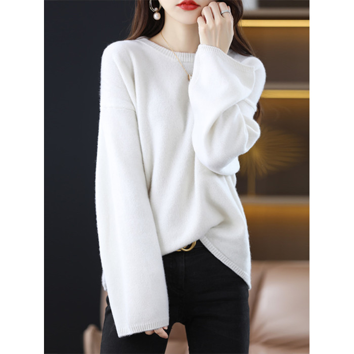 法式高級感落肩圓領毛衣女秋冬內搭仿浣熊絨針織衫打底軟糯上衣厚