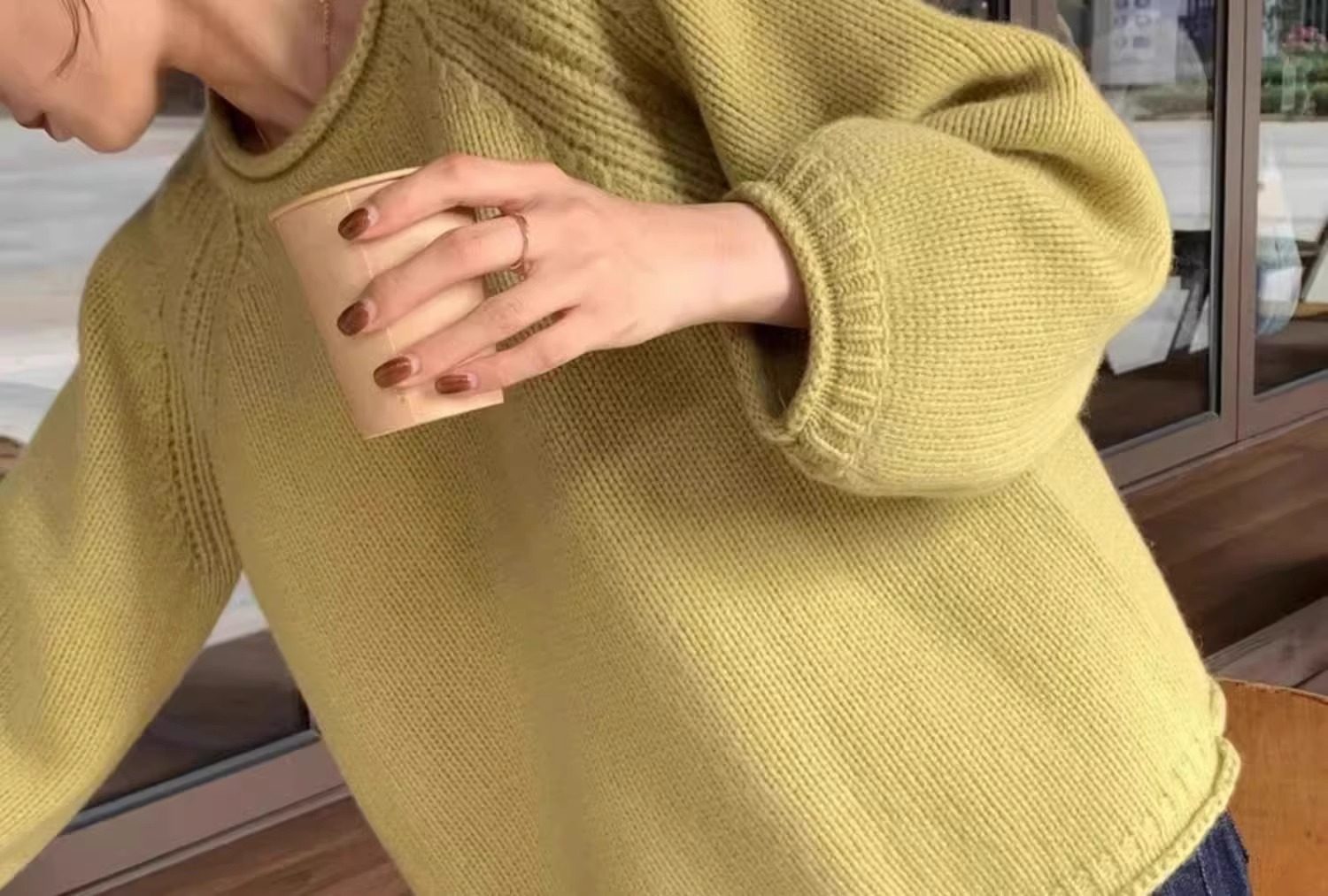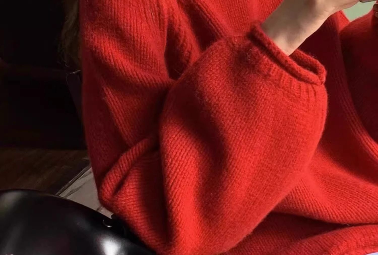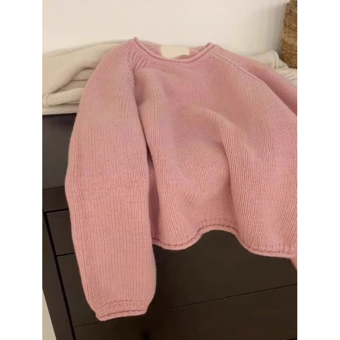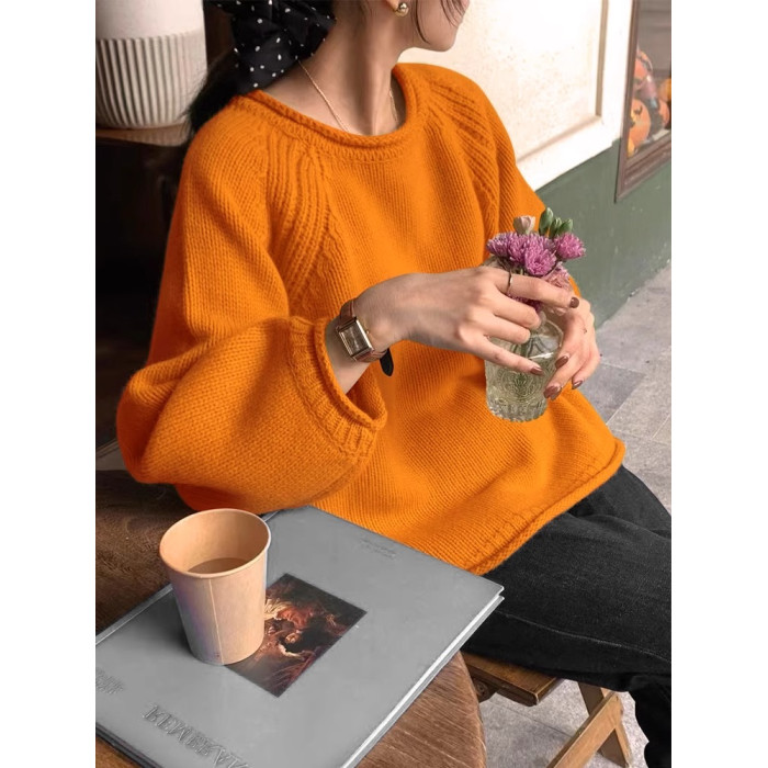 韓系南瓜橘色設計感小衆毛衣女2025秋冬慵懶風松弛感套頭針織上衣