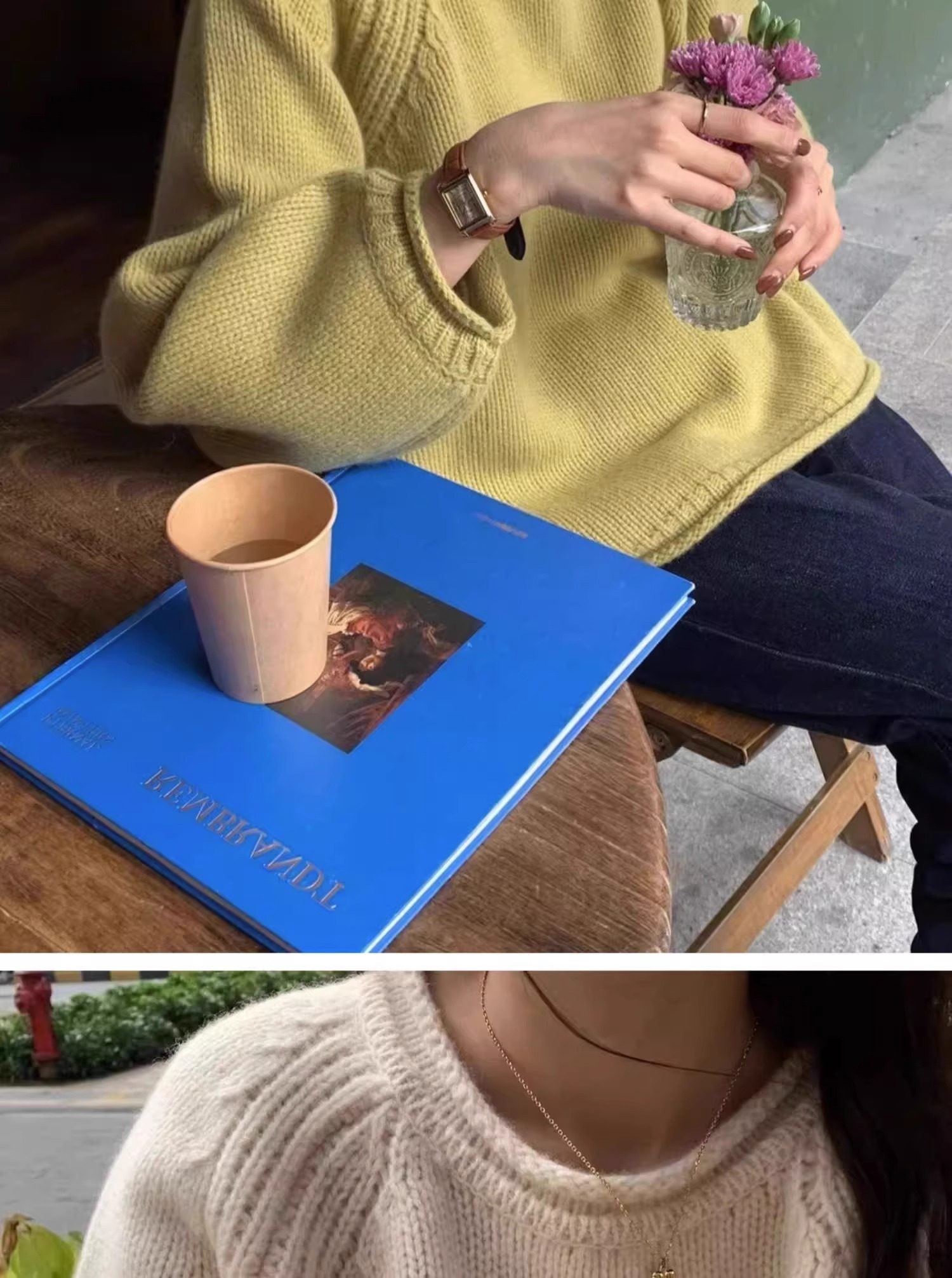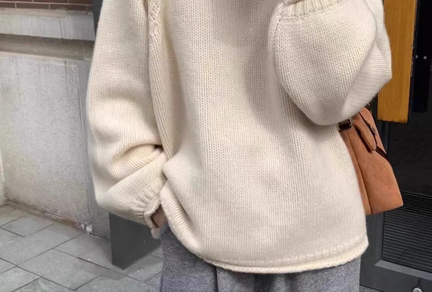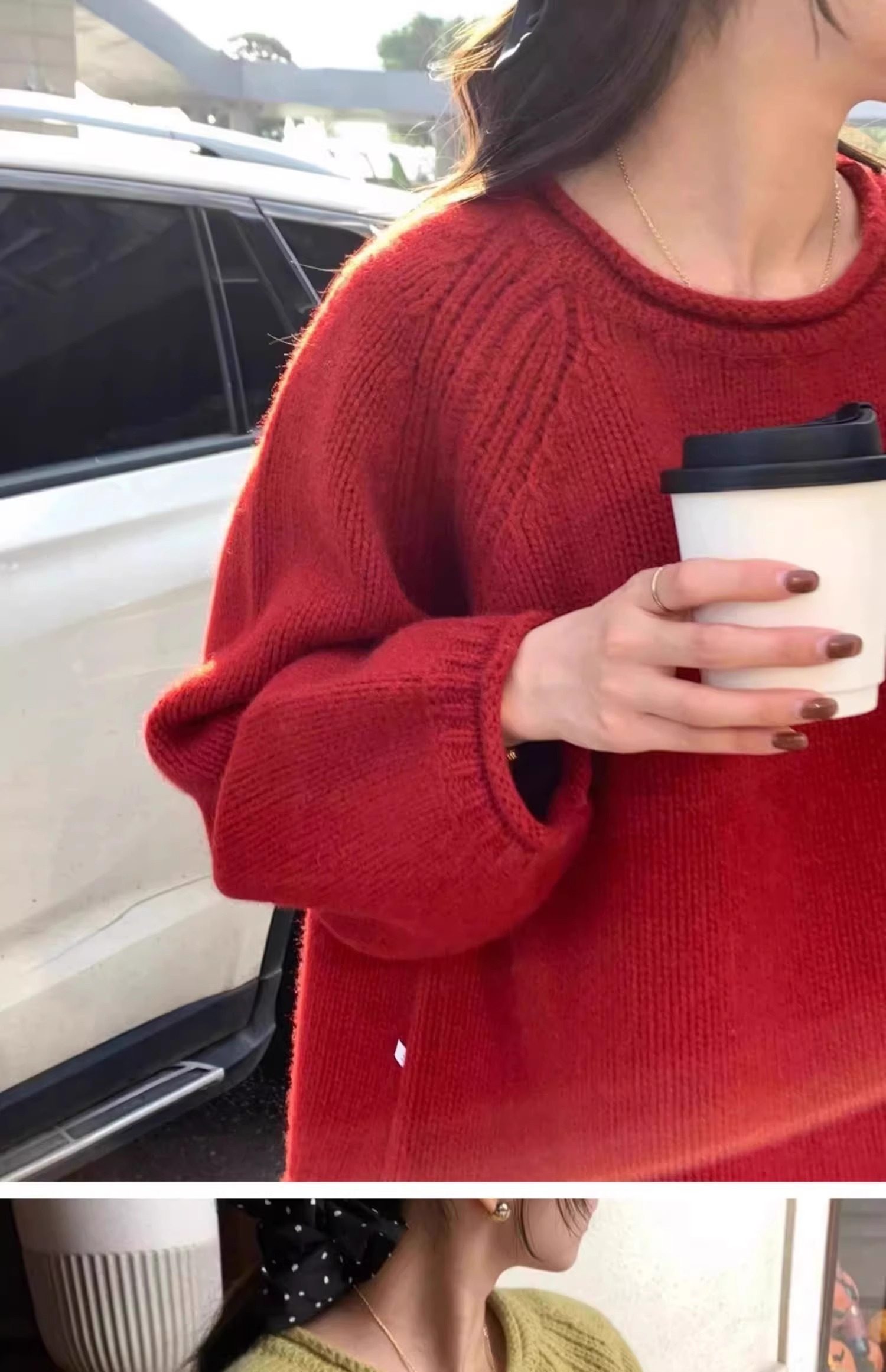 韓系南瓜橘色設計感小衆毛衣女2025秋冬慵懶風松弛感套頭針織上衣