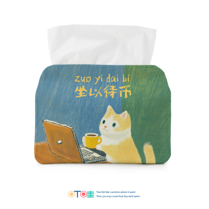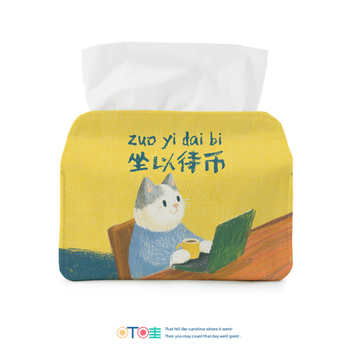 打工貓坐以待幣創意辦公桌面紙巾盒可愛貓咪職場抽紙盒布藝紙巾套