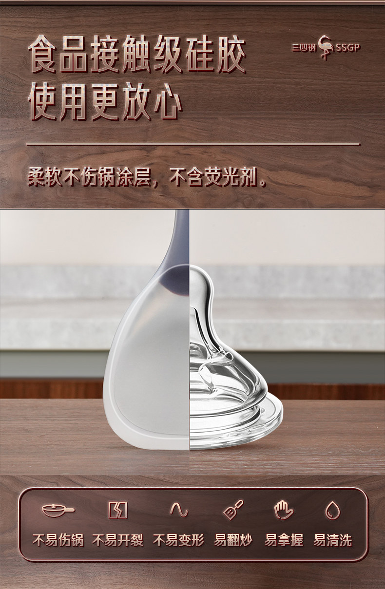 三四鋼®炒勺耐高溫食品級不沾鍋鏟子 炒菜鏟廚房用具透明矽膠鏟