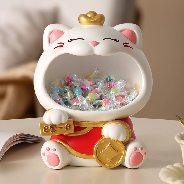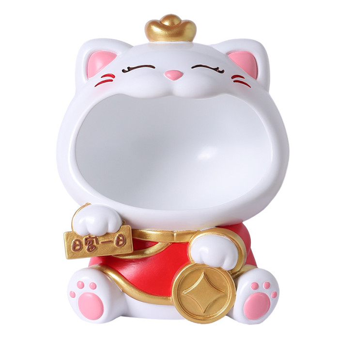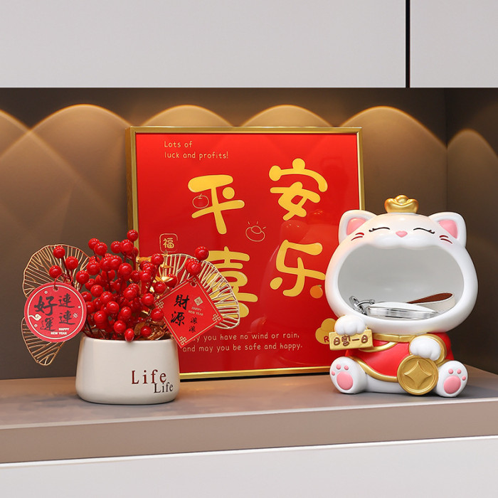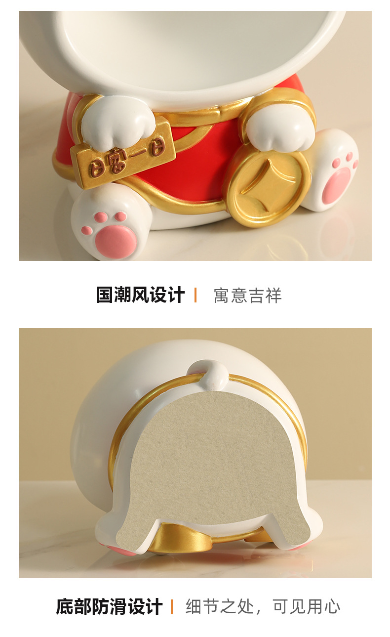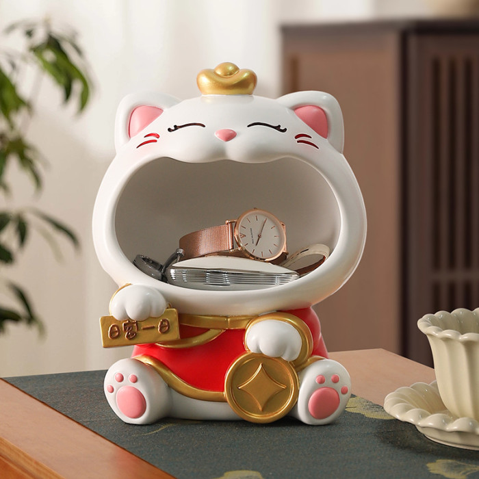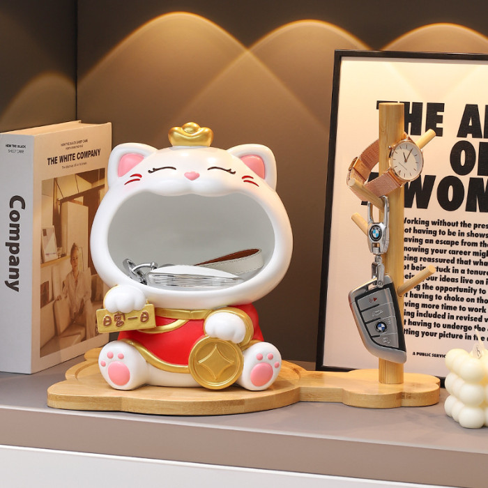 國潮大嘴招財貓玄關鑰匙收納擺件喬遷新居客廳裝飾喜慶花藝禮物