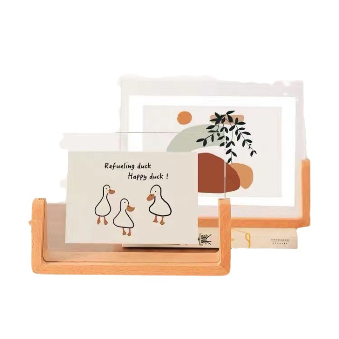 現代胡桃木U型相框辦公室桌面櫸木u型相框擺件居家相片裝飾木相框
