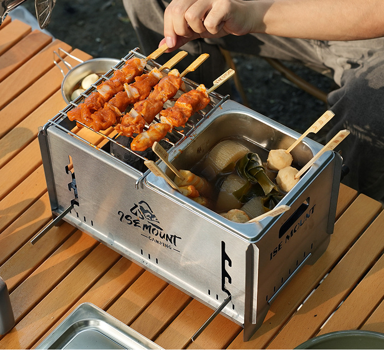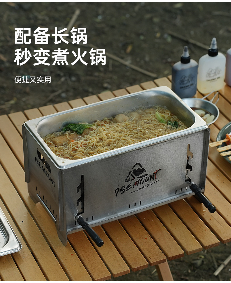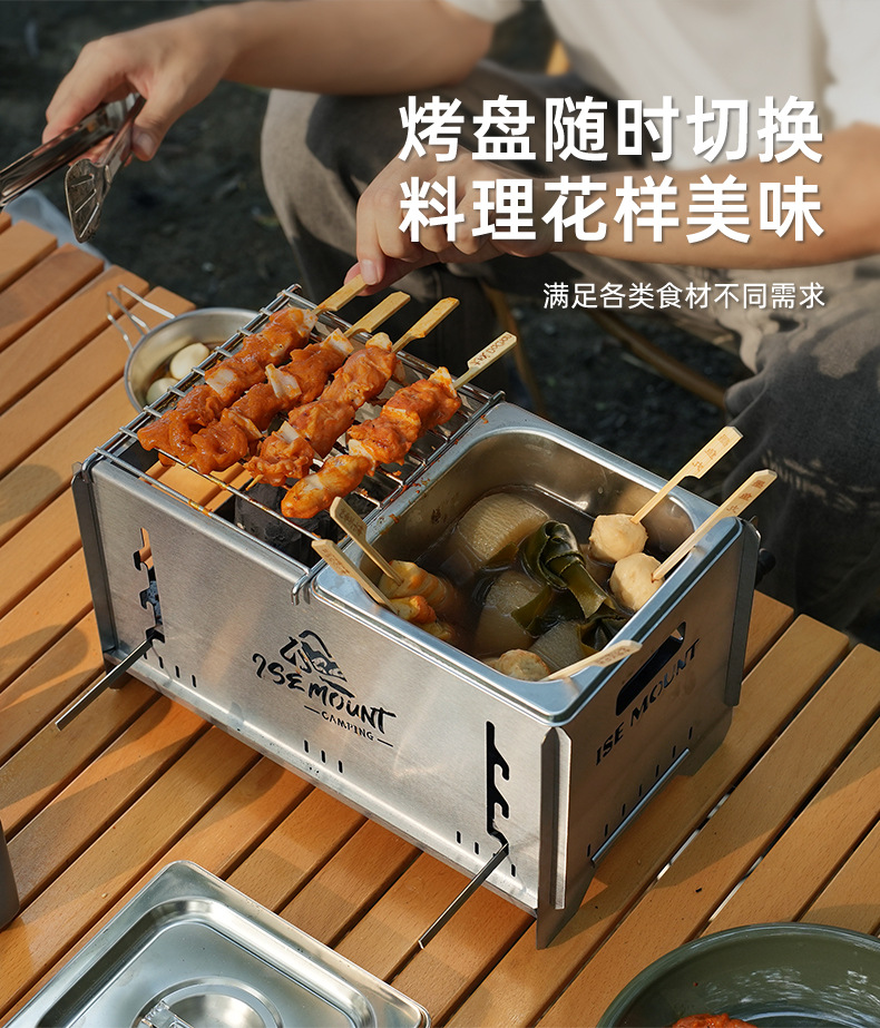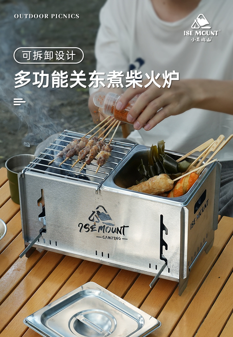 ISE MOUNT戶外關東煮柴火爐露營可攜式多功能不鏽鋼可拆卸燒烤爐
