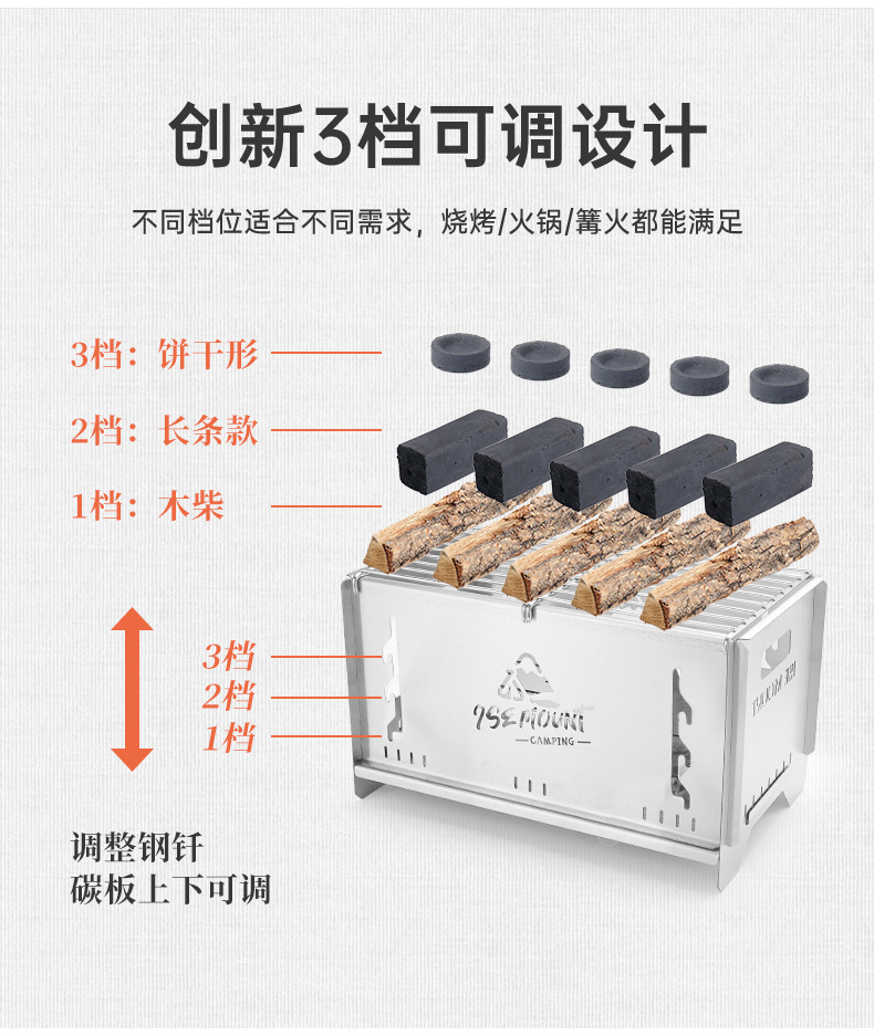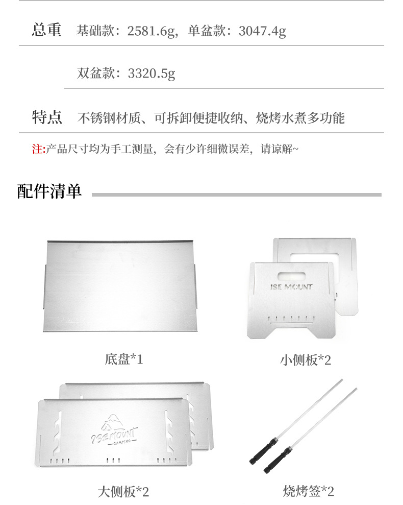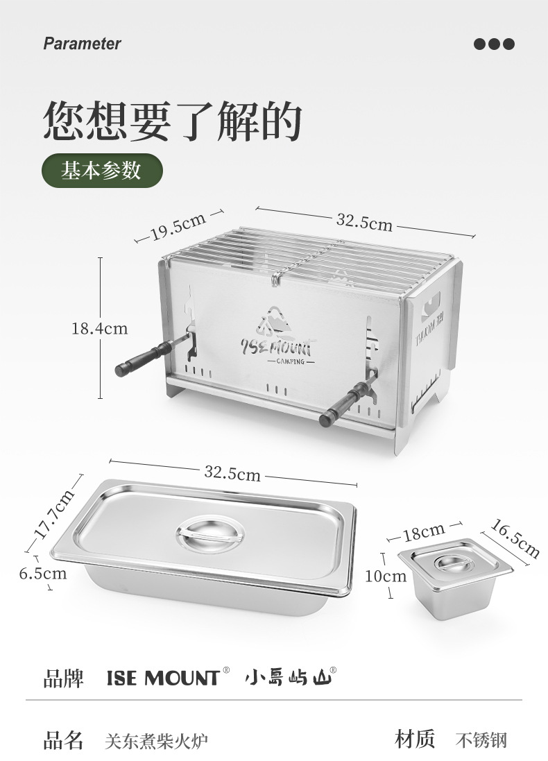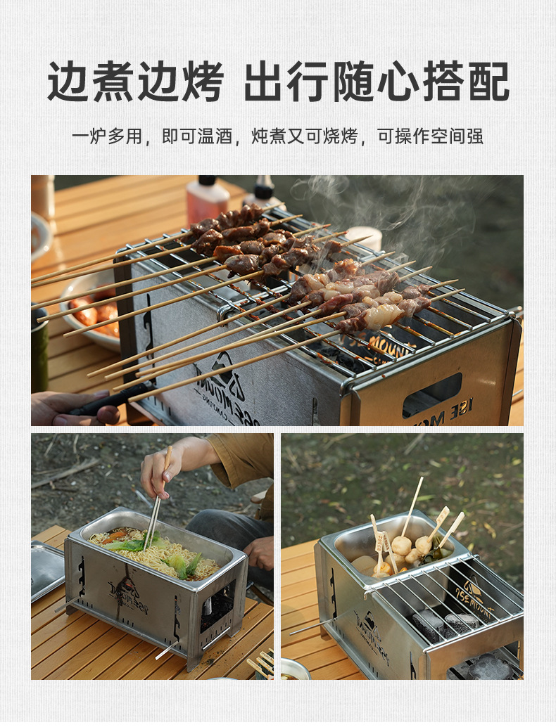 ISE MOUNT戶外關東煮柴火爐露營可攜式多功能不鏽鋼可拆卸燒烤爐