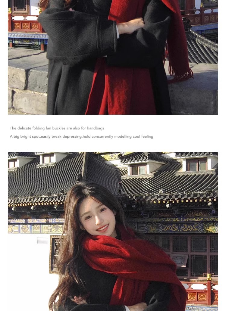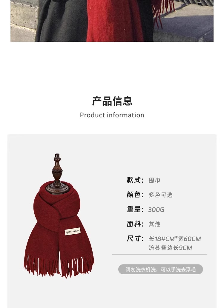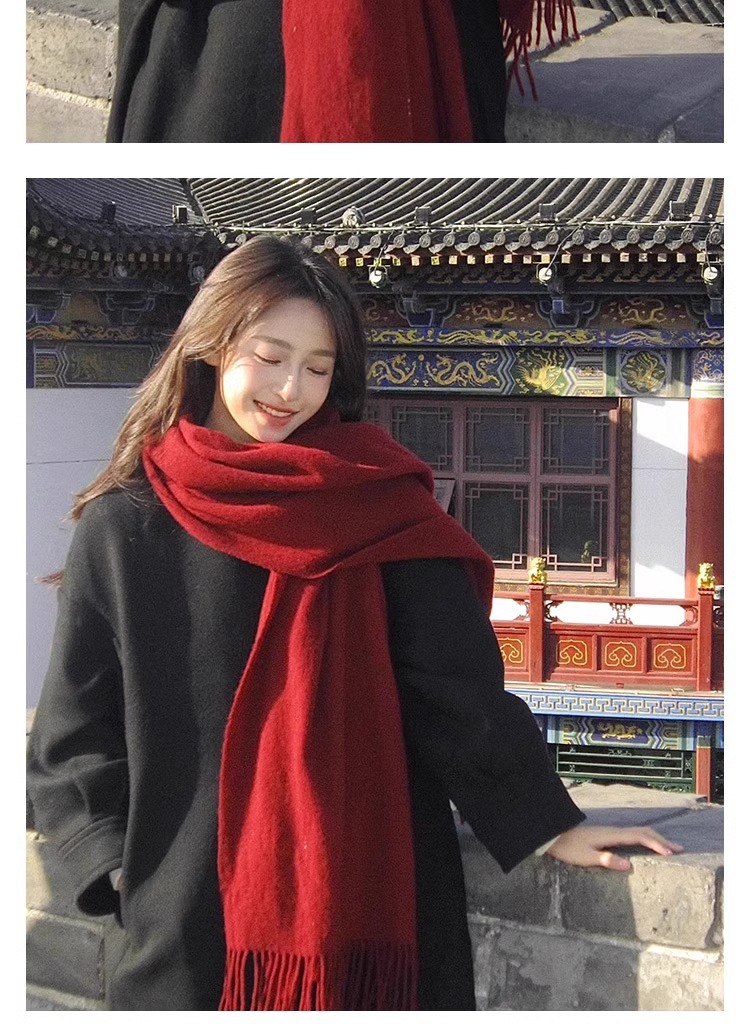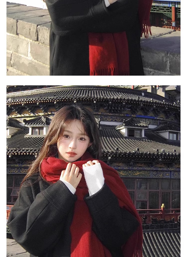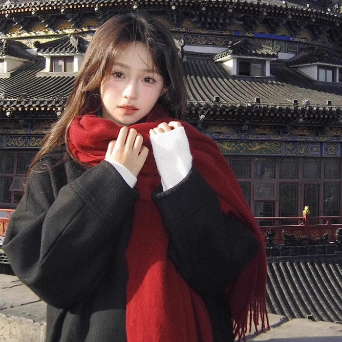 紅色圍巾女秋冬季保暖防風情侶加厚仿羊絨圍脖韓系氛圍感純色披肩